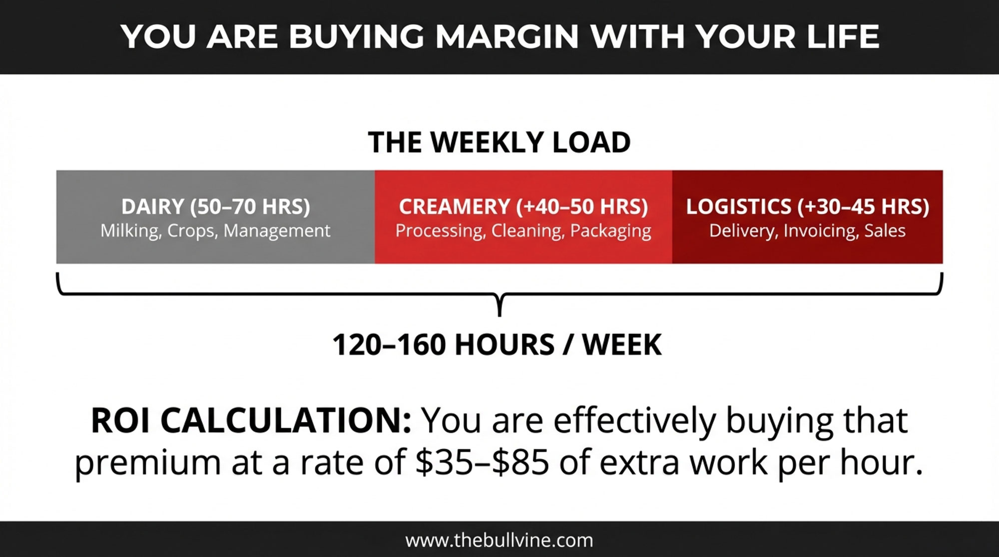 Now take that extra $3,000–$6,000/week and divide it by the 70–90 extra hours wrapped up in processing and delivery. You’re effectively buying that premium at roughly $35–$85 of extra work per hour. On a spreadsheet that can be edited with a pencil. In a family that already feels stretched, it’s a different conversation.