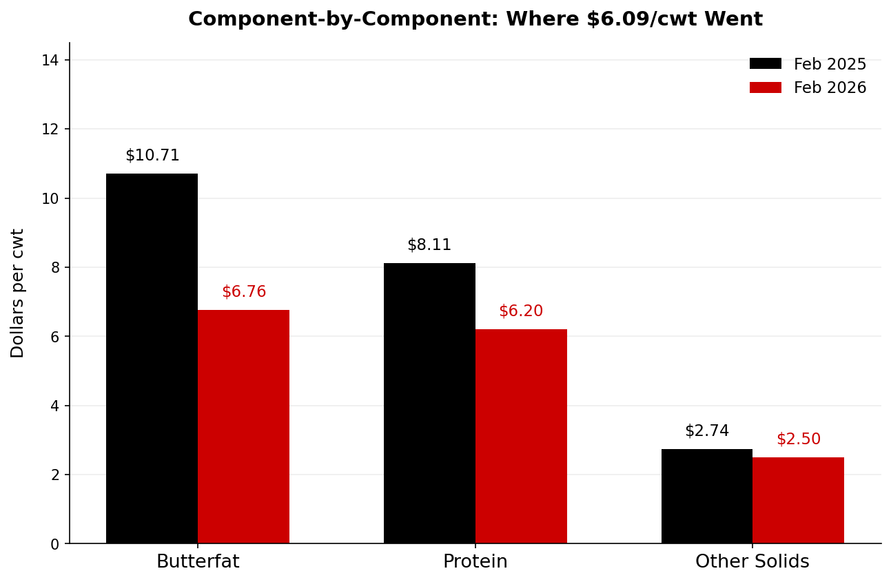| Component | Feb 2025 | Feb 2026 | Change/lb | Per‑cwt impact |