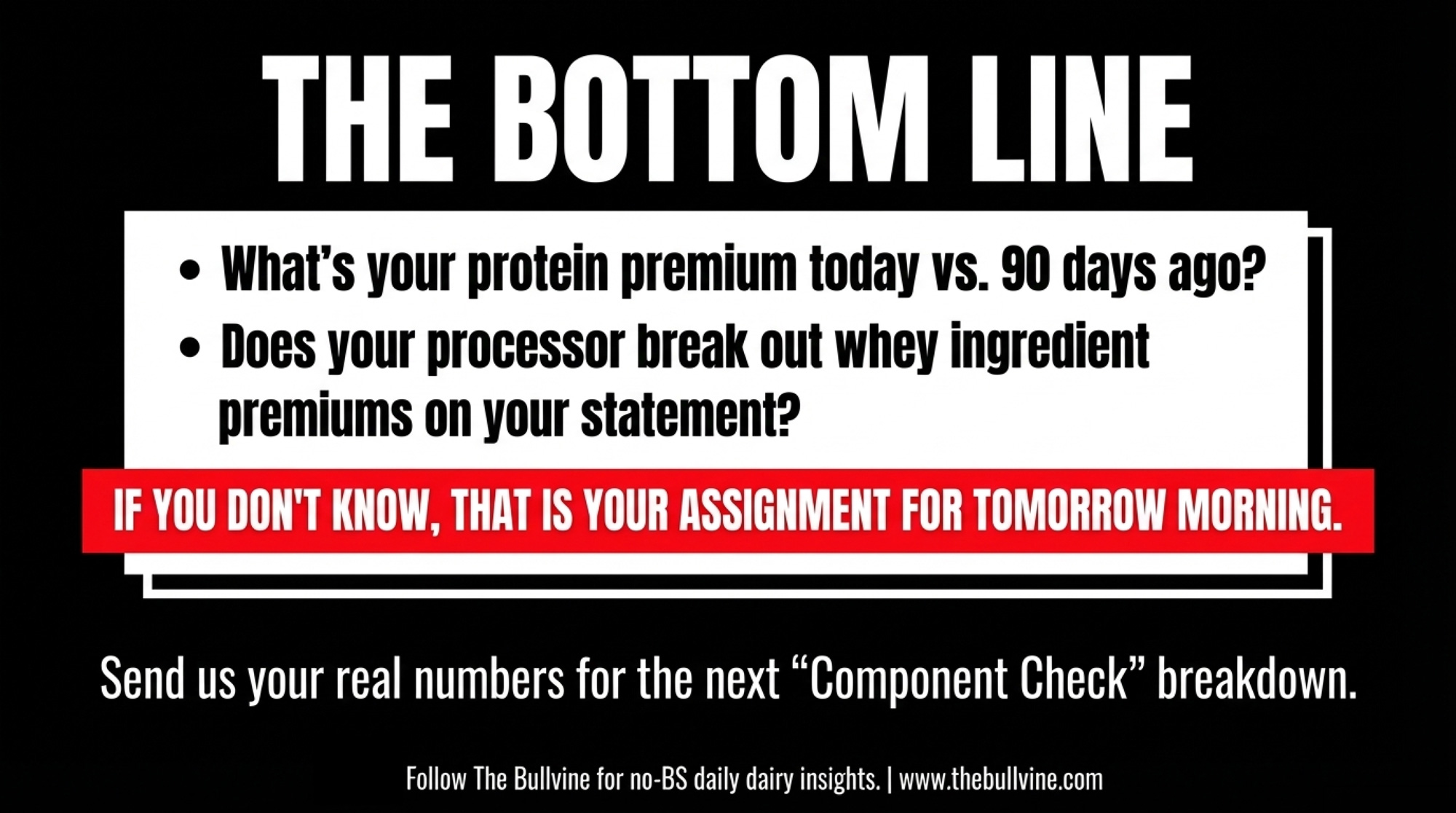 What’s your protein premium per cwt this month versus 90 days ago? Does your processor break out whey solids or ingredient premiums anywhere on your statement? And if you’re in a co‑op, how did last year’s patronage per cwt move compared to the co‑op’s reported whey ingredient revenue?