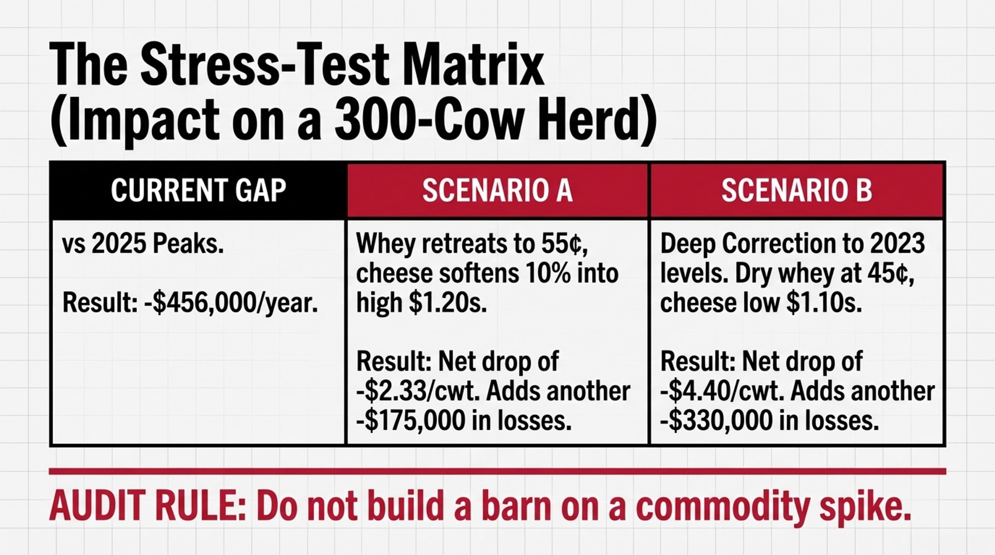 - Don’t build a barn on a commodity spike. Stress‑test every expansion pro forma at about $15.50/cwt component value, not $21. If it doesn’t cash‑flow there, you’re not investing — you’re betting.