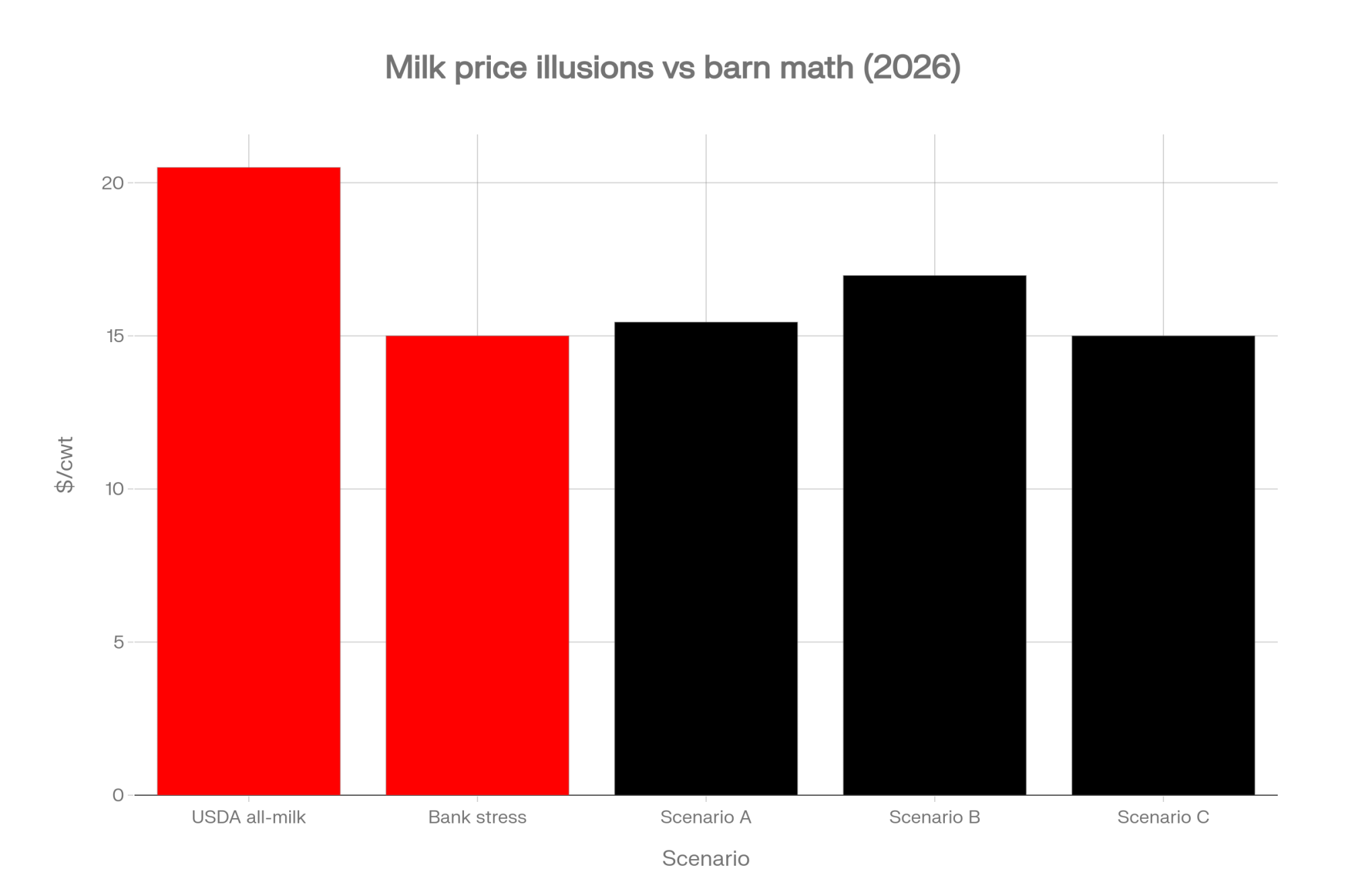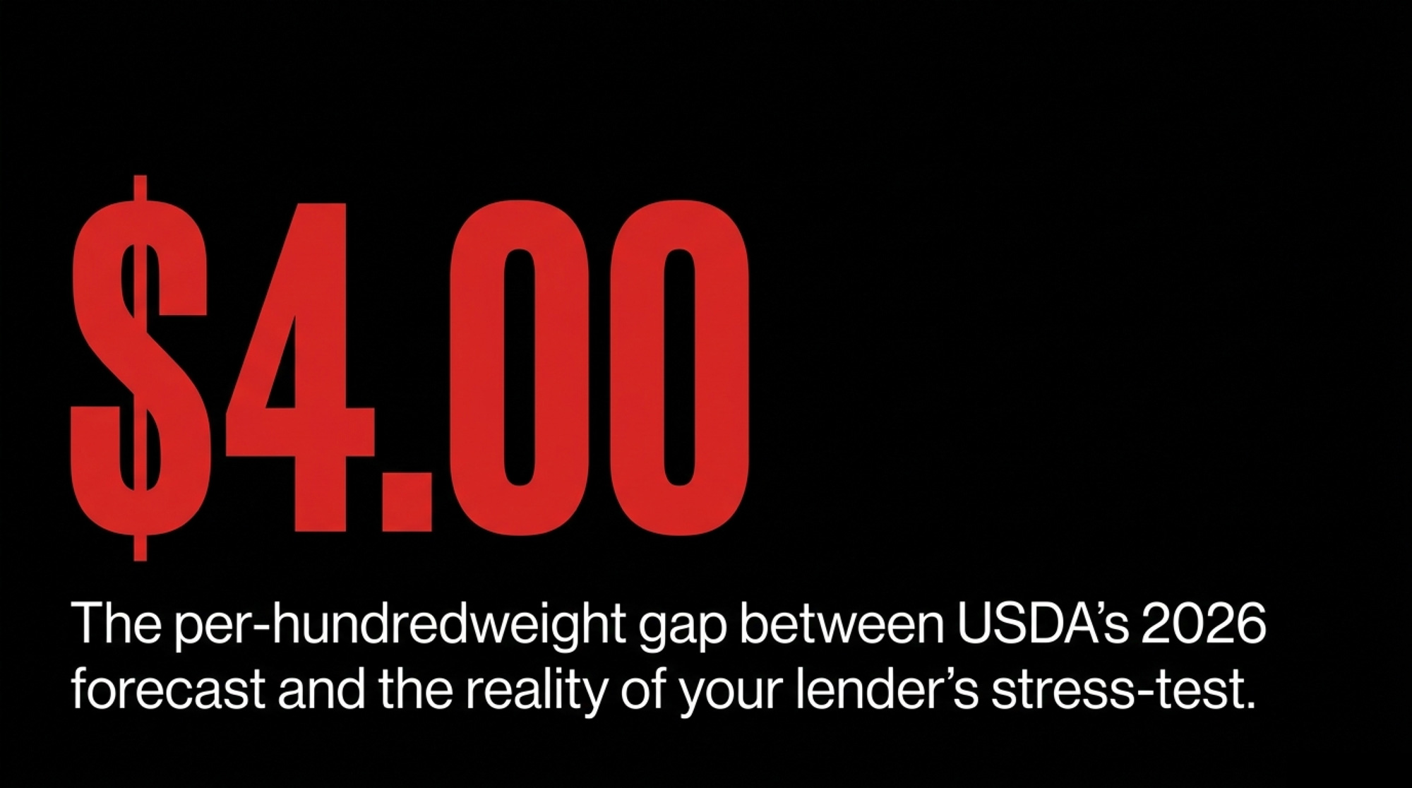- A $20.50 USDA headline and a $15 lender stress case don’t reconcile. If your expansion pro forma lives in the middle, the $4/cwt gap lands entirely in your equity, not the bank’s.