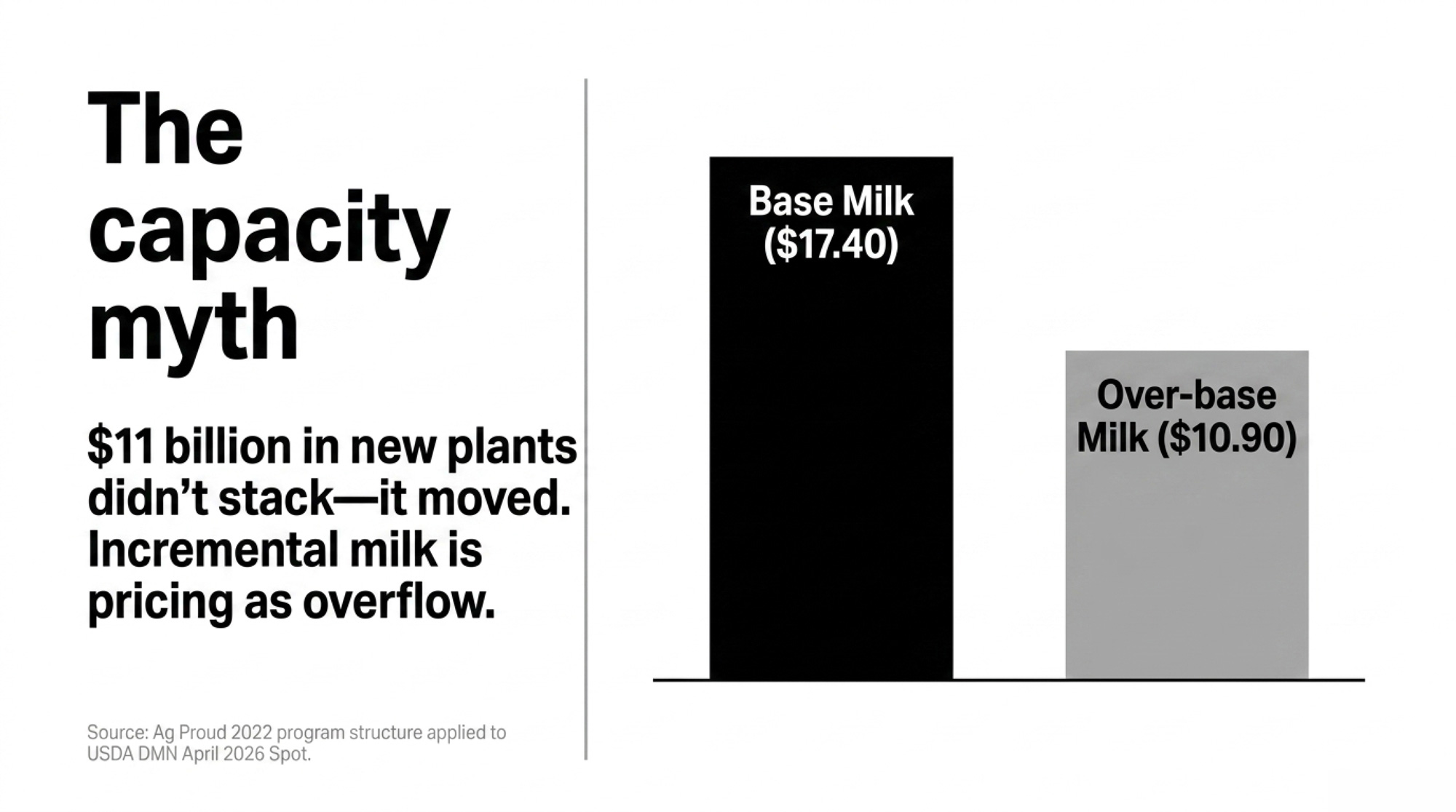 Everyone in the capacity conversation assumed a $20‑handle all‑milk forecast plus $11 billion in new plants equaled bargaining power for a growing Midwest herd. April 2026 contract mechanics tell a different story.