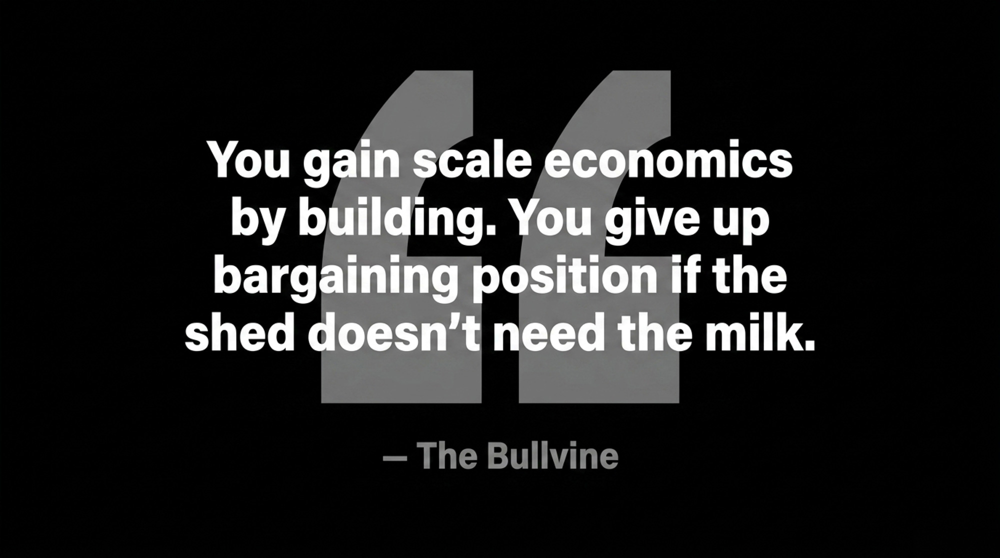 Fail any one of those three tests and your expansion math isn’t wrong because of your operation. It’s wrong because you’re borrowing leverage from a shed that hasn’t given it to you yet. You gain scale economics by building. You give up the bargaining position you currently hold if the shed doesn’t need the milk.