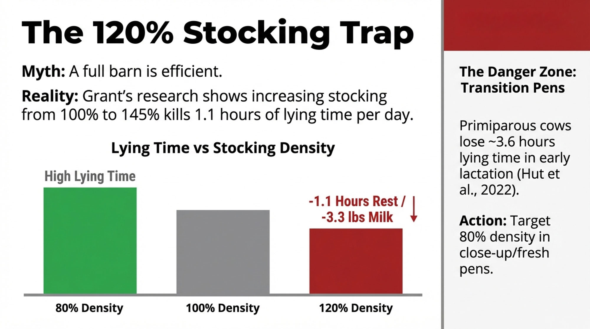- Recognize that consistently running those pens in the 100–120%+ range increases competition, cuts lying time, and raises transition‑disease and lameness risk