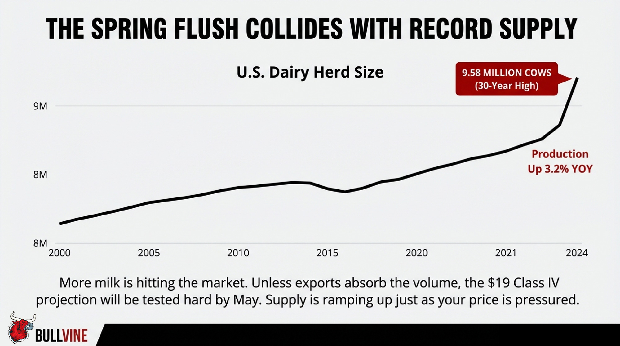 That same 500-cow herd’s spring production ramp is about to collide with the largest national herd in over 30 years.