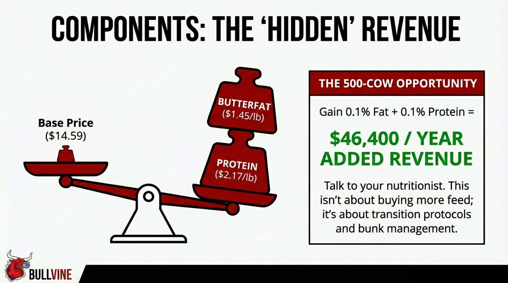 If you’re below 4.0% fat and 3.1% protein, talk to your nutritionist this week. The herds making component gains aren’t spending more per cow — they’re tightening transition protocols, adjusting TMR formulations, and managing bunk time. Those are $46,000 improvements at the cost of management attention, not capital.