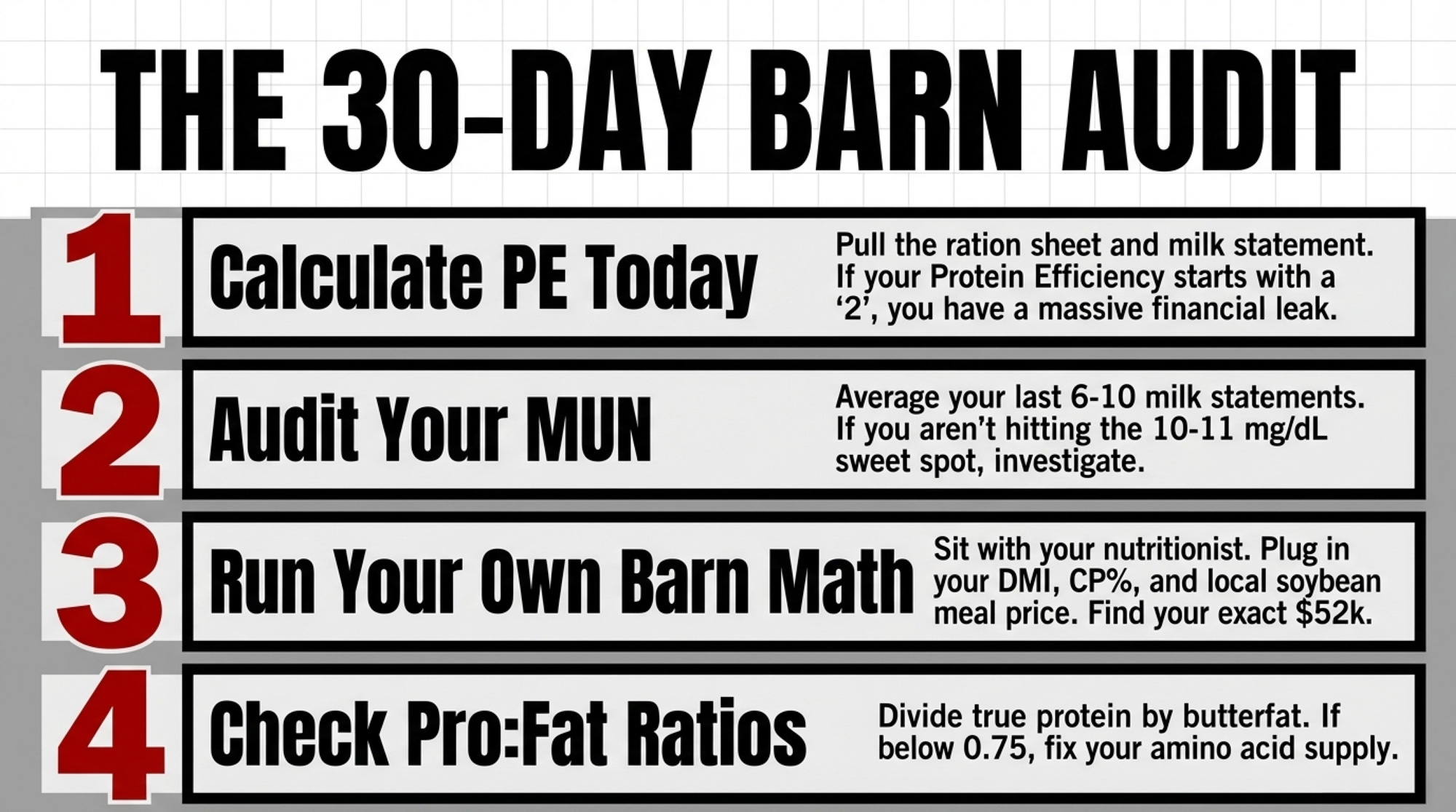 Silence. Lots of numbers on the board. None answering that one. So they grabbed a calculator, pulled the ration sheet and the last milk statement, and did the math. The number that came back was 27.3% protein efficiency — almost exactly where extension work says many U.S. Holstein herds sit today.