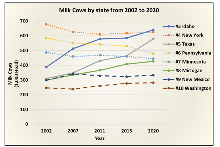 U.S. Department of Agriculture, National Agricultural Statistics Service. 2002, 2007, 2011, 2015 and 2020. Milk Production.