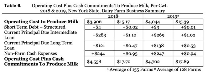 Table 6 highlights these changes and calculates the Operating Cost Plus Cash Commitments to Produce Milk.