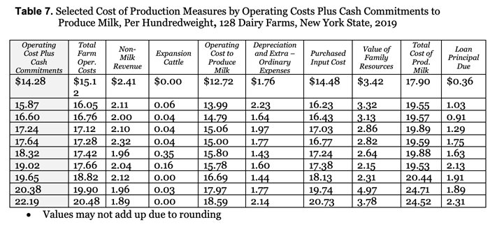 As with Total Cost of Producing Milk, there is a large range in the Operating Cost Plus Cash Commitments to Produce Milk, as shown in Table 7.