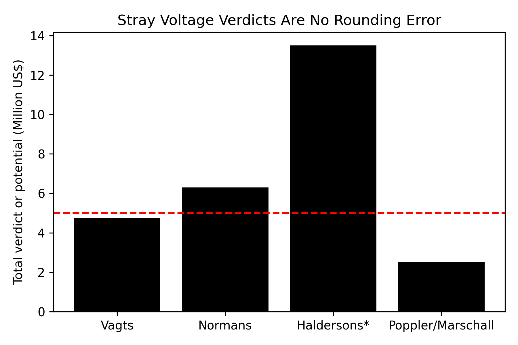 A Cass County jury trial in October 2014 produced the largest stray‑voltage jury award in Minnesota history: $4,861,478 in economic loss and $1.5 million in nuisance damages. With interest and fees, the total climbed to roughly $6.3 million. The Minnesota Court of Appeals affirmed it, and trial‑law publications later highlighted the case as a landmark.
