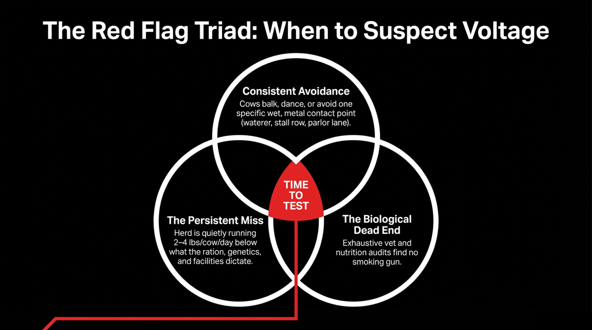 - If your herd is consistently 2–4 lb/cow/day below where your ration, genetics, and facilities say it should be — and your vet and nutritionist can’t find a clear biological cause — you should treat a low‑thousands‑of‑dollars electrical test as a reasonable next step, not a last resort.