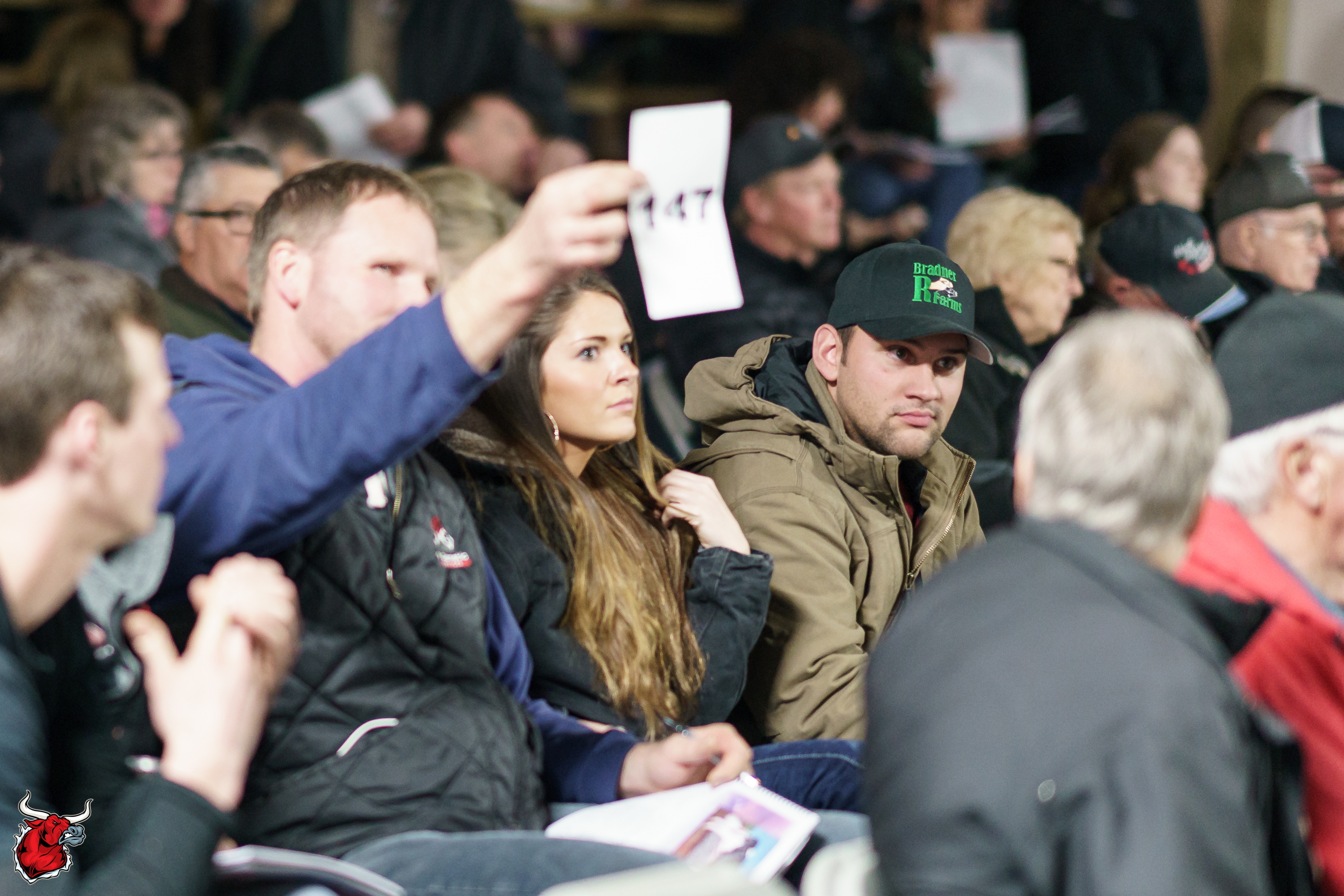 The 2nd highest seller of the day was 1st choice by mutually agreeable sire from the 2016 Royal Winter Fair Grand Champion, Jacobs Gold Liann. As announcer Norm Nabholz mentioned to auctioneer John Copithorn during the sale Liann is one of the greatest young cows in the world today, and everyone should be getting in on this great opportunity. In the end, it was Tim Abbot of Vermont who made the final bid of $36,000.