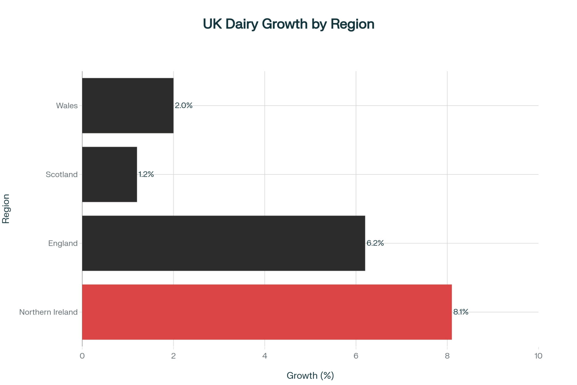 Northern Ireland? Totally different story. They’re expanding by 8.1%, but here’s the context: Dale Farm invested £70 million in its Dunmanbridge facility last June. They’ve secured an £8 billion deal to supply Lidl stores across 22 countries. When your processor’s investing that kind of money and has those contracts locked in, expansion makes more sense.