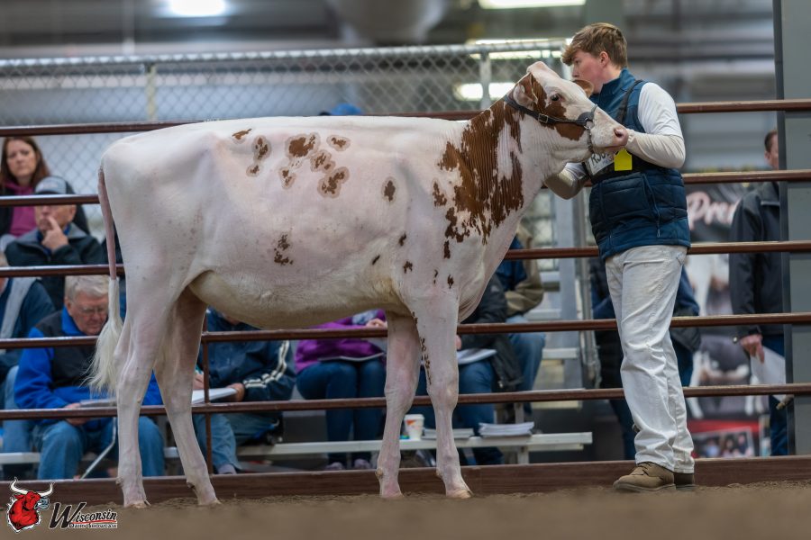 HM SENIOR CHAMPION: MILKSOURCE BO ALLURA-RED-ET (BORIS), 1ST PRODUCTION COW, LAUREN & BRAYDEN BREUNIG, SAUK CITY, WI