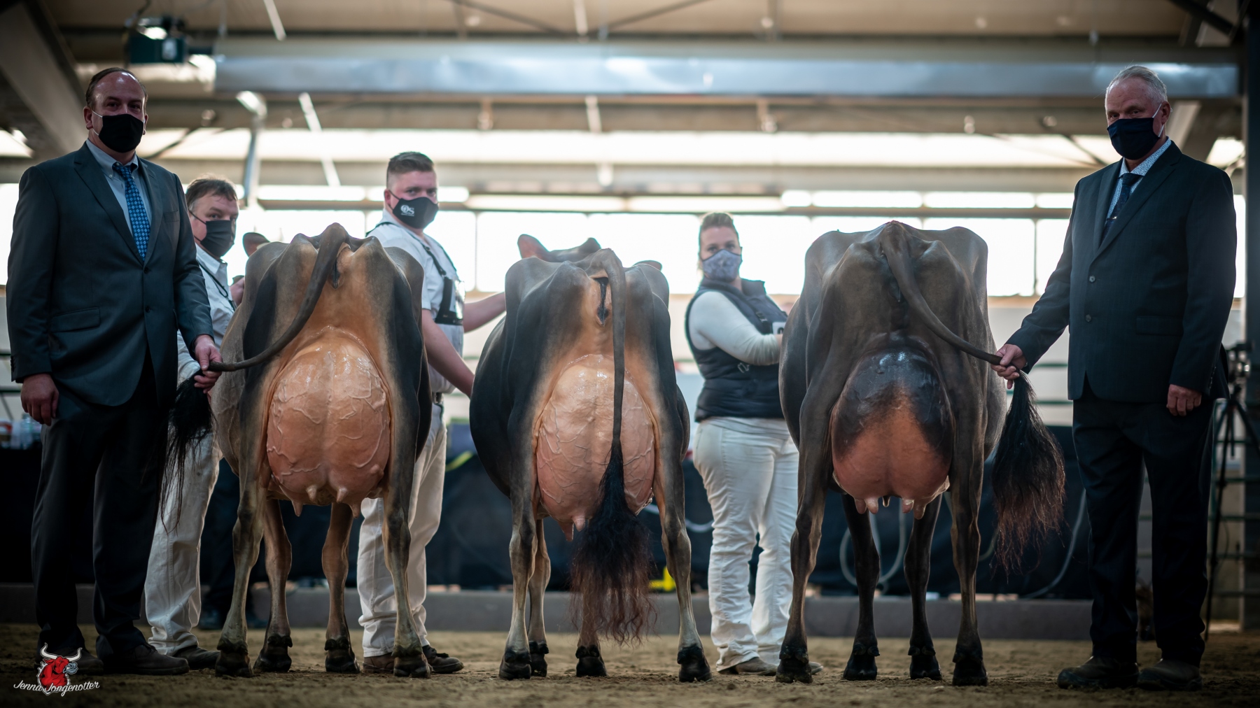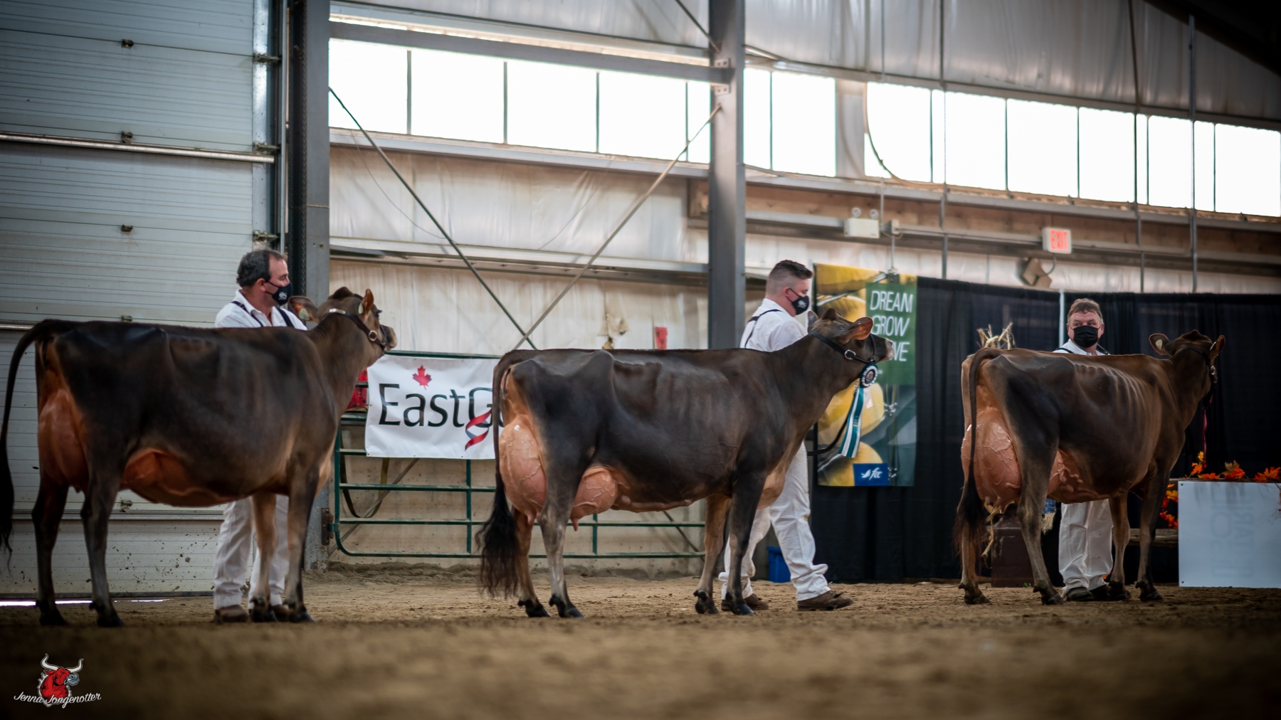 HM Grand Champion: Golden Joyride Louisa (Joyride), 1st Milking Senior Yearling, Glen & Sheila Burgess, ON Senior Champion: Rexlea Joel Karausel (Joel), 1st Senior 3 Year Old, Ferme Pierre Boulet Inc., QC