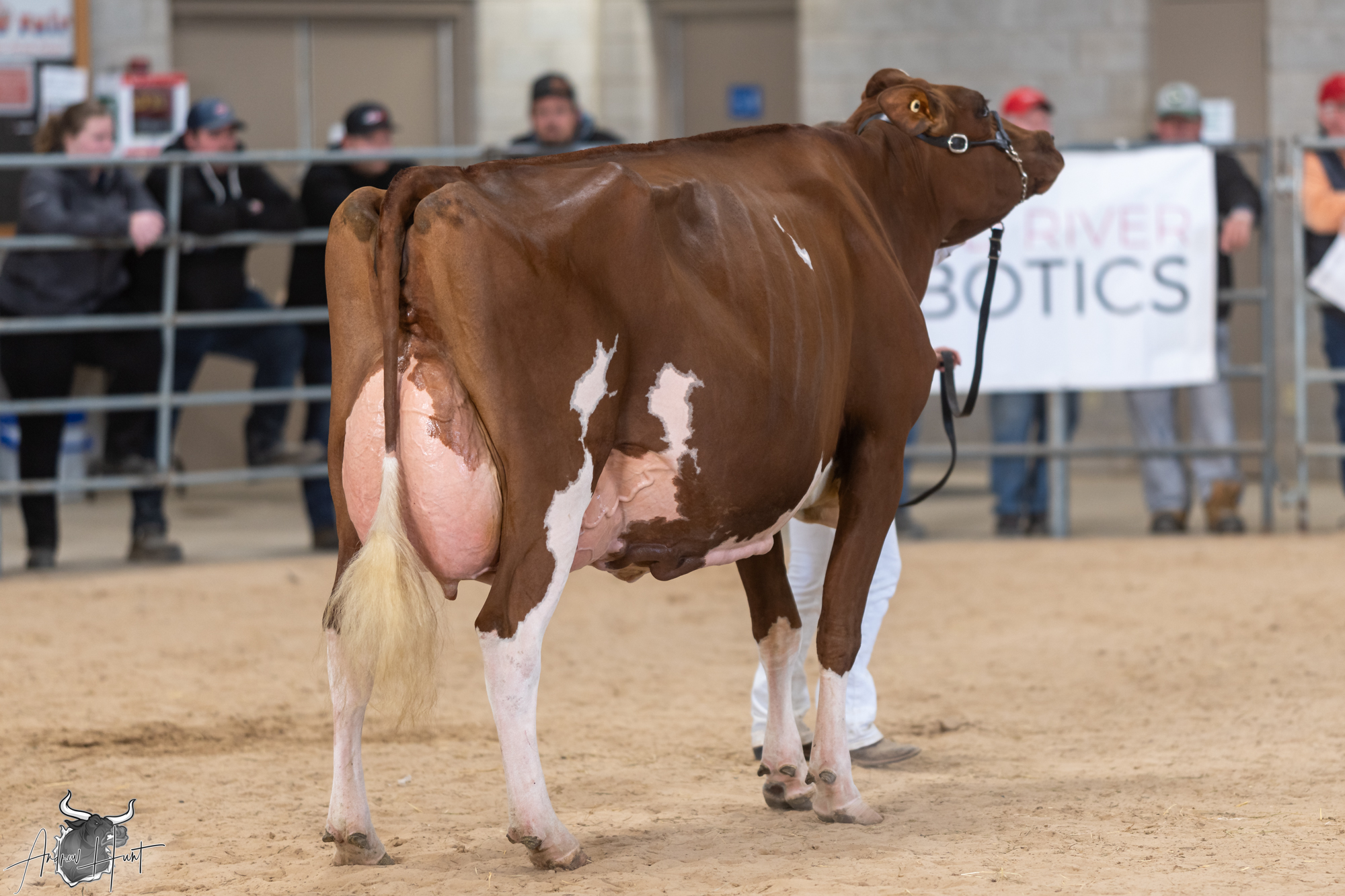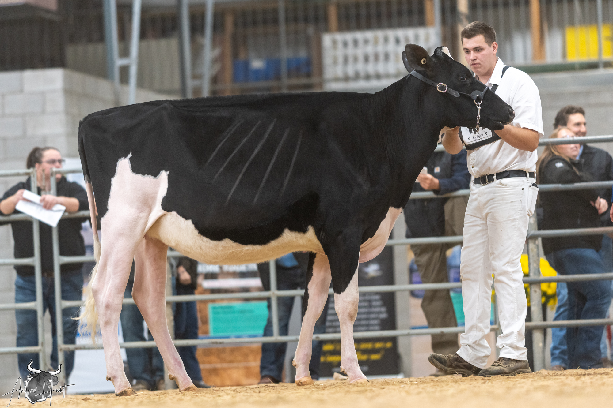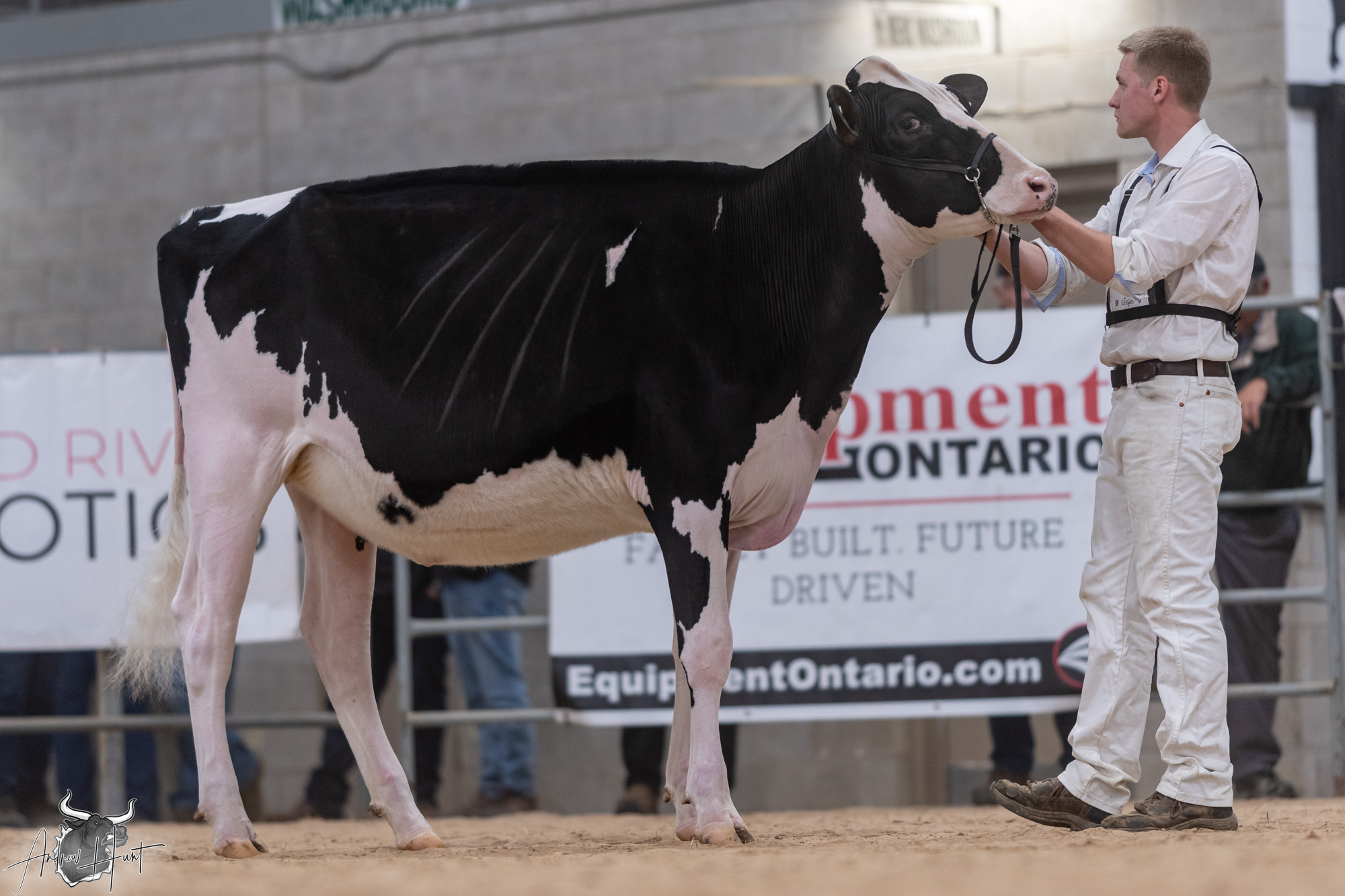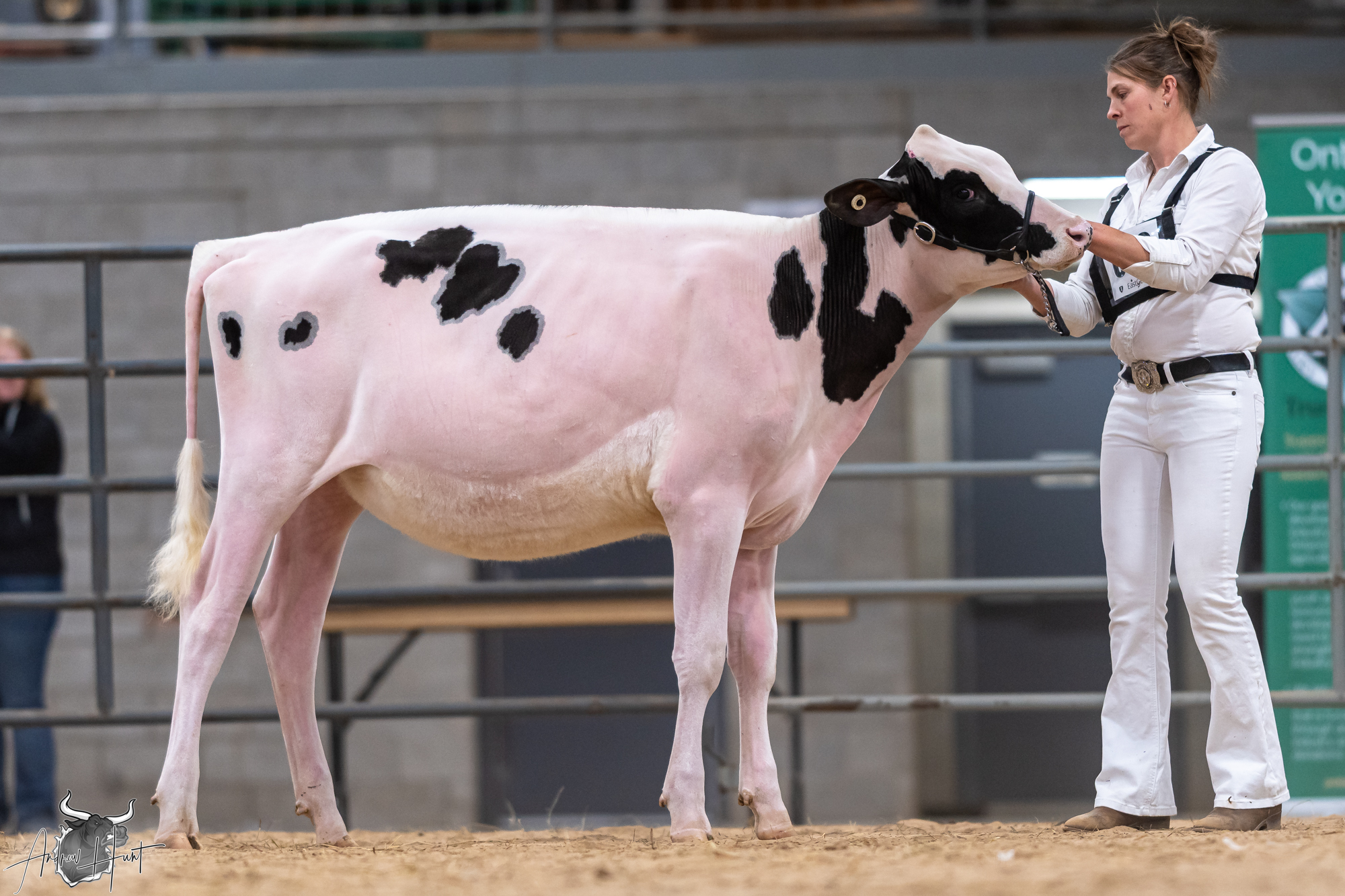 Reserve Junior Champion: Micheret Aurelie Direct (Direct), 1st spring yearling, Exhibited by: Keaton Phoenix; Owned by: Frankhaven Holsteins and Keaton Phoenix, Ingersoll, ON