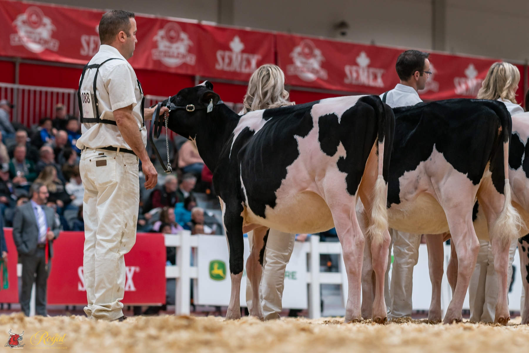 Reserve Junior Champion: Knonaudale Ohyah (Jacoby), 1st junior yearling, Jean-Philippe Proulx, JM Valley Holstein, and Stephane Gendreau, QC