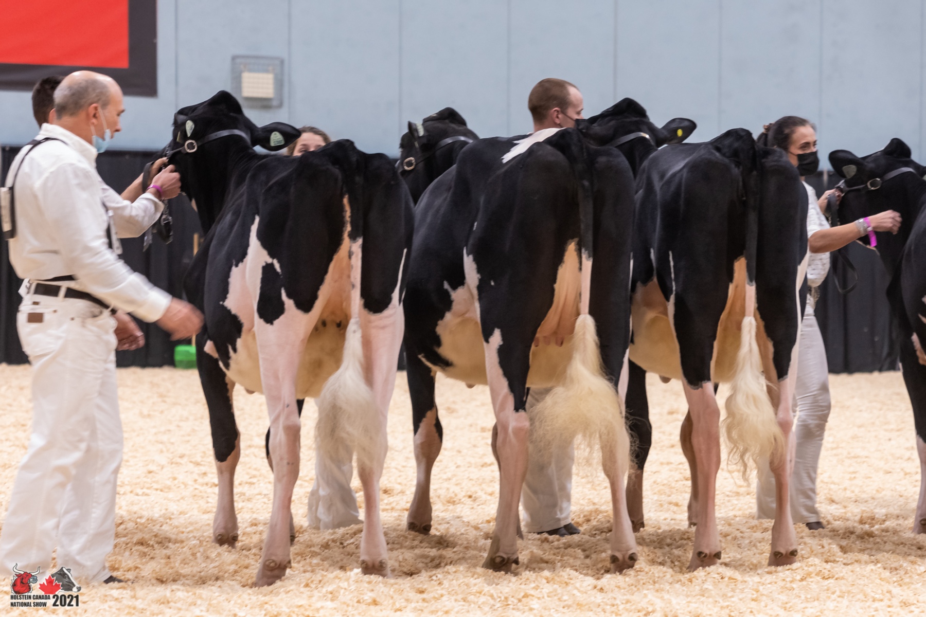 Reserve Intermediate Champion: Lookout Just Watch Me (Douglas), 1st junior 2-year-old, Lookout Holsteins, Elitehaven Genetics, Frank & Diane Borba, and Gerald Todd, Canton de Hatley, QC