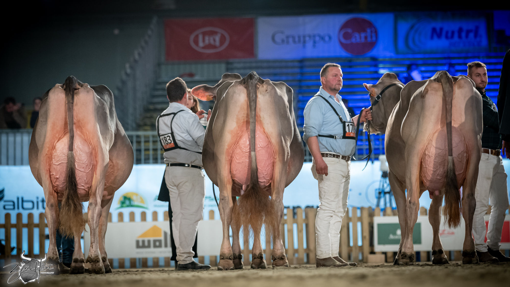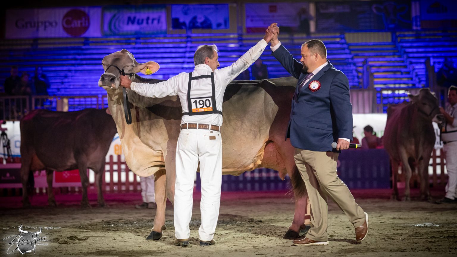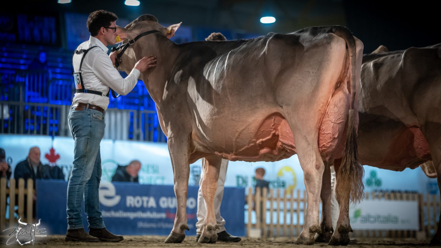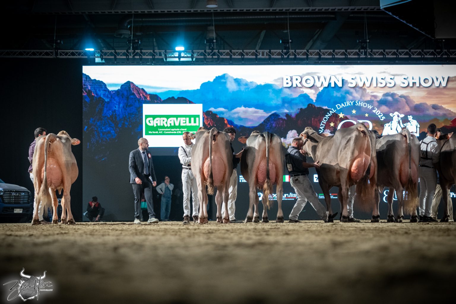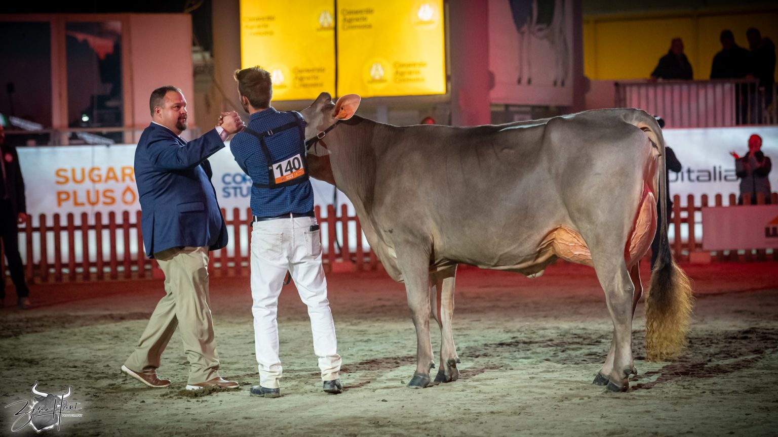 The Brown Swiss competition at Cremona’s International Livestock Exhibition showcased exceptional quality throughout afternoon and evening sessions, with judge Nathan and his wife and associate judge Jenny Thomas presiding over classes that demonstrated Italian breeding excellence