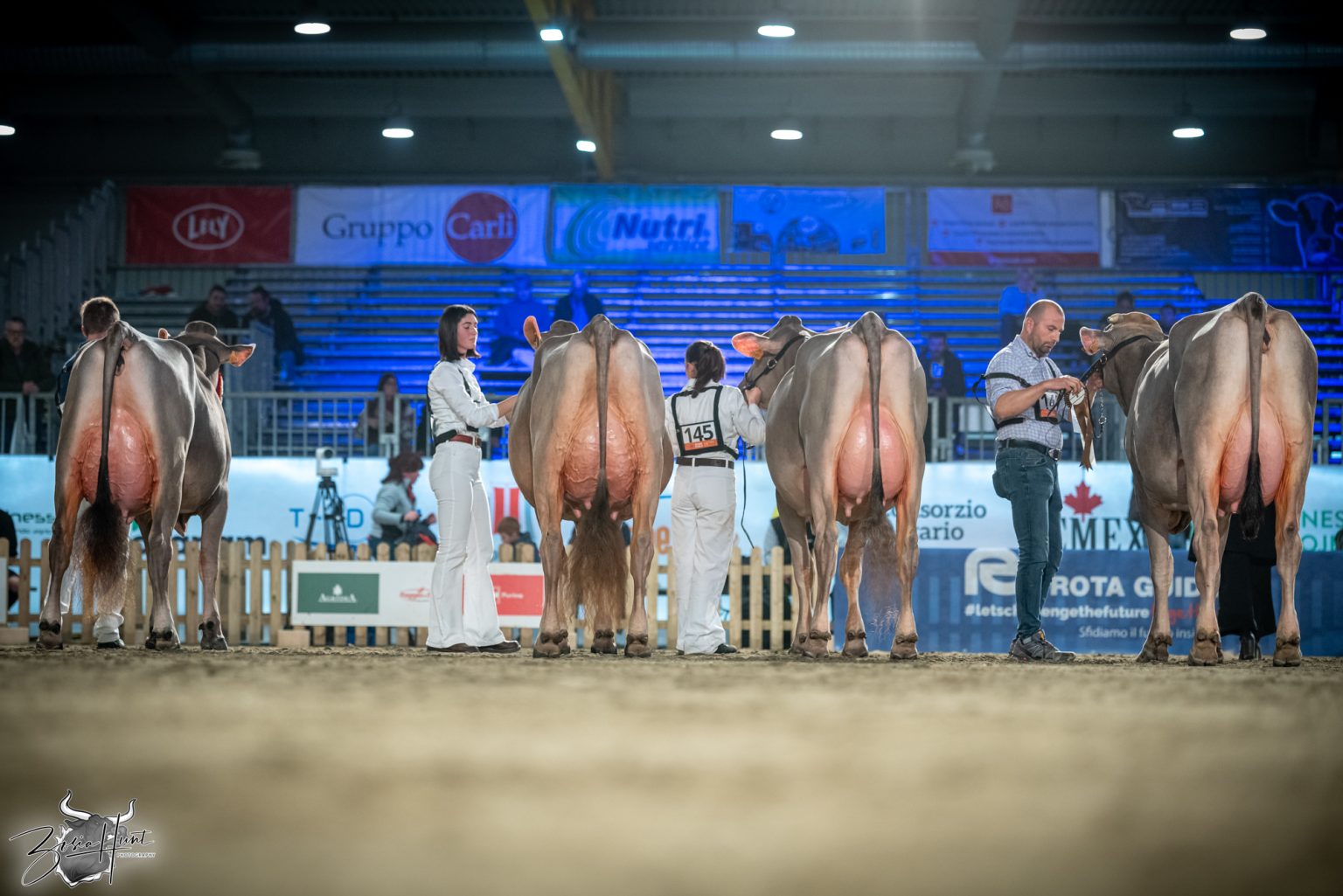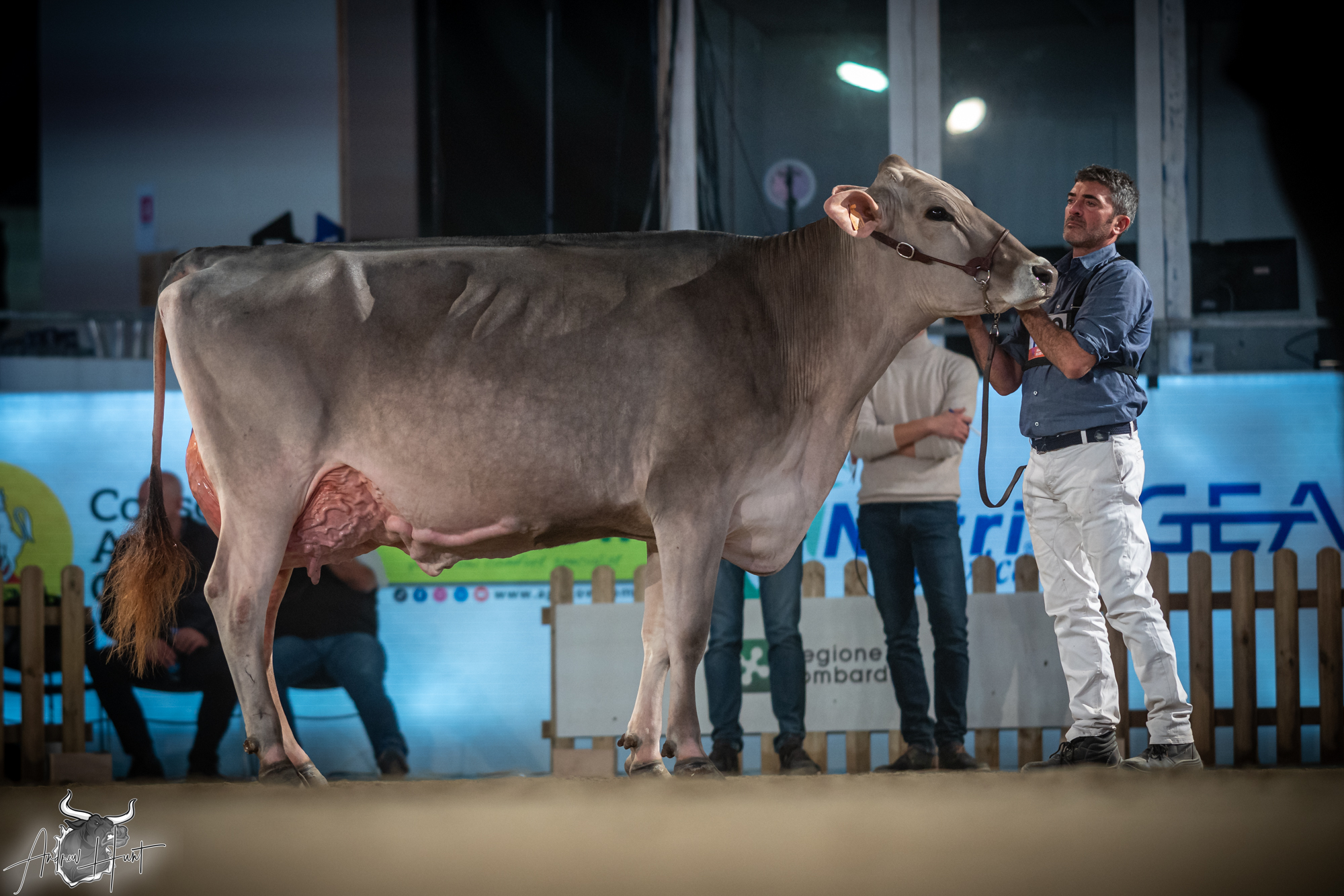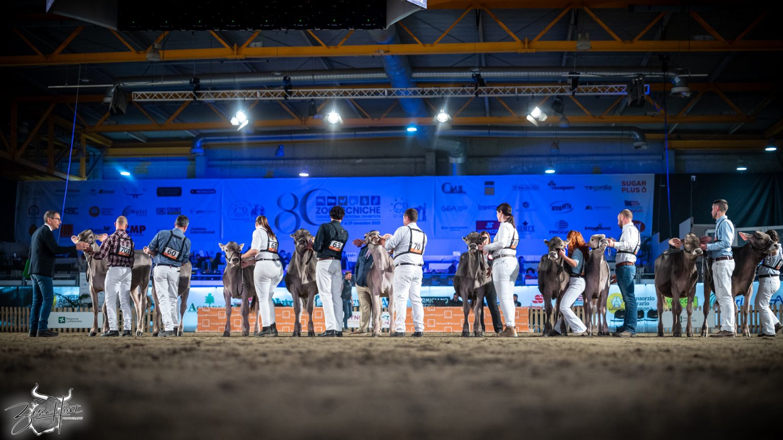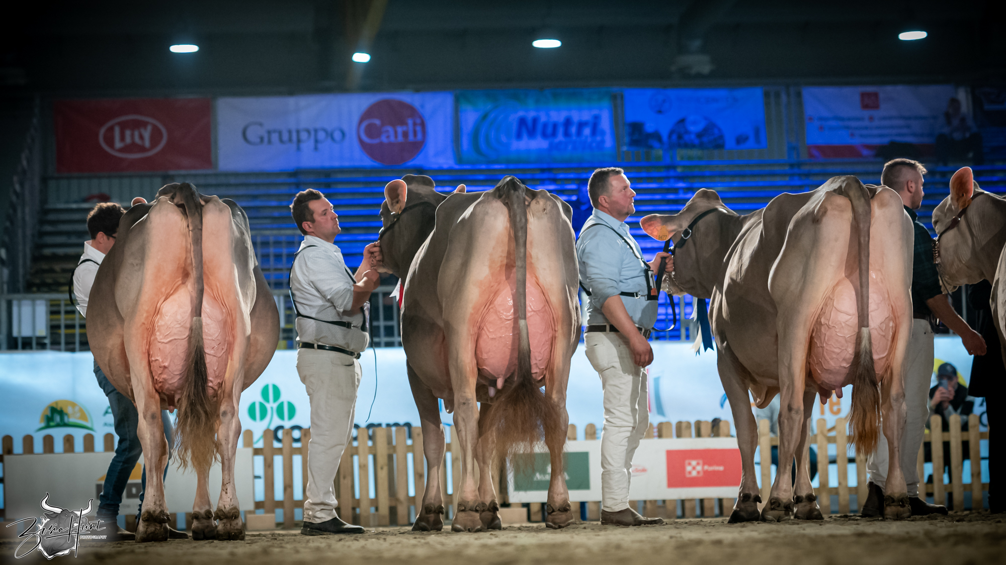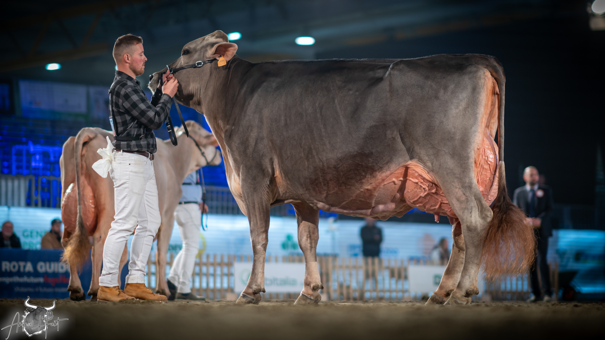 The Brown Swiss competition at Cremona’s International Livestock Exhibition showcased exceptional quality throughout afternoon and evening sessions, with judge Nathan and his wife and associate judge Jenny Thomas presiding over classes that demonstrated Italian breeding excellence