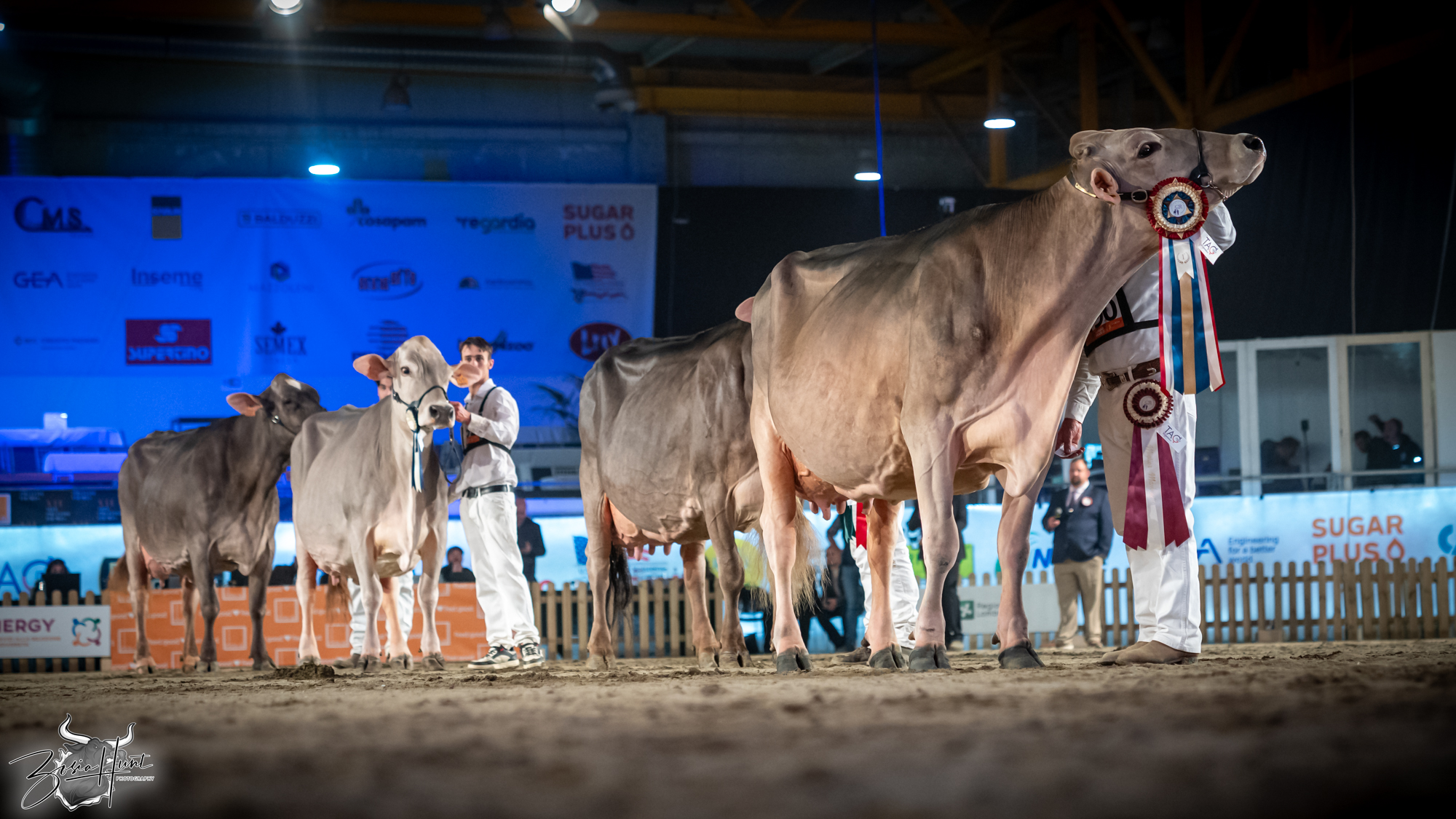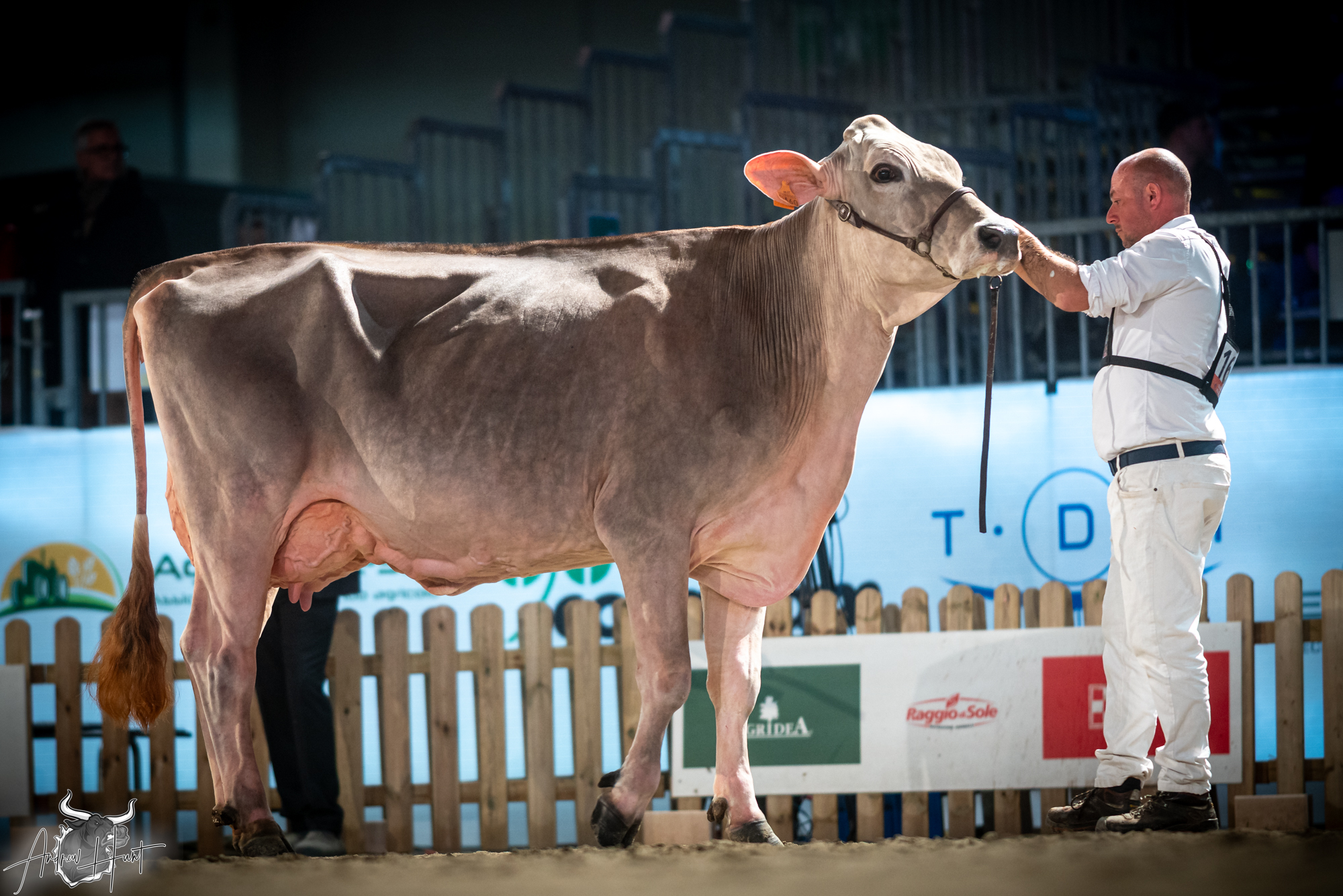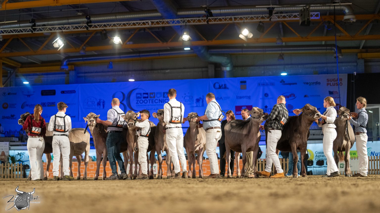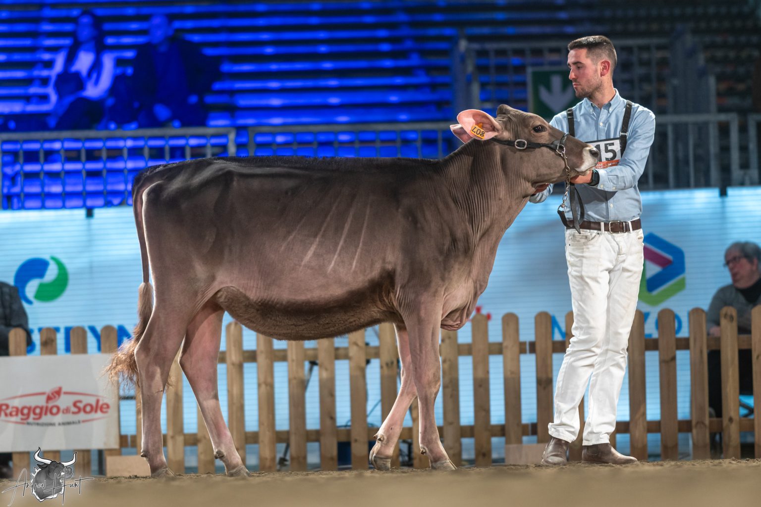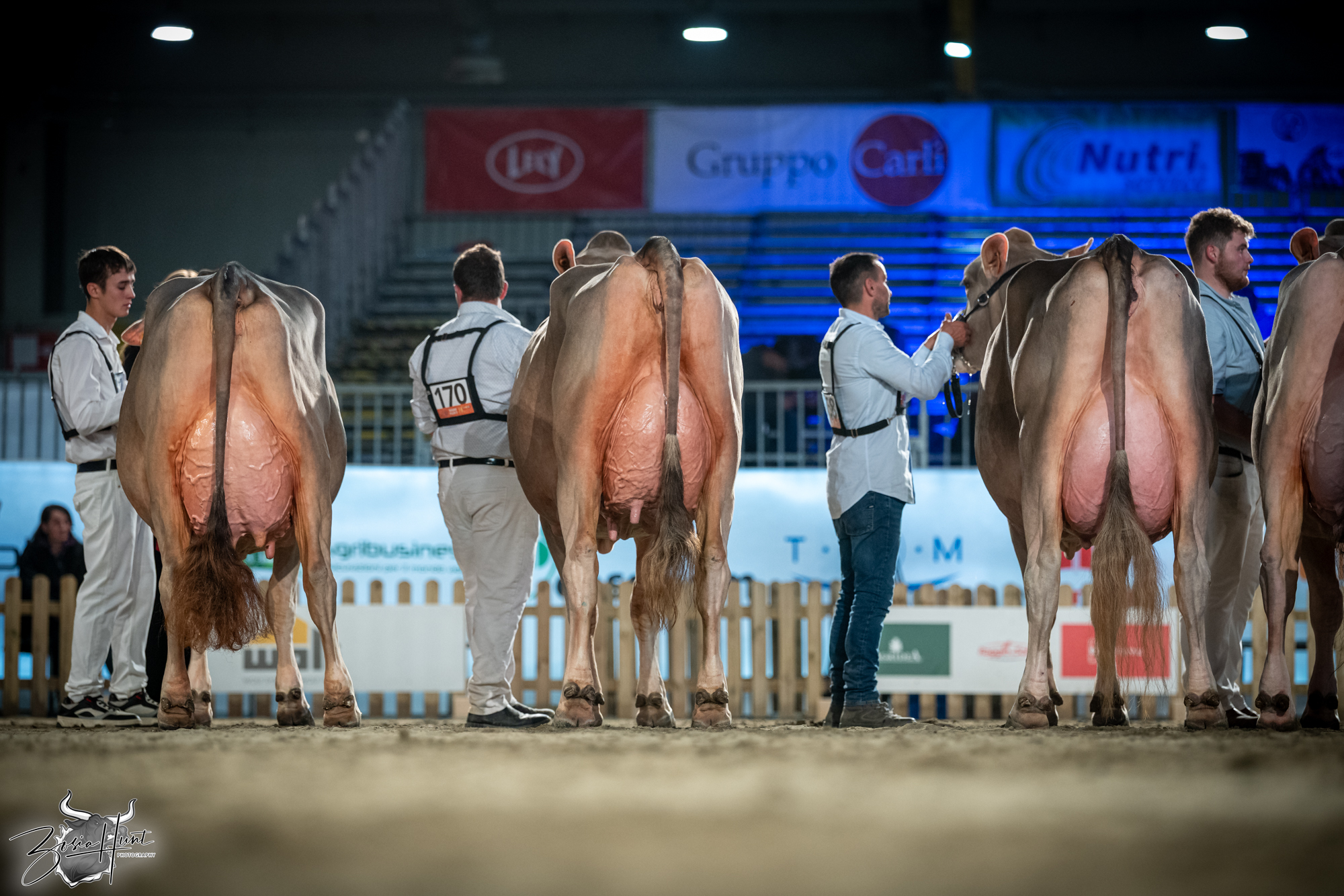 The Brown Swiss competition at Cremona’s International Livestock Exhibition showcased exceptional quality throughout afternoon and evening sessions, with judge Nathan and his wife and associate judge Jenny Thomas presiding over classes that demonstrated Italian breeding excellence