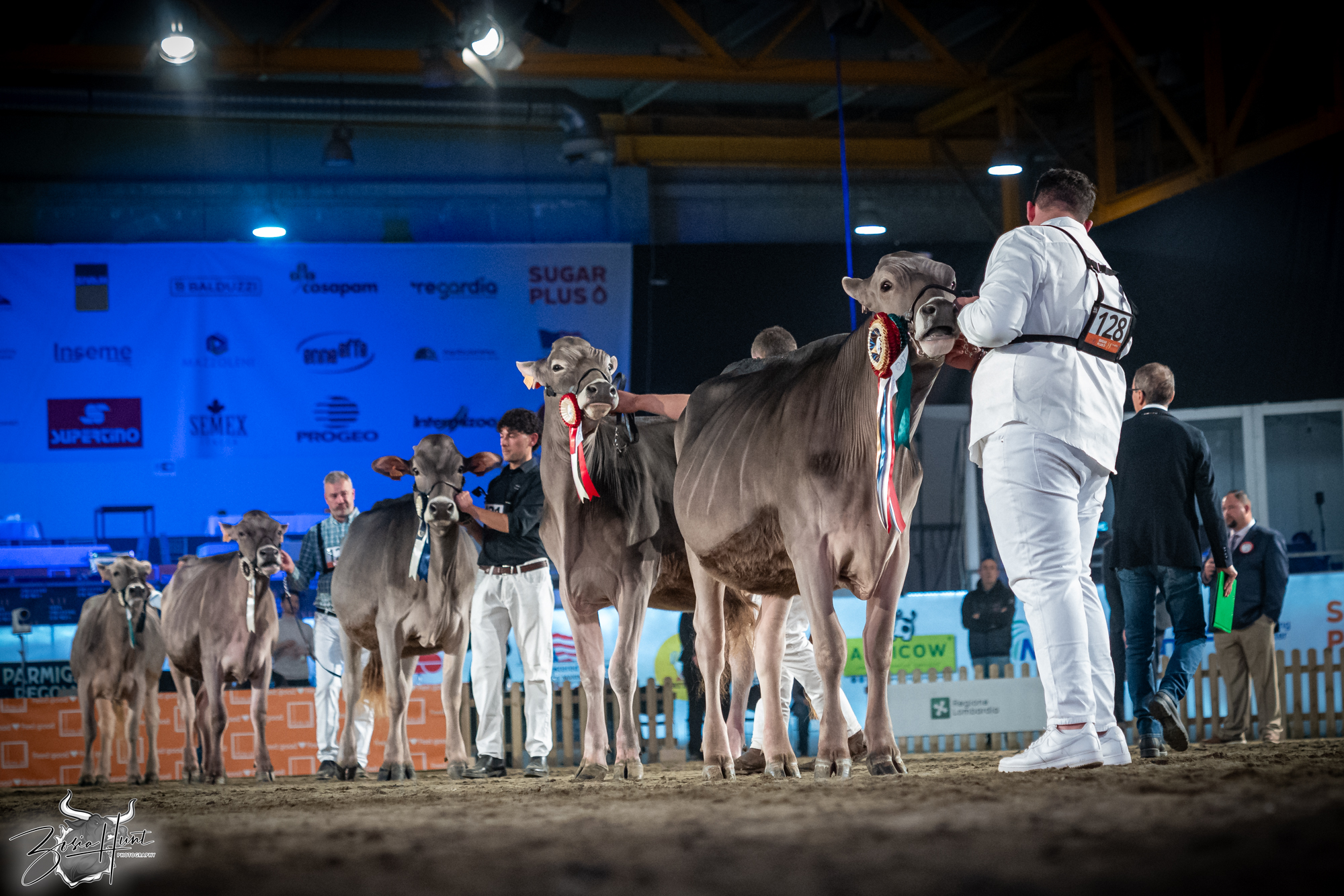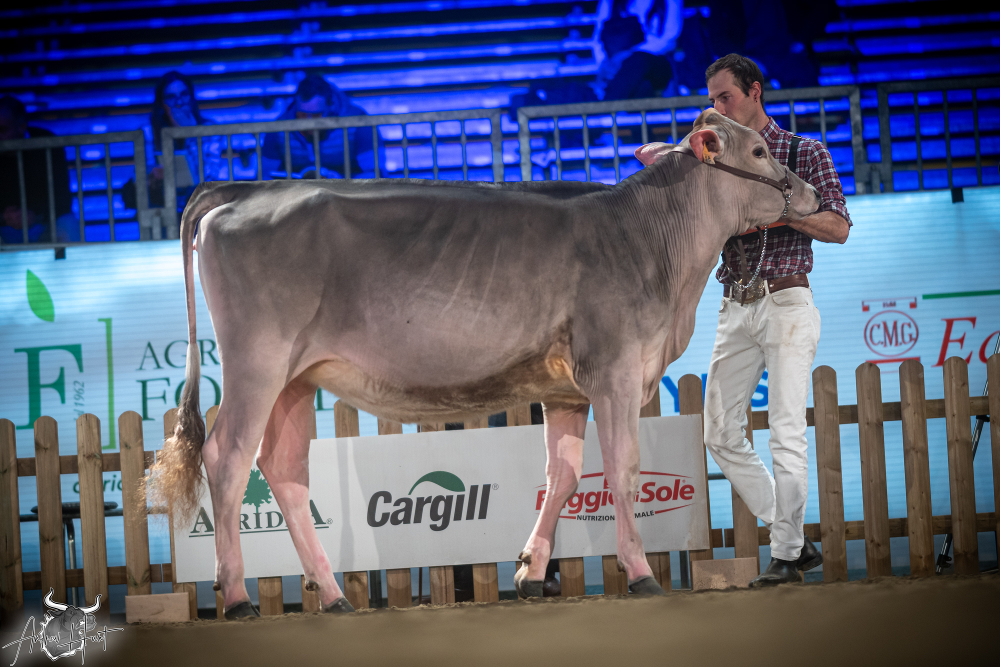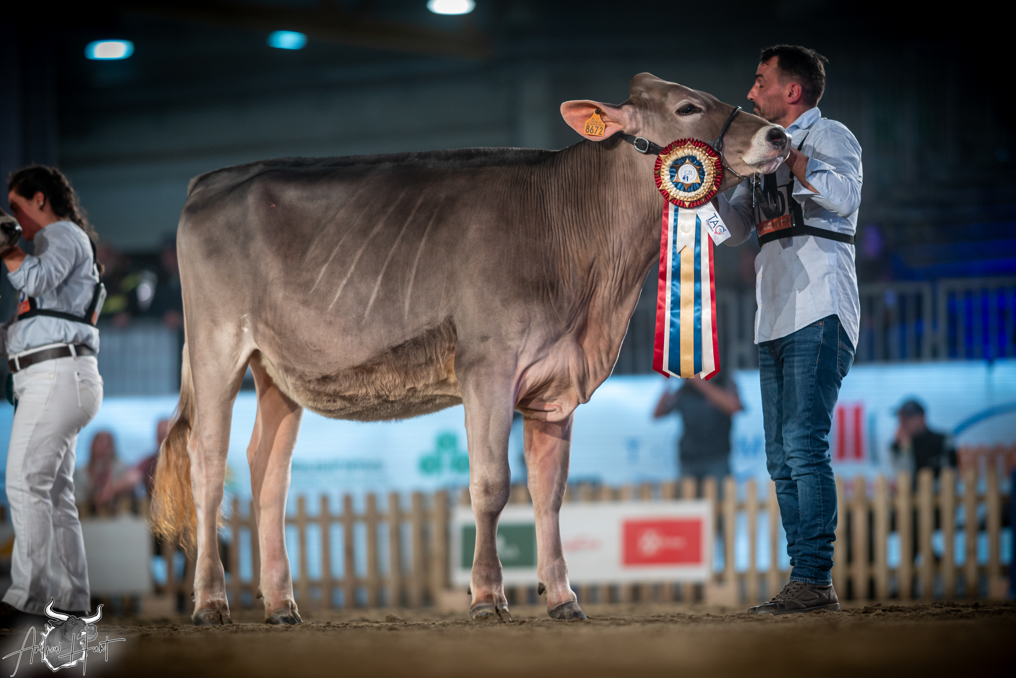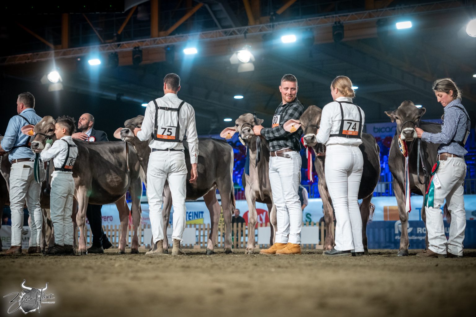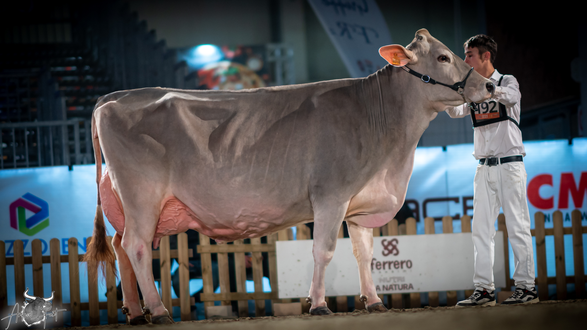 The Brown Swiss competition at Cremona’s International Livestock Exhibition showcased exceptional quality throughout afternoon and evening sessions, with judge Nathan and his wife and associate judge Jenny Thomas presiding over classes that demonstrated Italian breeding excellence