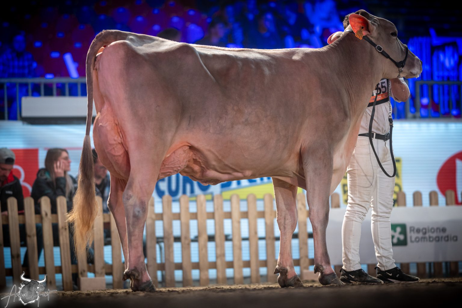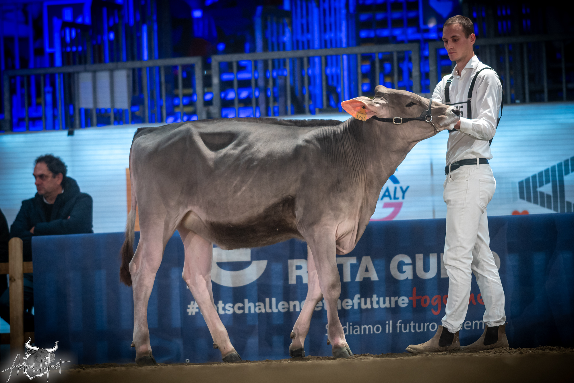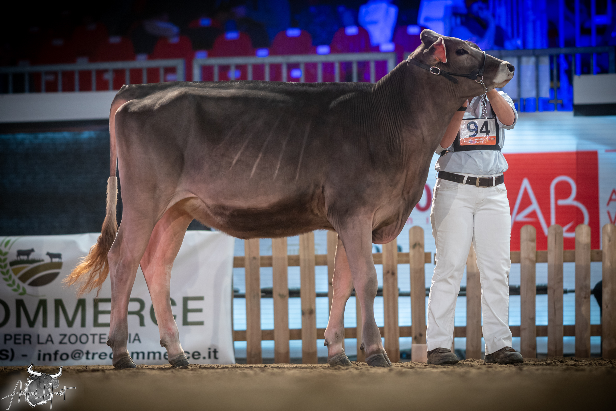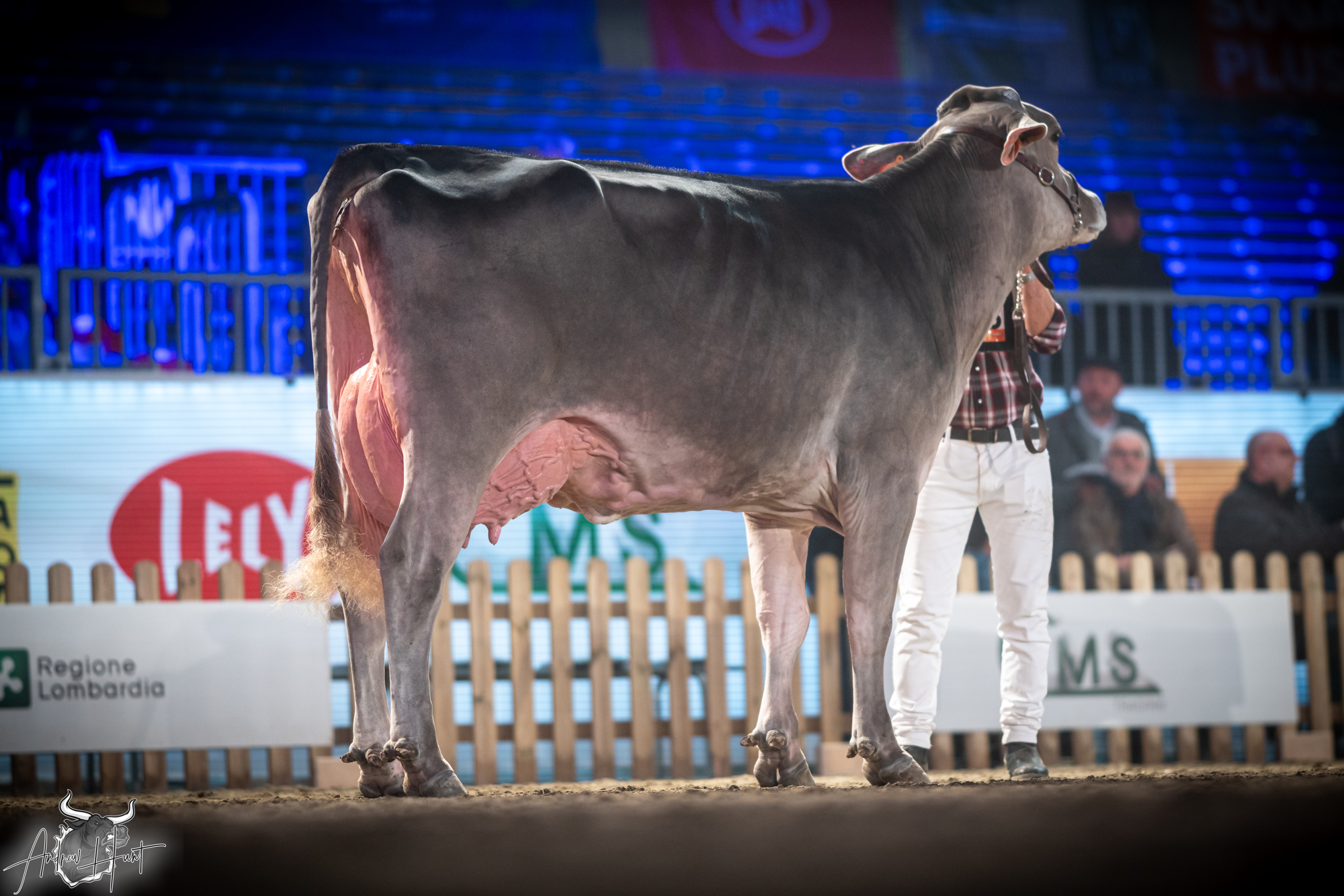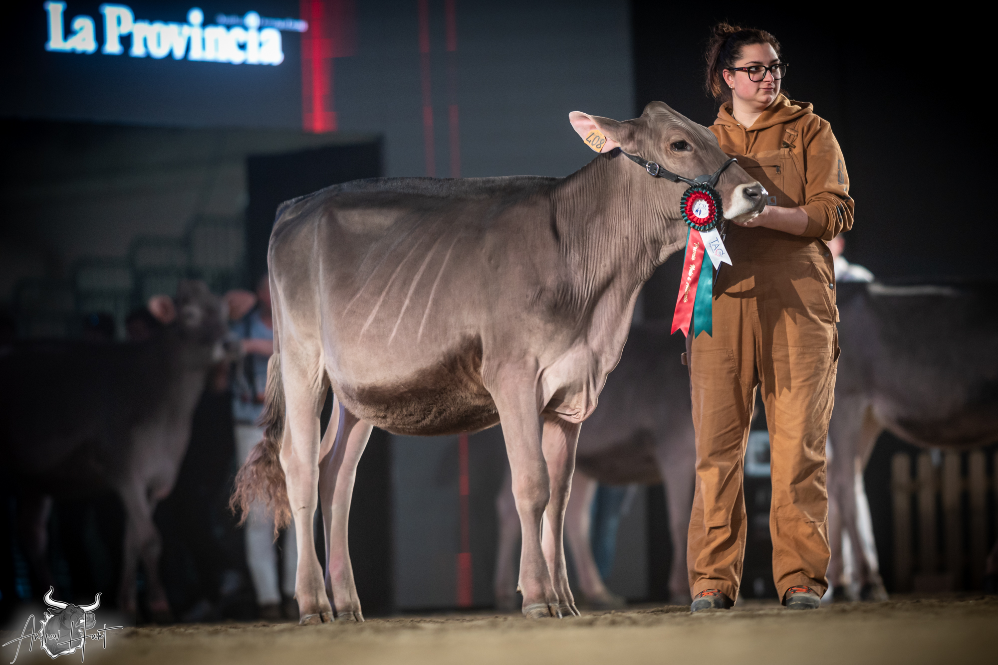 The Brown Swiss competition at Cremona’s International Livestock Exhibition showcased exceptional quality throughout afternoon and evening sessions, with judge Nathan and his wife and associate judge Jenny Thomas presiding over classes that demonstrated Italian breeding excellence