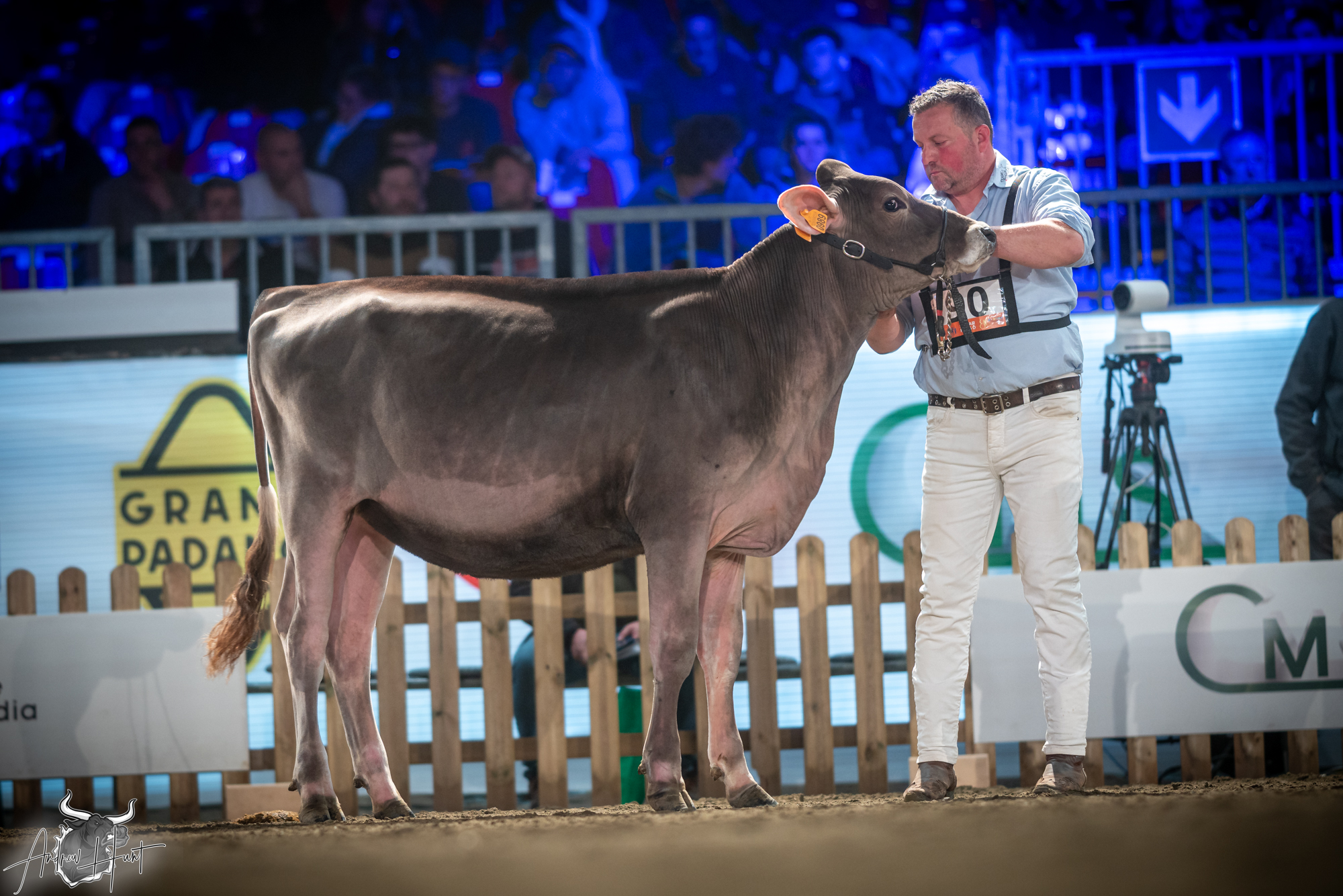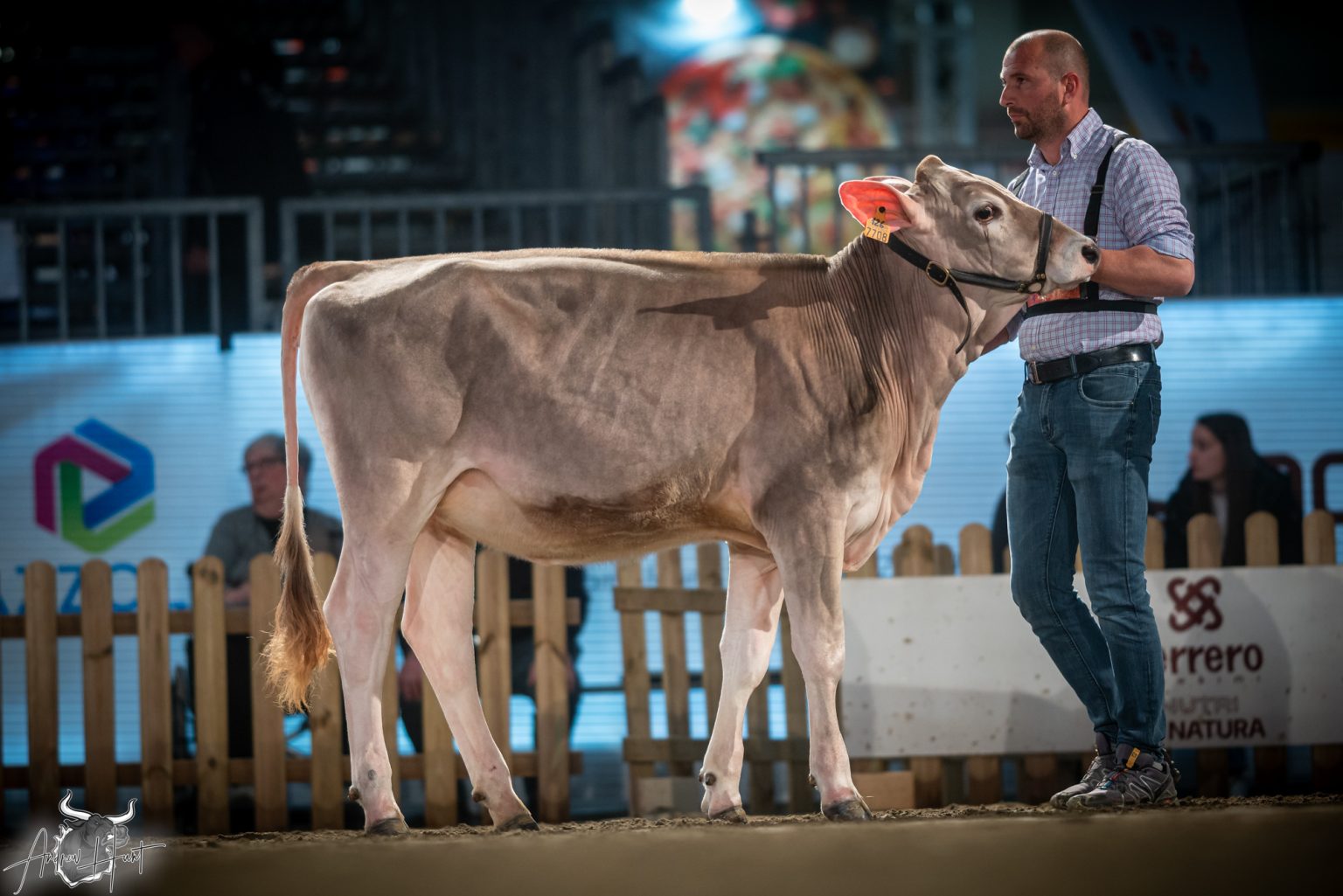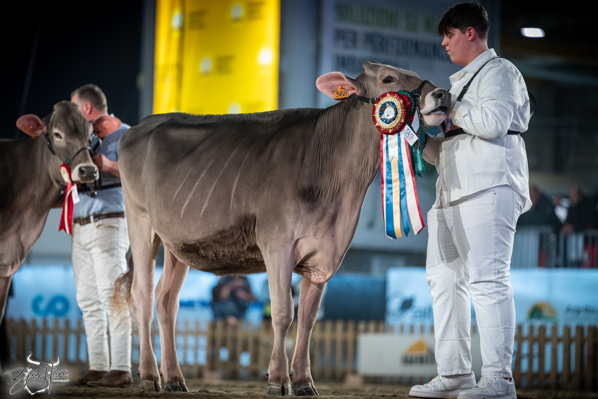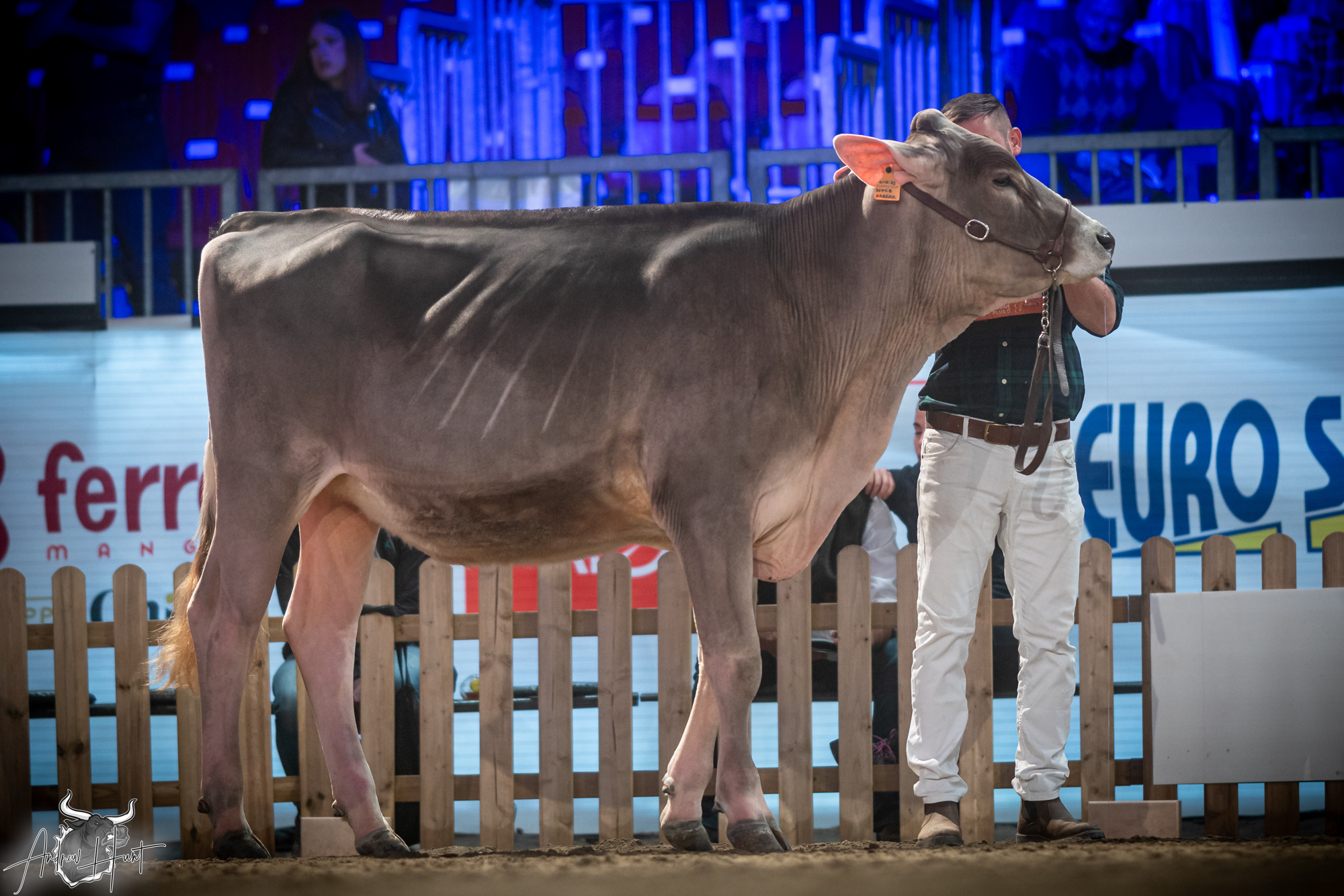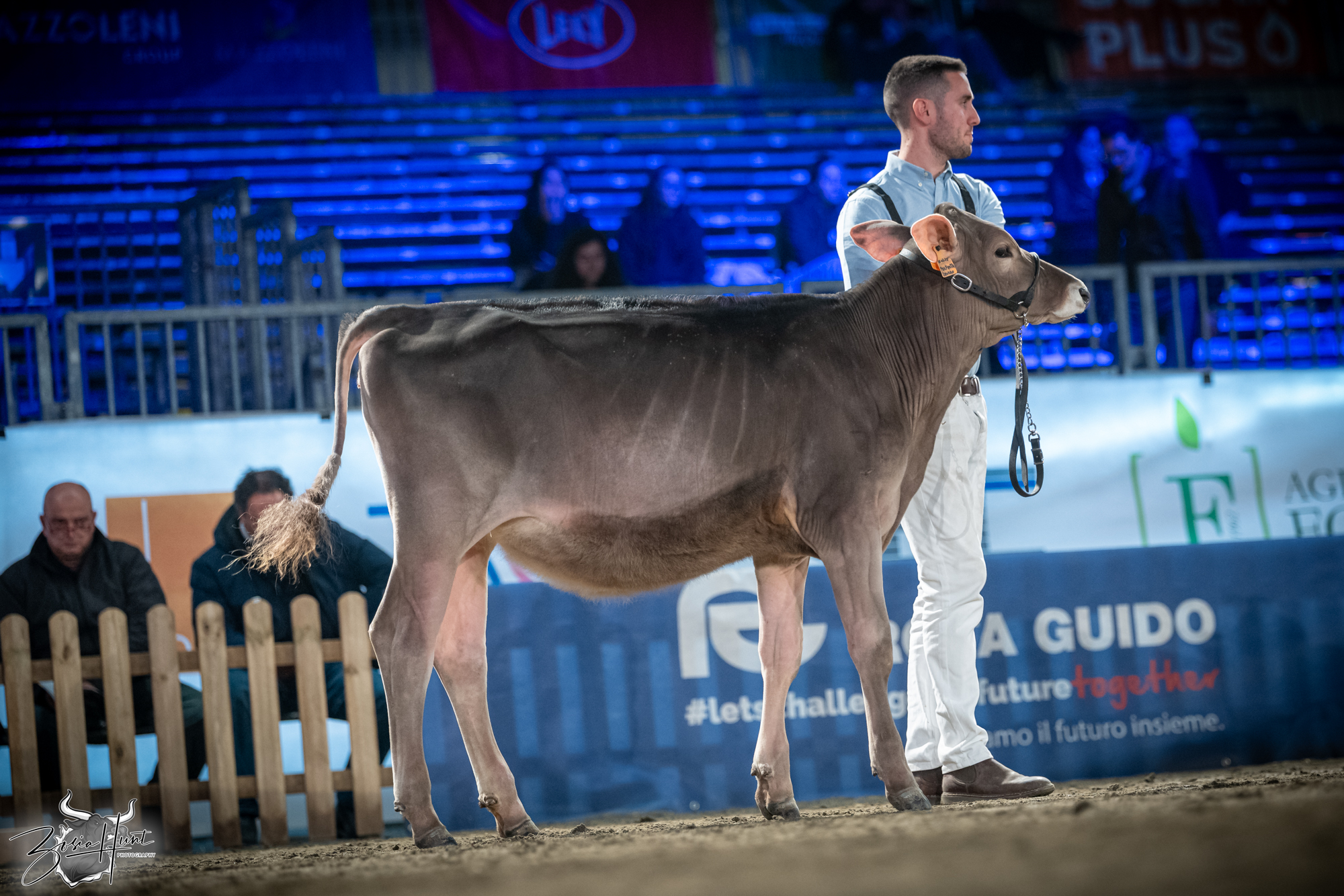 The Brown Swiss competition at Cremona’s International Livestock Exhibition showcased exceptional quality throughout afternoon and evening sessions, with judge Nathan and his wife and associate judge Jenny Thomas presiding over classes that demonstrated Italian breeding excellence