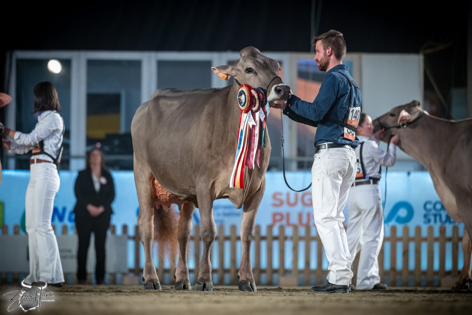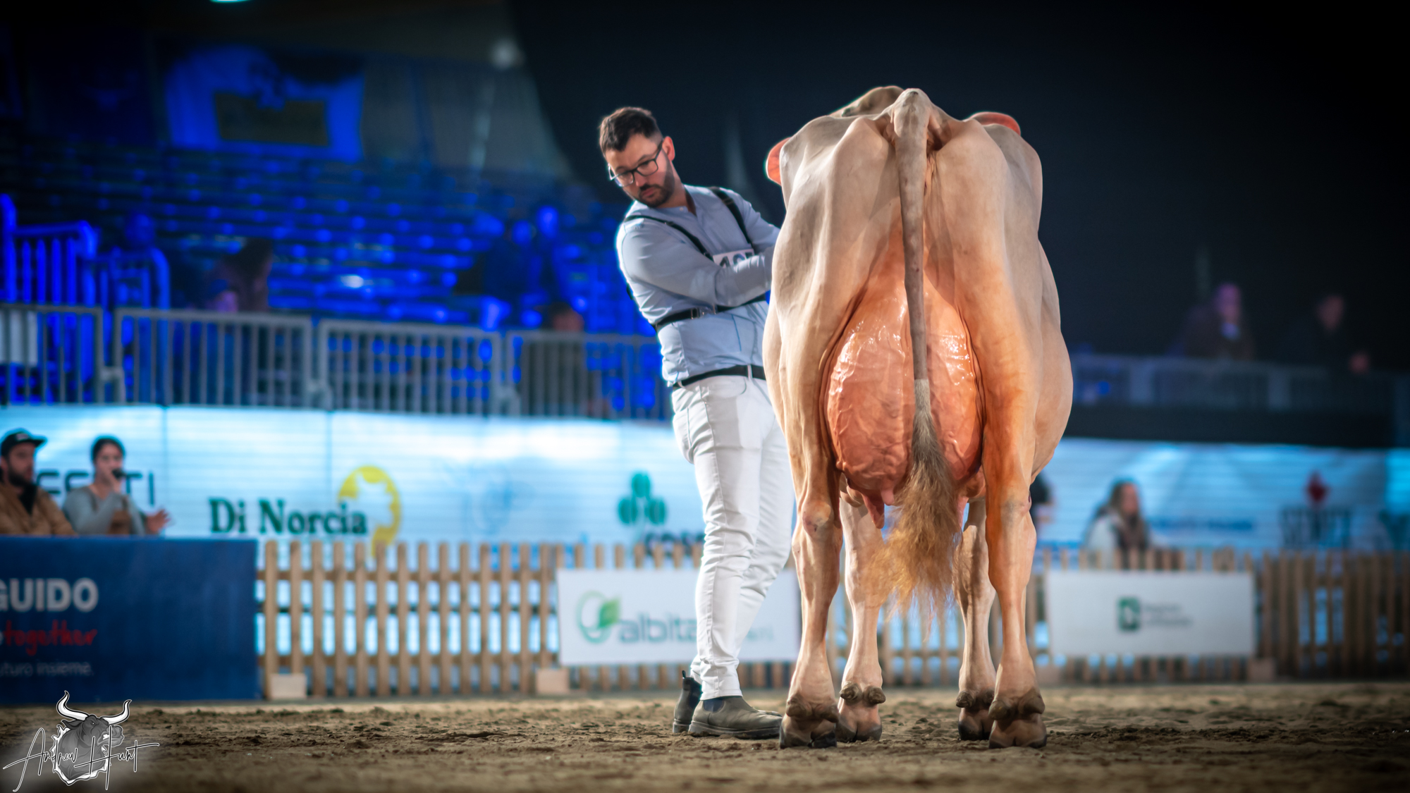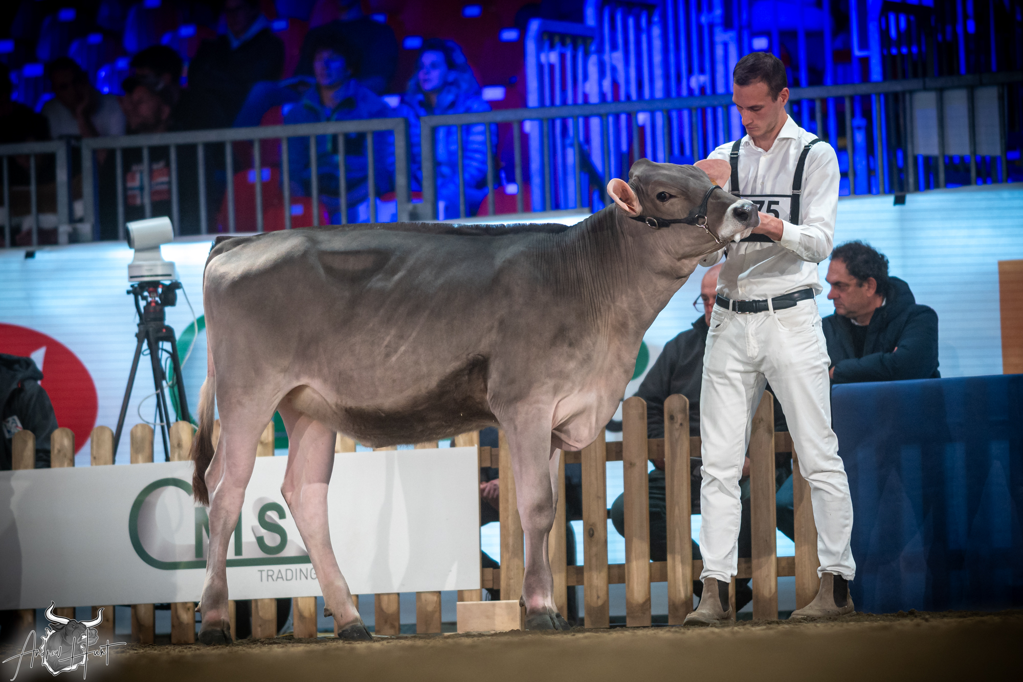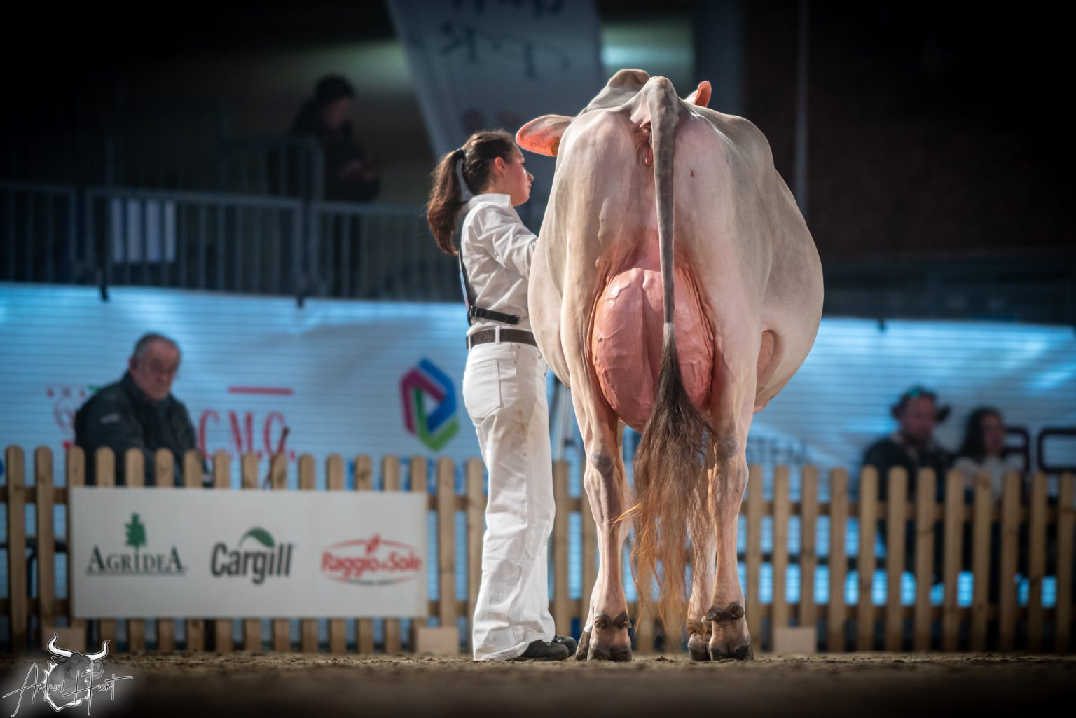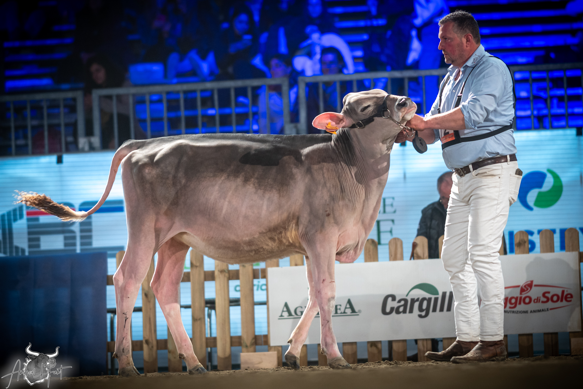 The Brown Swiss competition at Cremona’s International Livestock Exhibition showcased exceptional quality throughout afternoon and evening sessions, with judge Nathan and his wife and associate judge Jenny Thomas presiding over classes that demonstrated Italian breeding excellence