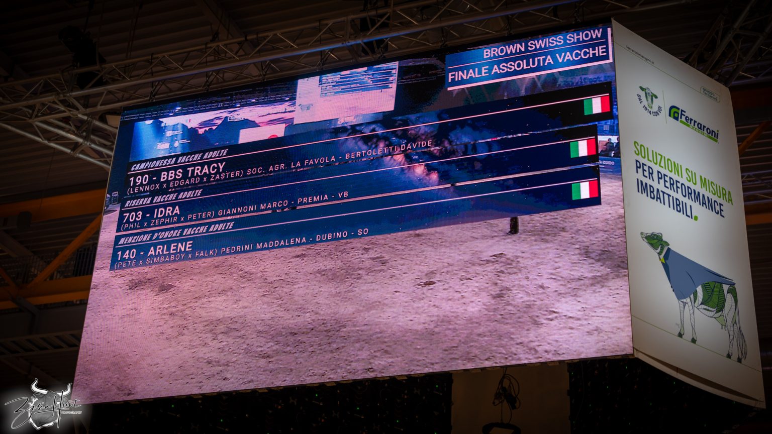 | Overall Cow Champion (Bruna: Campionessa Assoluta Vacche) | BBS TRACY (BBS Lenux Tracy) | LENNOX x EDGARD x ZASTER | SOC. AGR. LA FAVOLA – BERTOLETTI | Vacche 4° Lattazione |