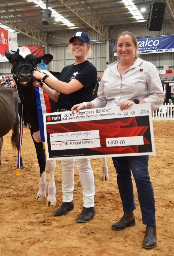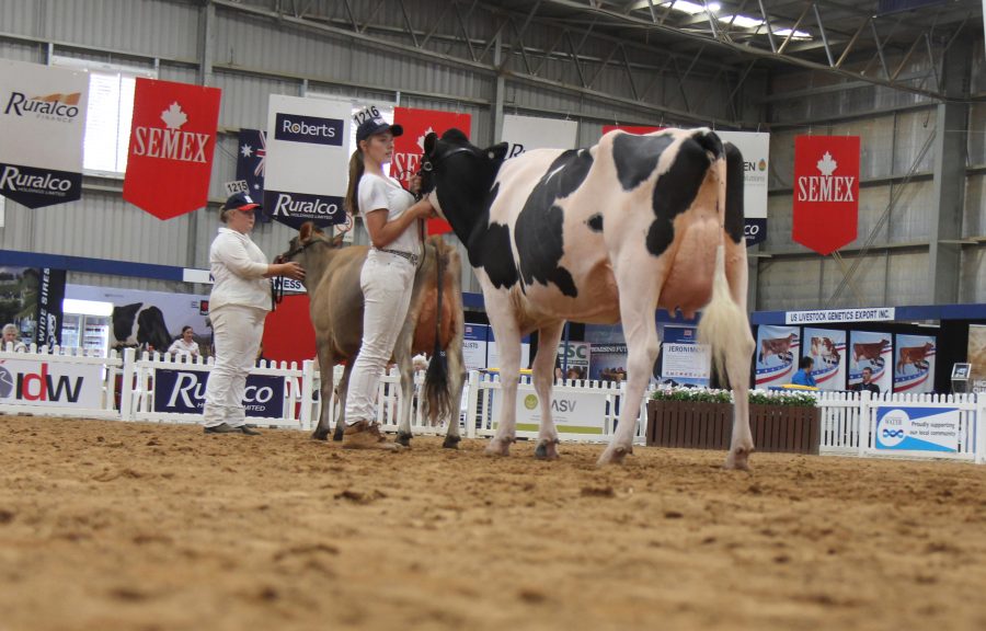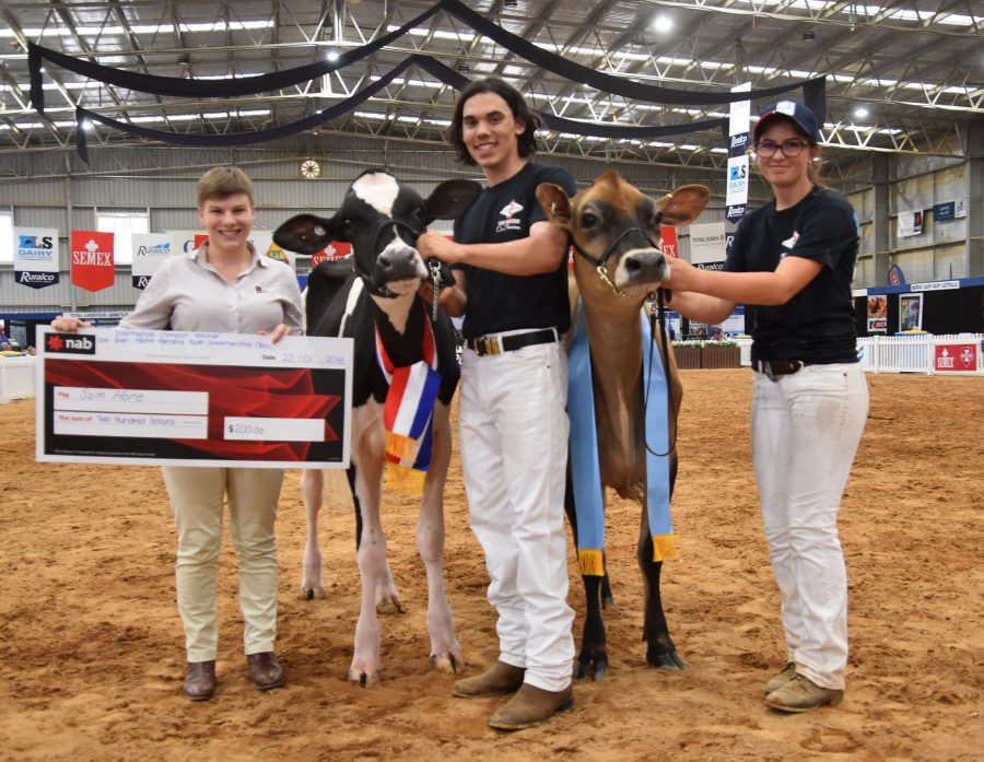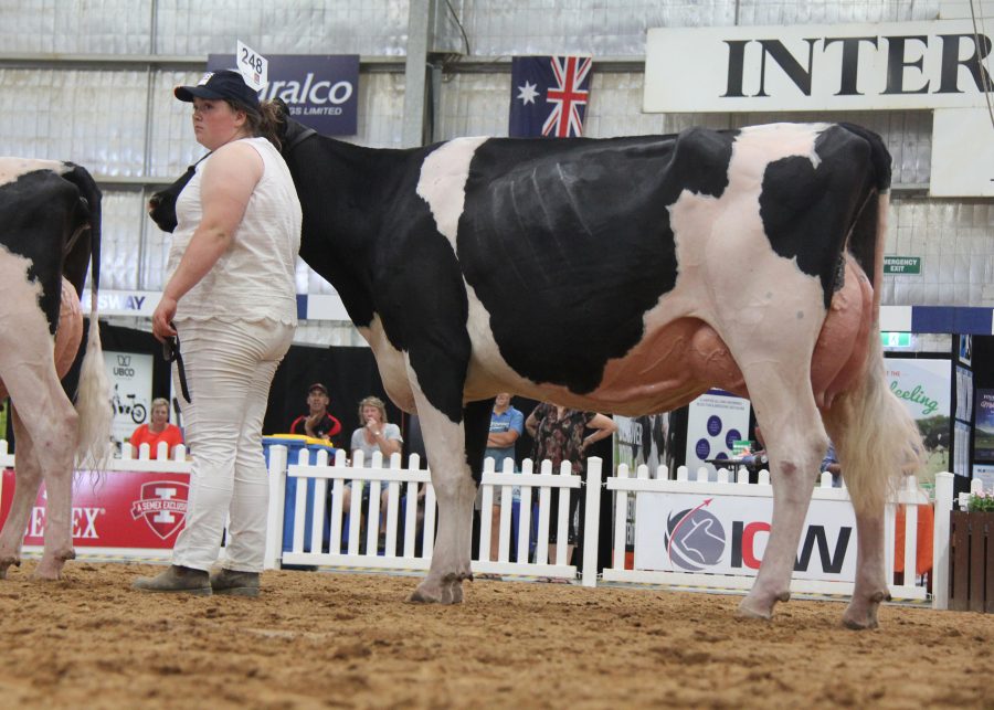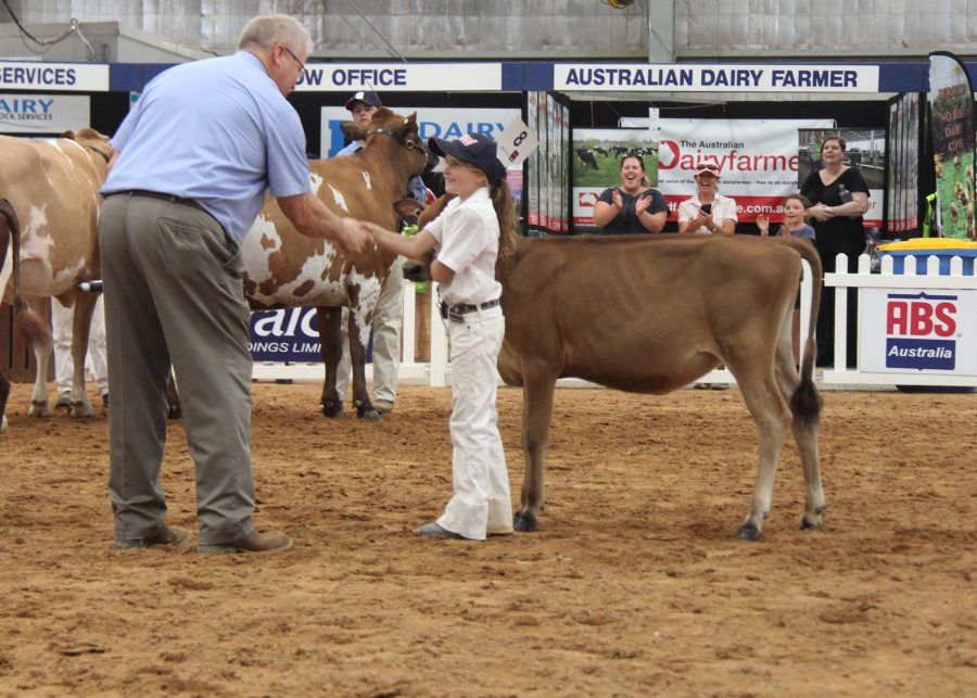 Grand Champion of the youth show was led by the show’s must successful handler, Cally O’Shannassy. Fairvale BC Armani was a Grand Champion Heifer of the Youth Show. Fairvale BC Armani Nola is the first Holstein Karl Munden, from Warragul, has bought. He secured her in October 2016 at the Big Bang dispersal and she calved in this year with an Awesome heifer. Reserve was Elmar Firstclass Jessica, led by Brady Hore, of Victoria and Honourable Mention was a Jersey who her owner Mark Mangold bought in a package of B-grade embryos from River Valley Jerseys.