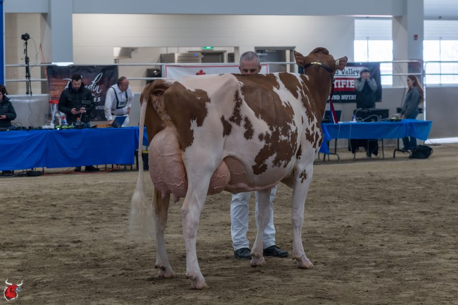 RED & WHITE HM JUNIOR CHAMPION – HEAVENLY-I WARRIOR RED SATIN (WARRIOR), 4TH SUMMER YEARLING, GERARDO & JOSE GONZALEZ, HEAVENLY GENETICS, MB LUCKYLADY FARM AND SELECT FARM & EXPORT SERVICES, AYLMER, ON