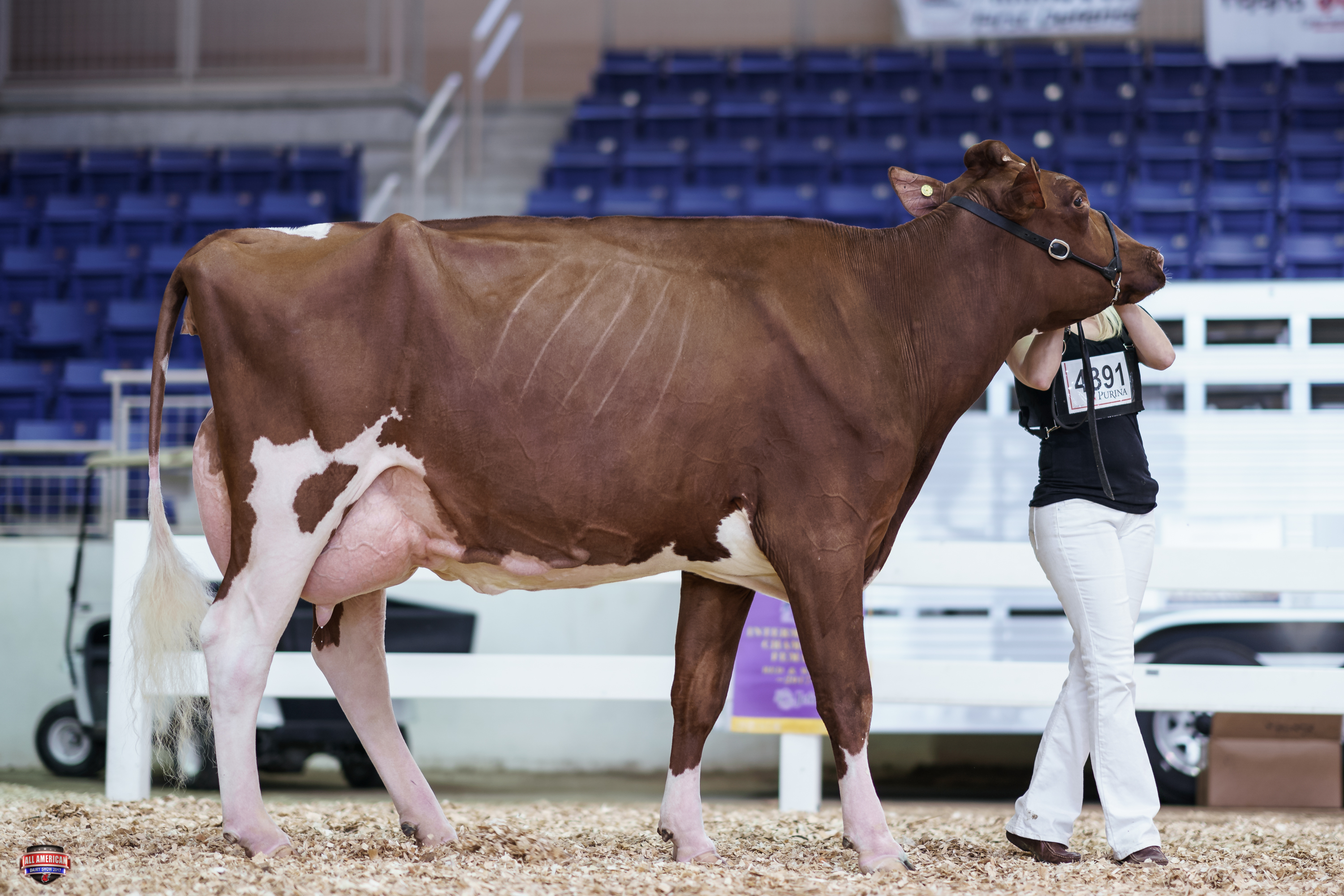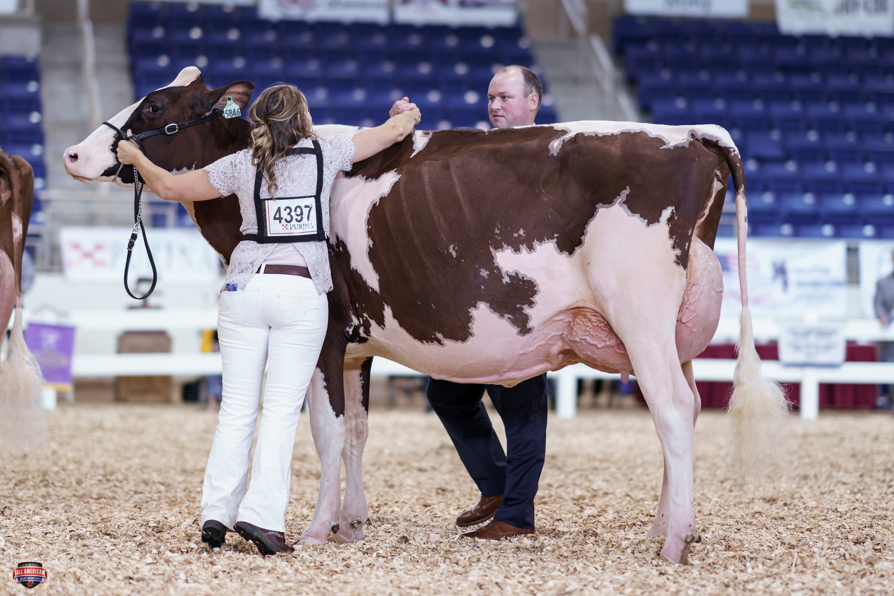 RES. GRAND CHAMPION: MS D APPLE DANIELLE-RED-ET (DESTRY), 2ND AGED COW, AMANDA KENNEDY & CHIP SAVAGE, MD