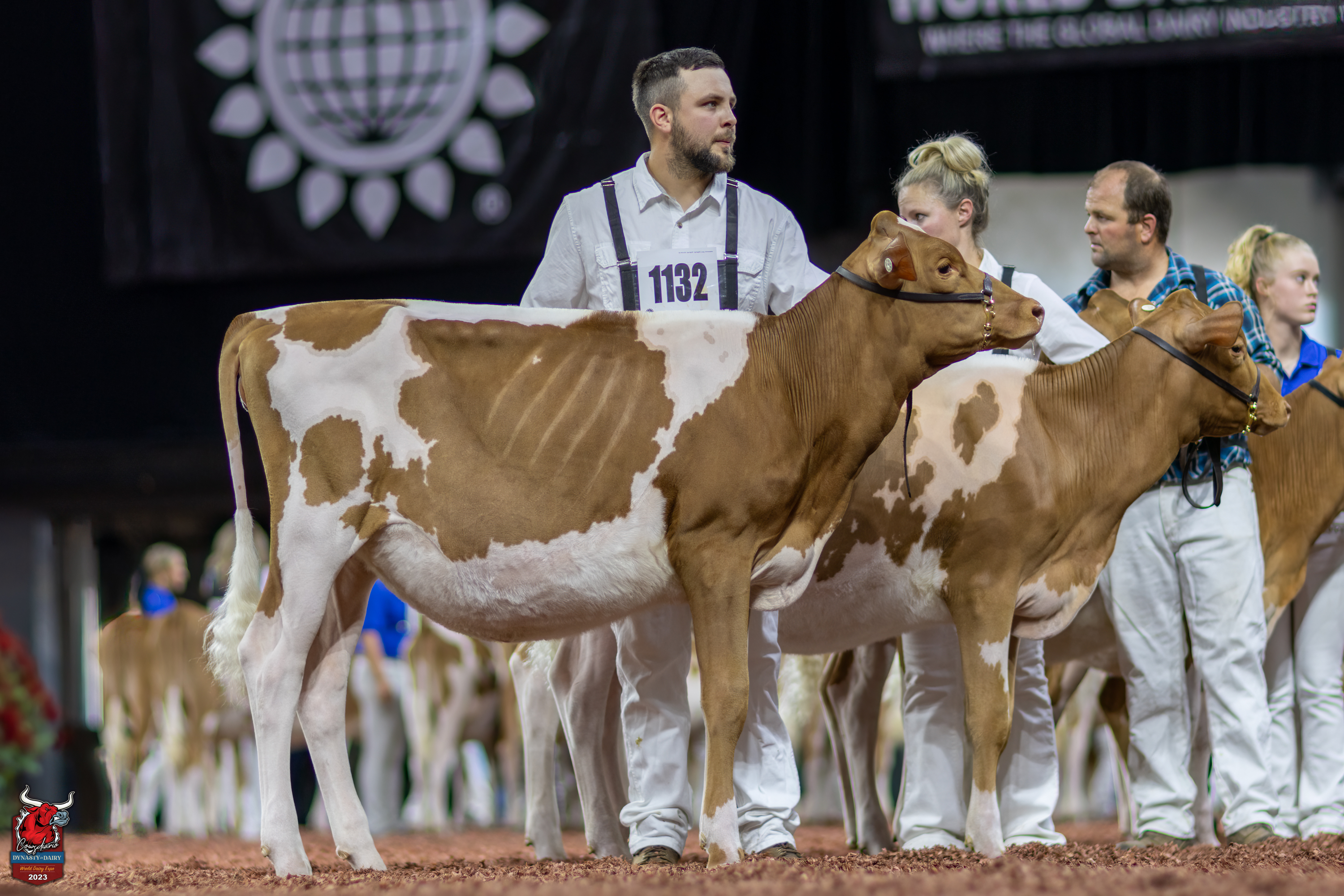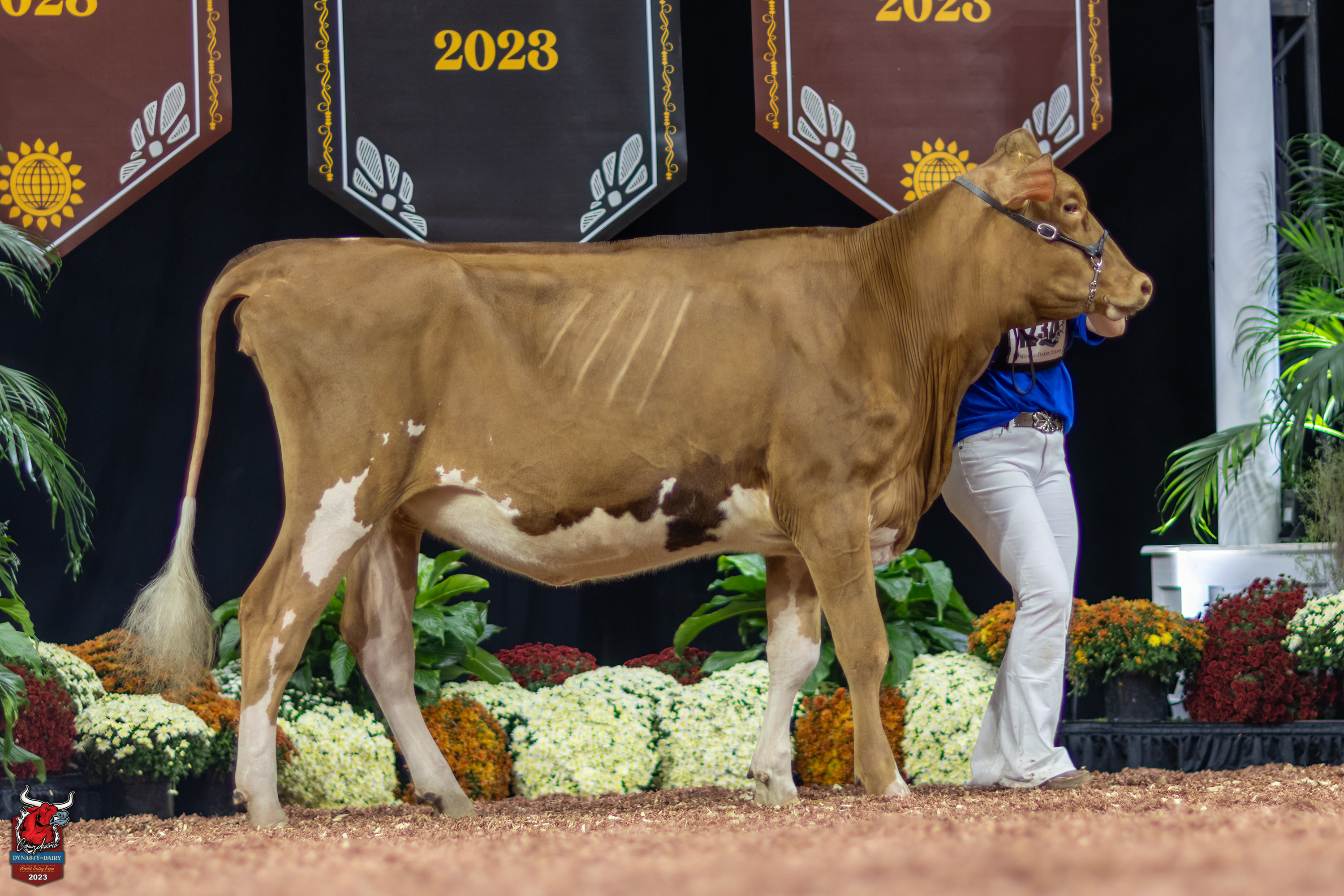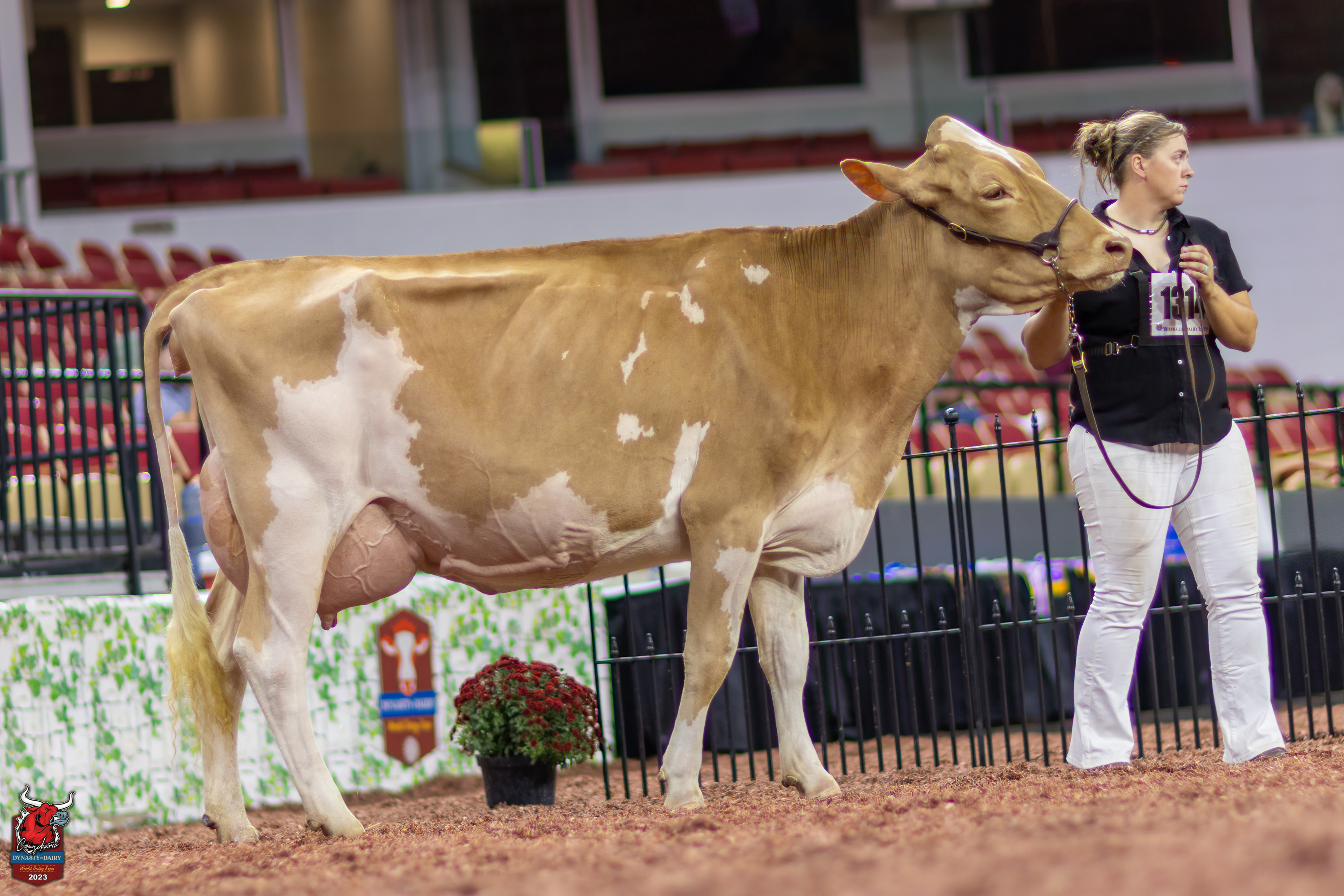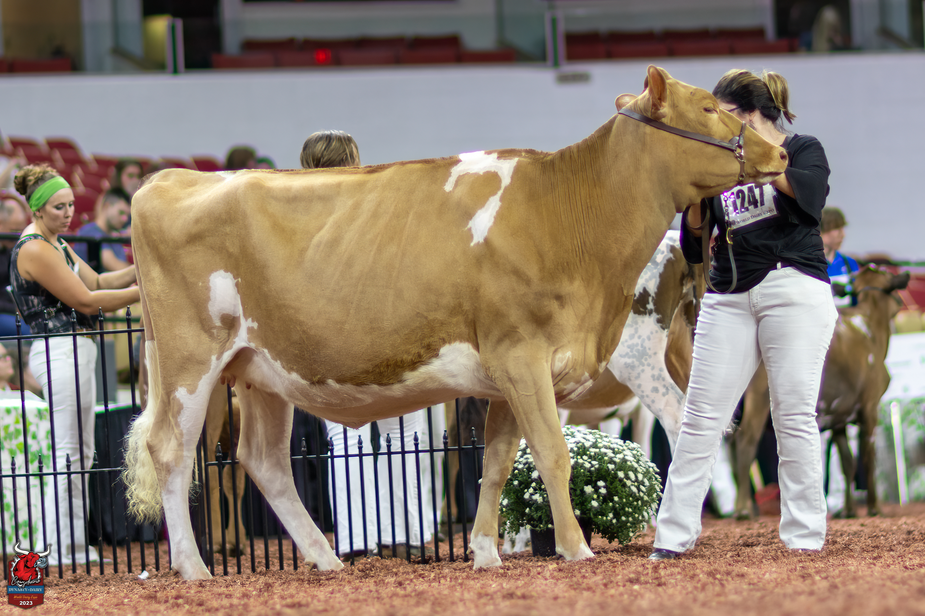 Hartdale Freedom Curiosity 1st place Four Year Old World Dairy Expo International Guernsey Show – 2023 Springhill