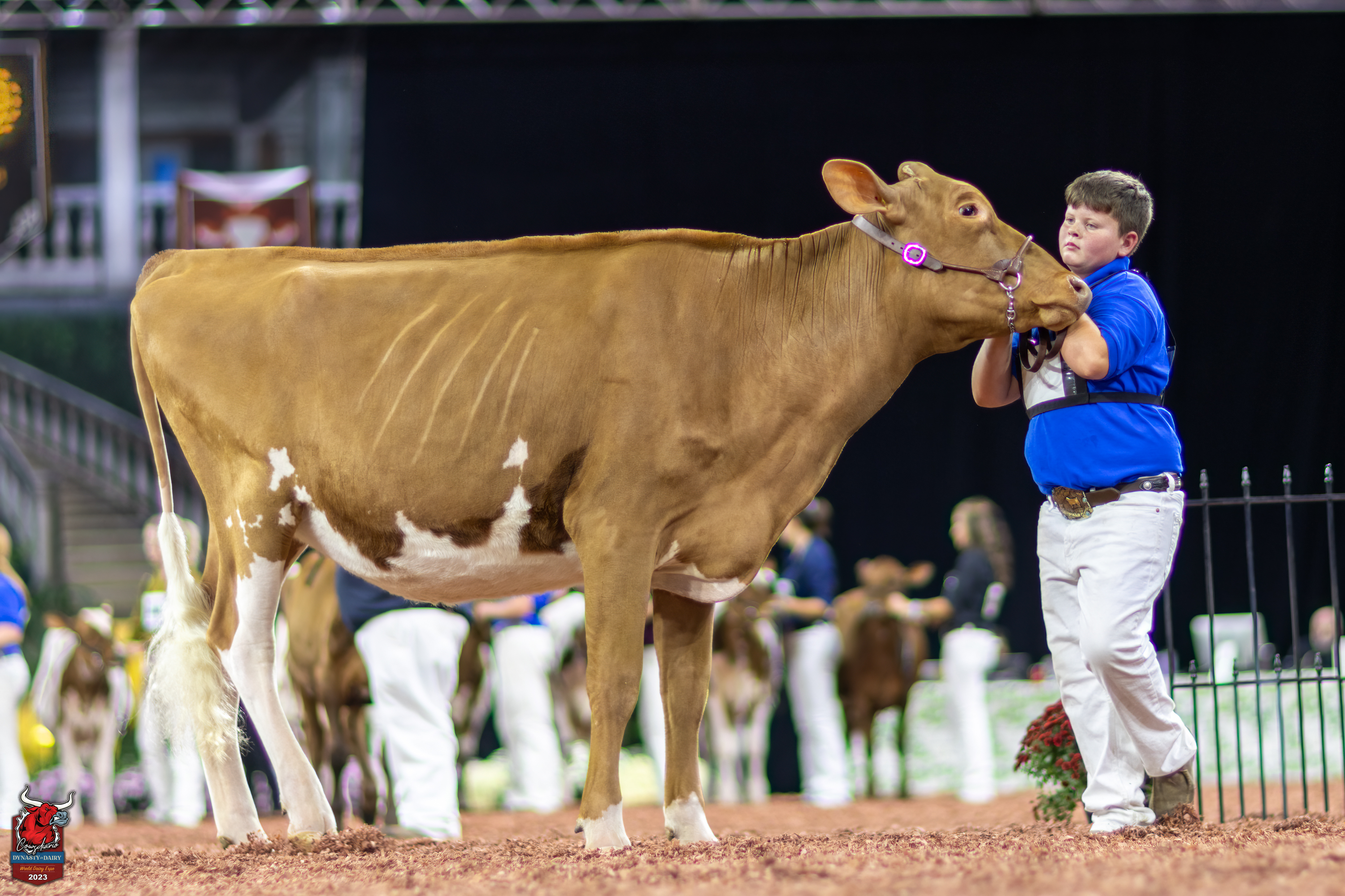 Hickman Valleys S Blakely Grand Champion of the Junior Show World Dairy Expo International Guernsey Show – 2023 Brittany Taylor, Grace Schuler And Laylaa Schuler