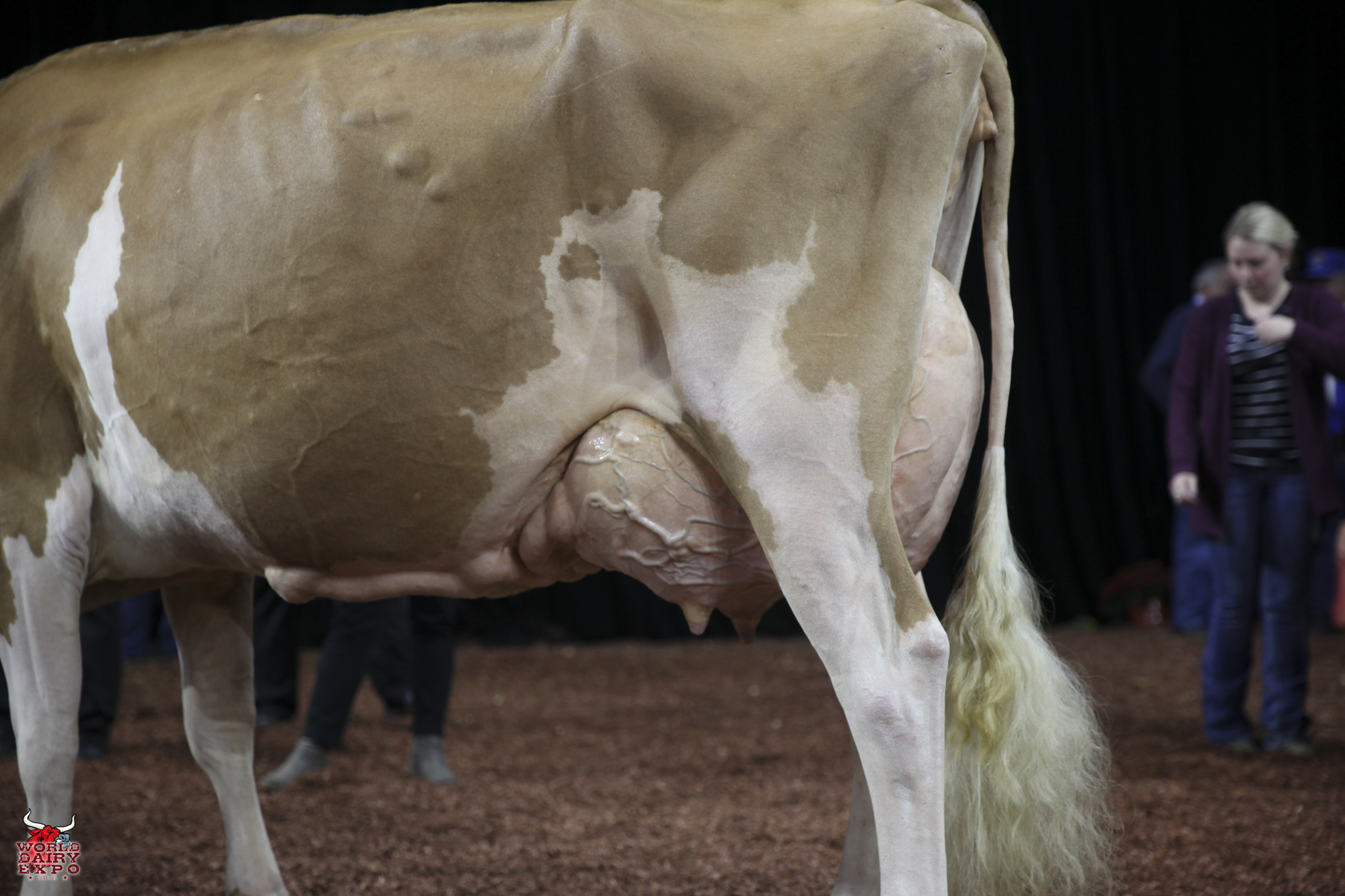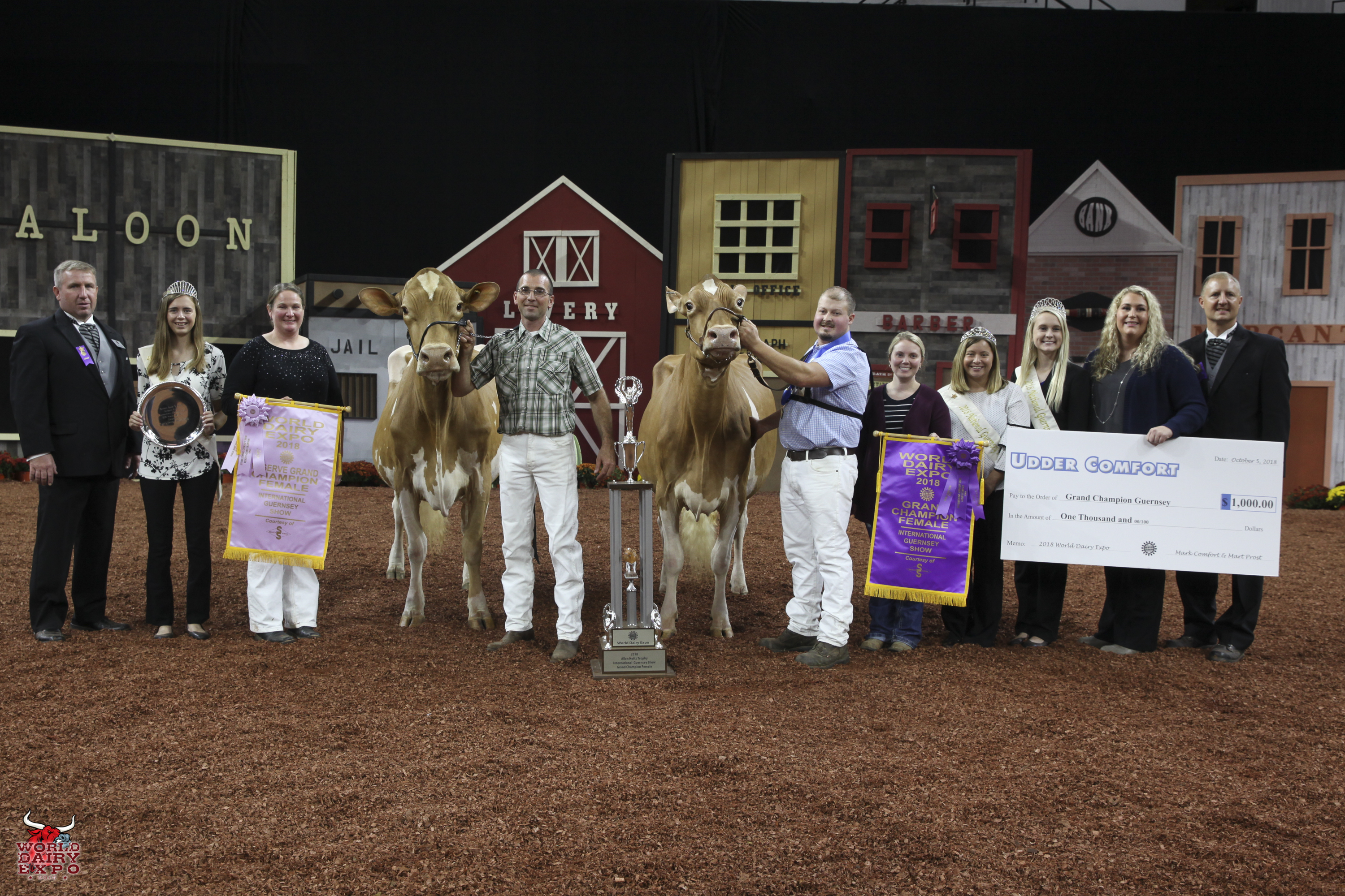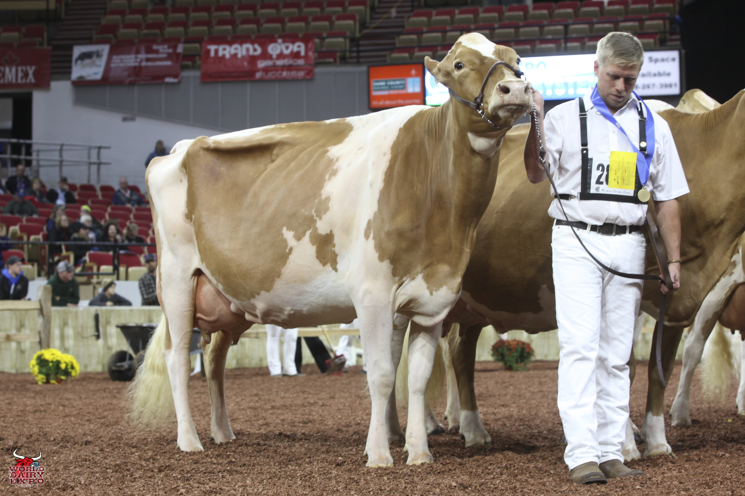 Willow Brook Labron Toni took home two Champion titles at the International Guernsey Show. Owned by Jake Booher, West Middlesex, Pa., Toni’s first trip across the colored shavings on October 5 was when she rose to the top of the Five-Year-Old Cow Class on her way to being named Senior and Grand Champion Female. Toni was presented with the $1,000 Udder Comfort Grand Champion Cash Award and the Allen Hetts Grand Champion Trophy. First in the Six-Year-Old Cow Class, Reserve Senior and Reserve Grand Champion of the International Guernsey Show was Hi Guern View Dancing Diva-ET, exhibited by Brian and Kristi Dinderman, Orangeville, Ill..