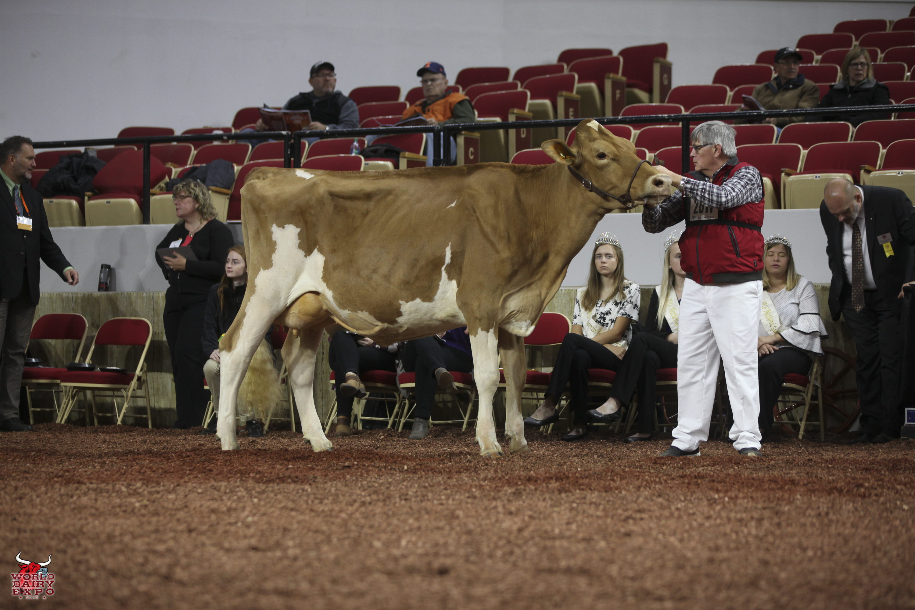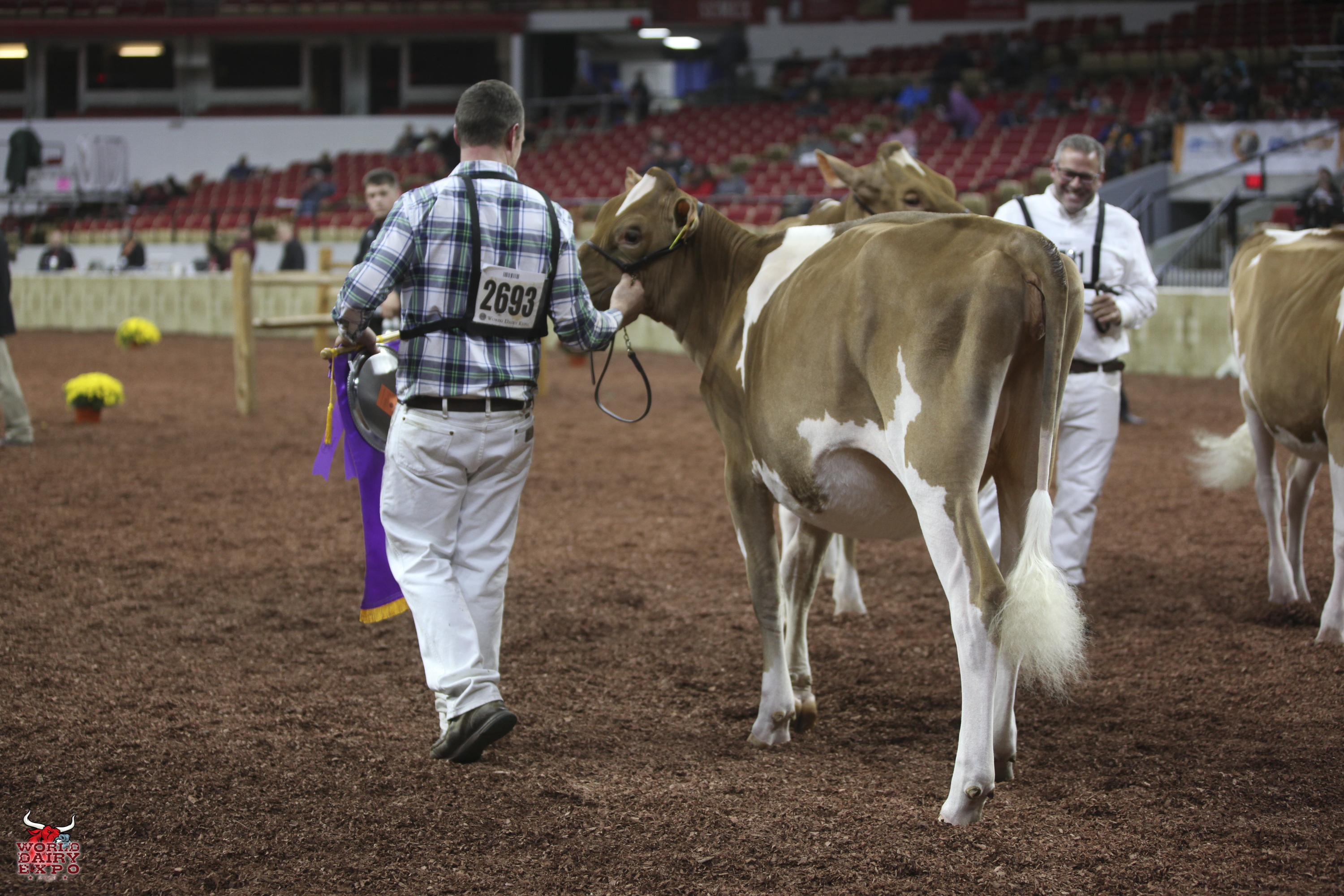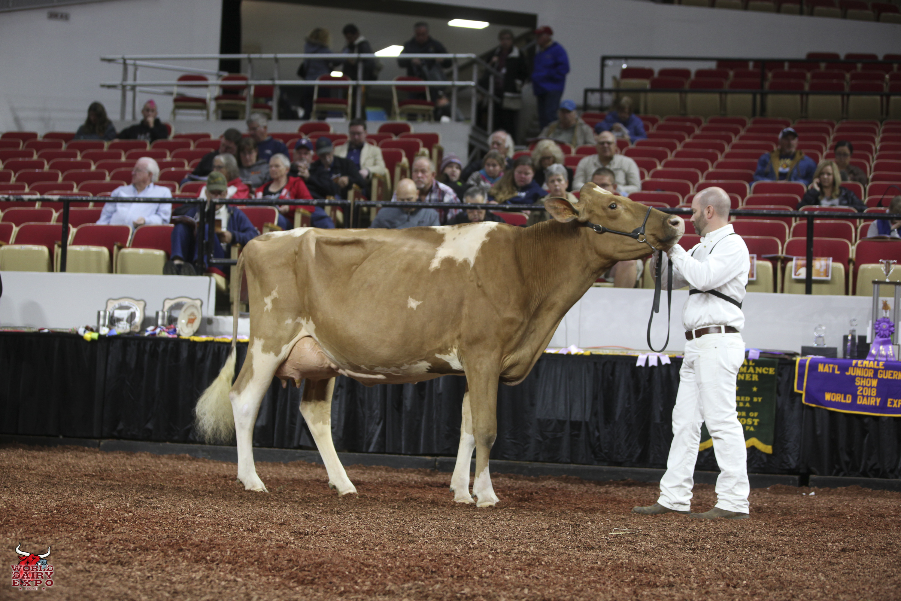 Springhill Jokes Finale-ETV was the winning Fall Heifer Calf and Junior Champion of the International Guernsey Show and is owned by Springhill of Big Prairie, Ohio. Knapps Pie Time To Dance-ETV, exhibited by Austin and Landen Knapp of Epworth, Iowa, was the winning Winter Heifer Calf and Reserve Junior Champion.