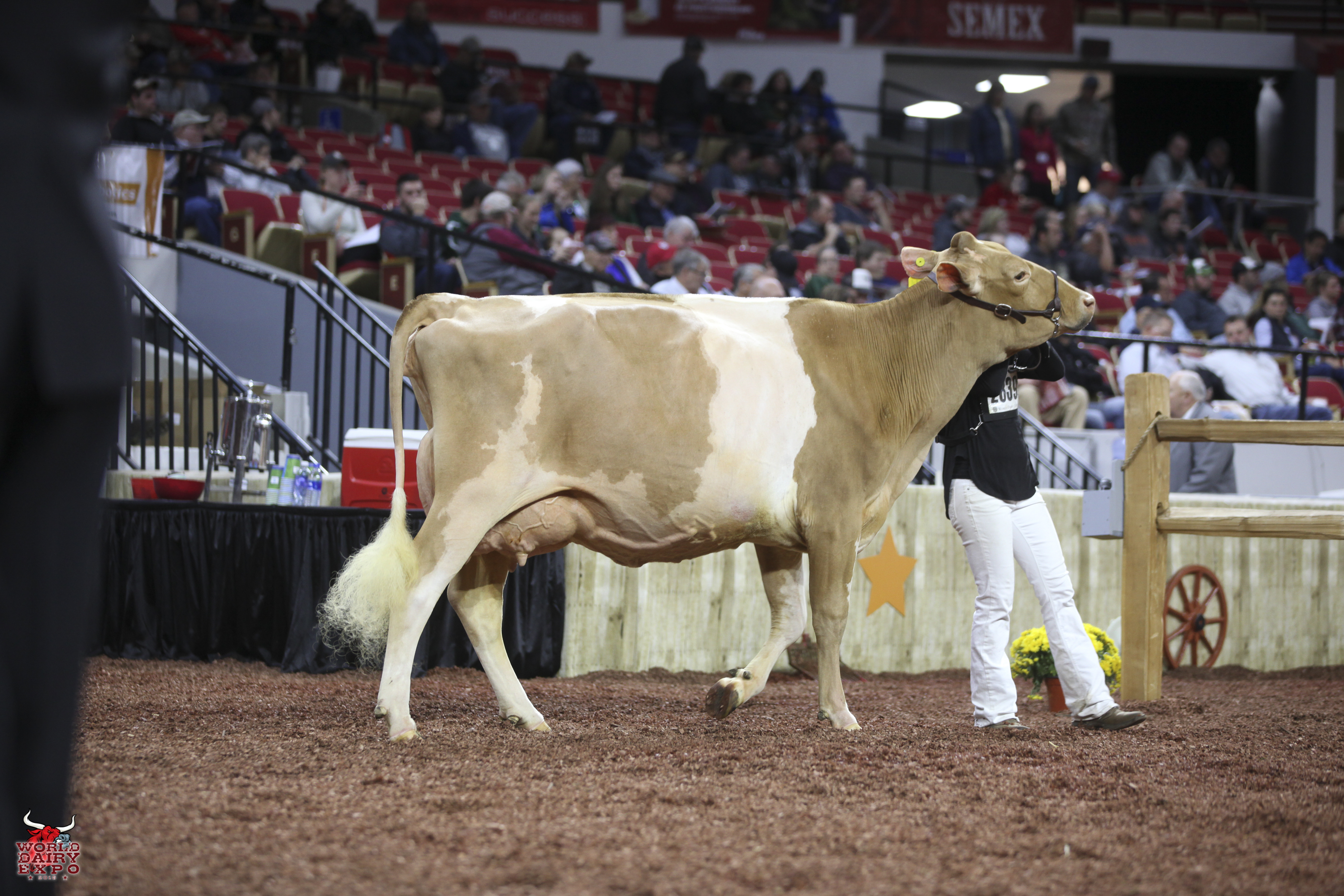 Meadowridge Fizz Sparkle and Wildweed Primero Lightning were named the Junior Champion and Reserve Junior Champion of the International Junior Jersey Show, respectively. Sparkle, the winning Winter Yearling Heifer, is owned by Cole Kruse and Gene Henderson of Dyersville, Iowa. Michael and Megan Moede and Katie Ledvica of Algoma, Wis., are the owners of Lightning, the winning Fall Yearling Heifer.