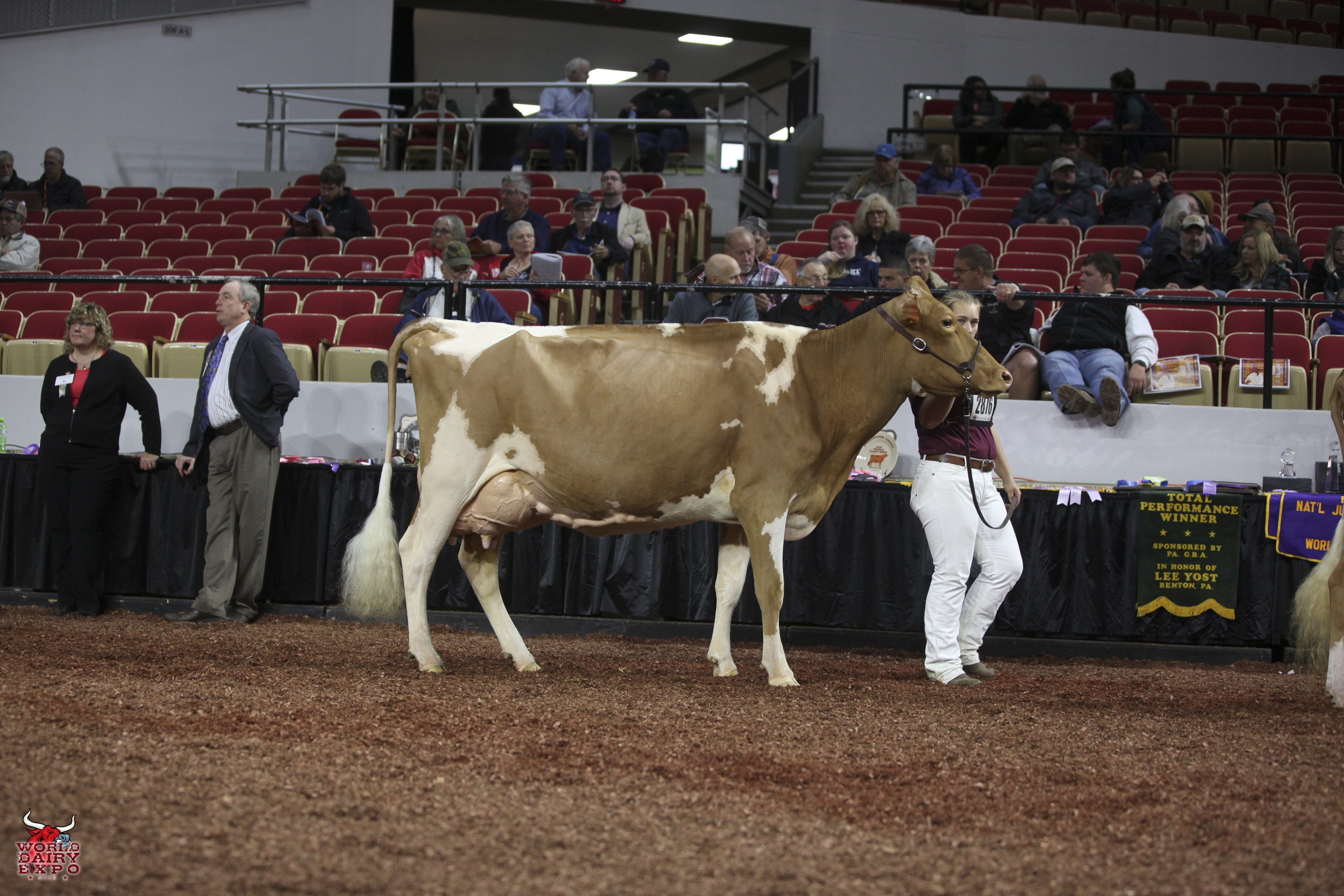 Intermediate Champion of the International Jersey Show was Julie-Ann Tequila Asia, the winning Yearling Heifer in Milk, and was shown by Analise Stover of Carlisle, Pa. Fire-Lake Premier Meg, shown by Joshua, Hannah, Nicole and Rebecca Sanders of Hilmar, Cali., was selected as Reserve Intermediate Champion.