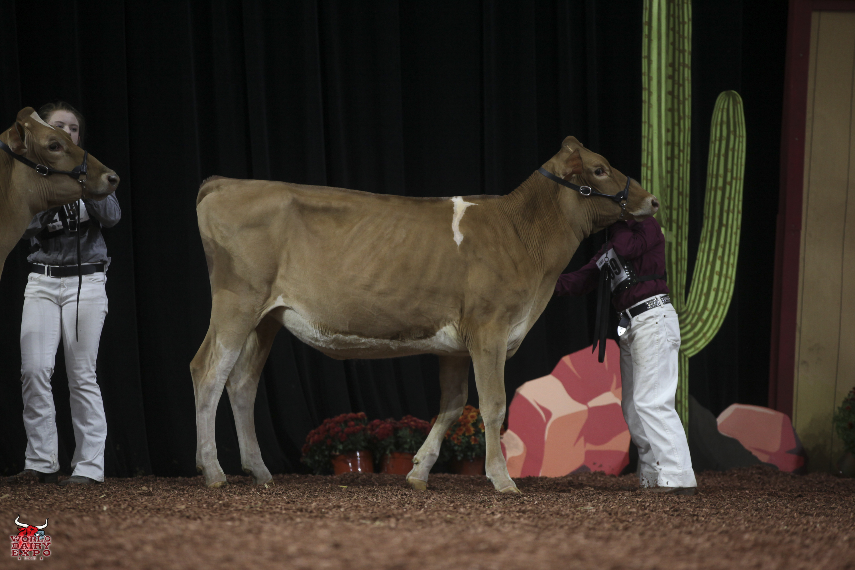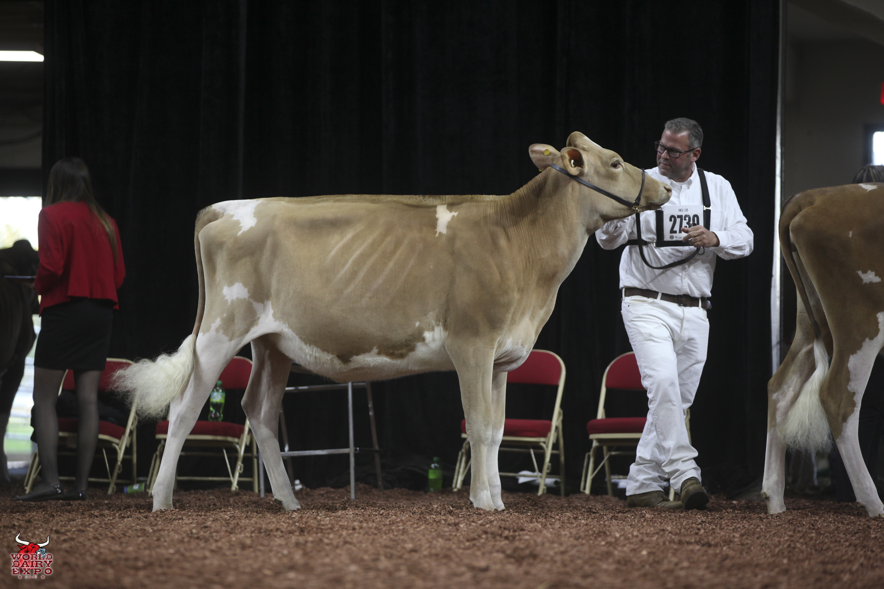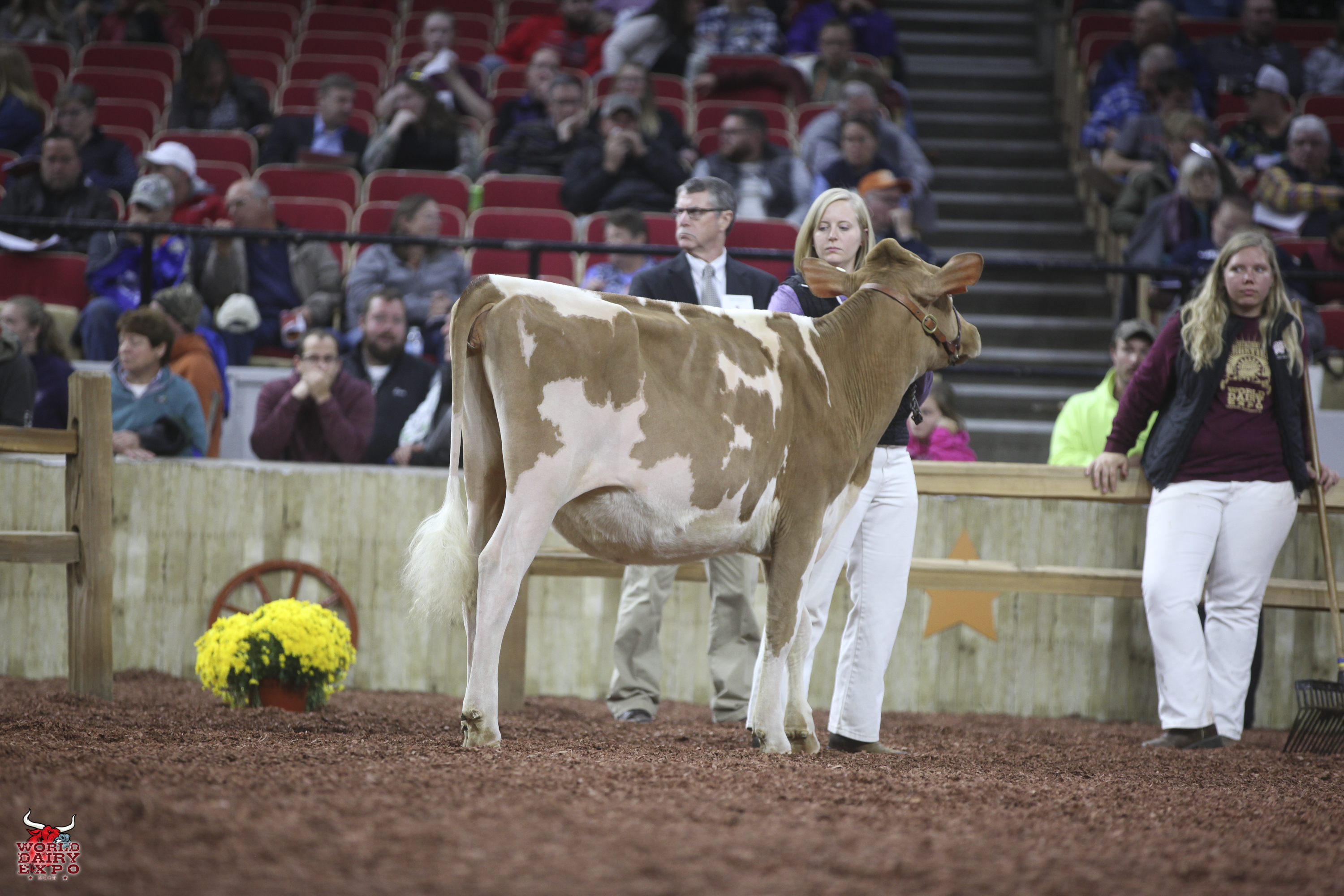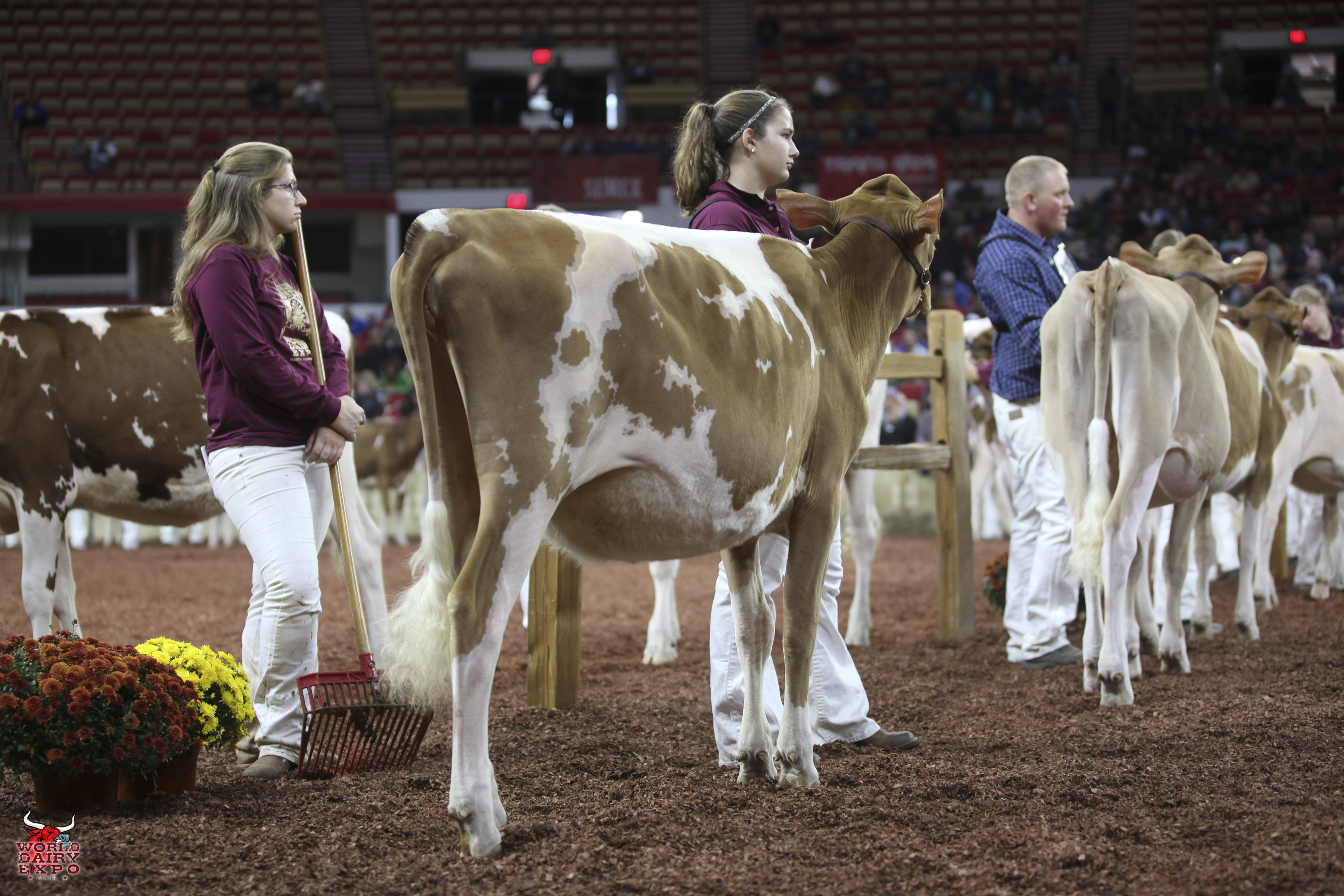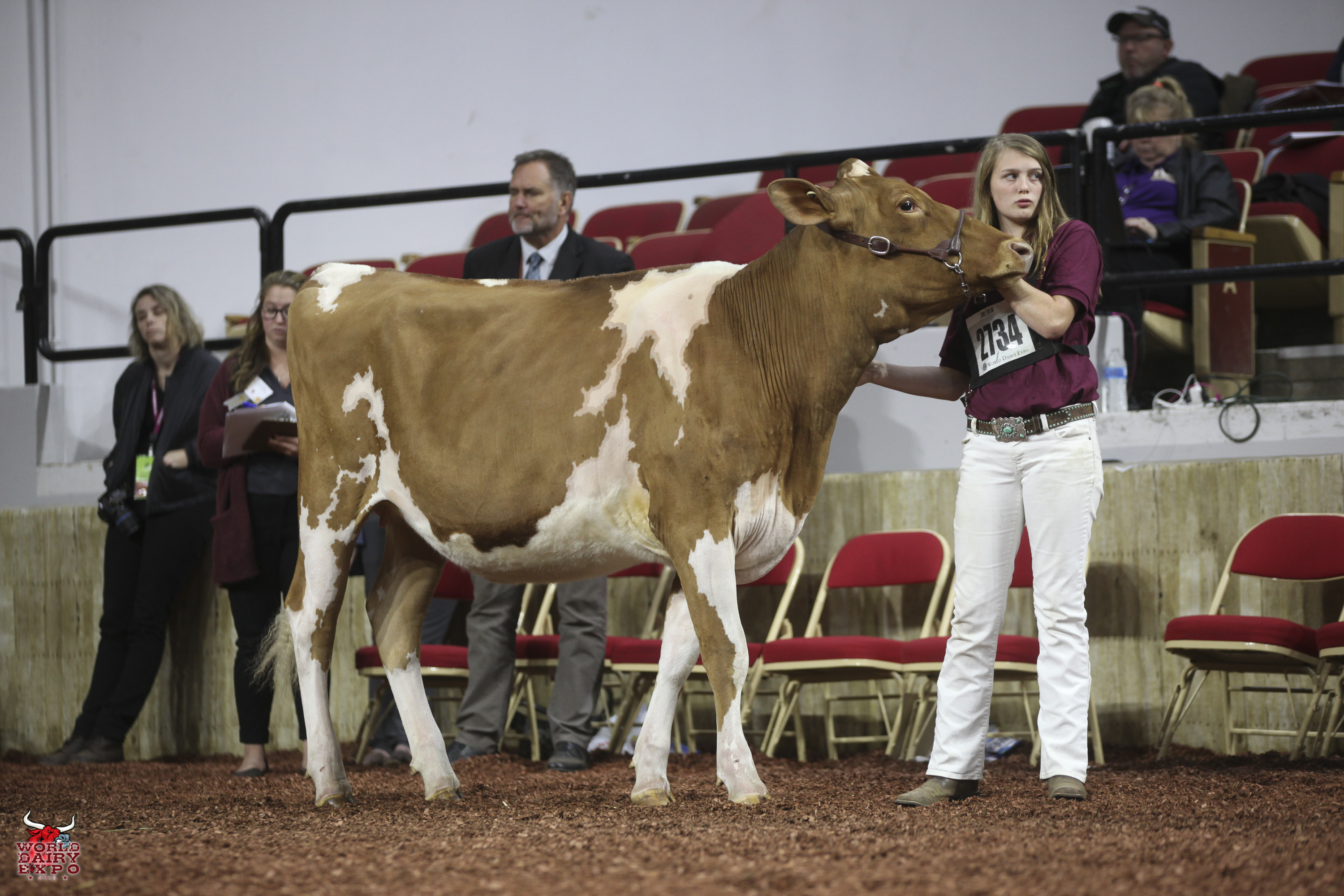 Rounding out the list of champion cows in the International Guernsey Show are Intermediate Champion Female, Hi Guern View Diva Designer, exhibited by Riley Zettle of Rock City, Ill., and Reserve Intermediate Champion, Warwick Manor Ty Carter, exhibited by Kaila, Karli and Kolby Stoltzfus, East Earl, Pa. As Intermediate Champion, Designer wins a free ovum pick-up, compliments of Vytelle LLC
