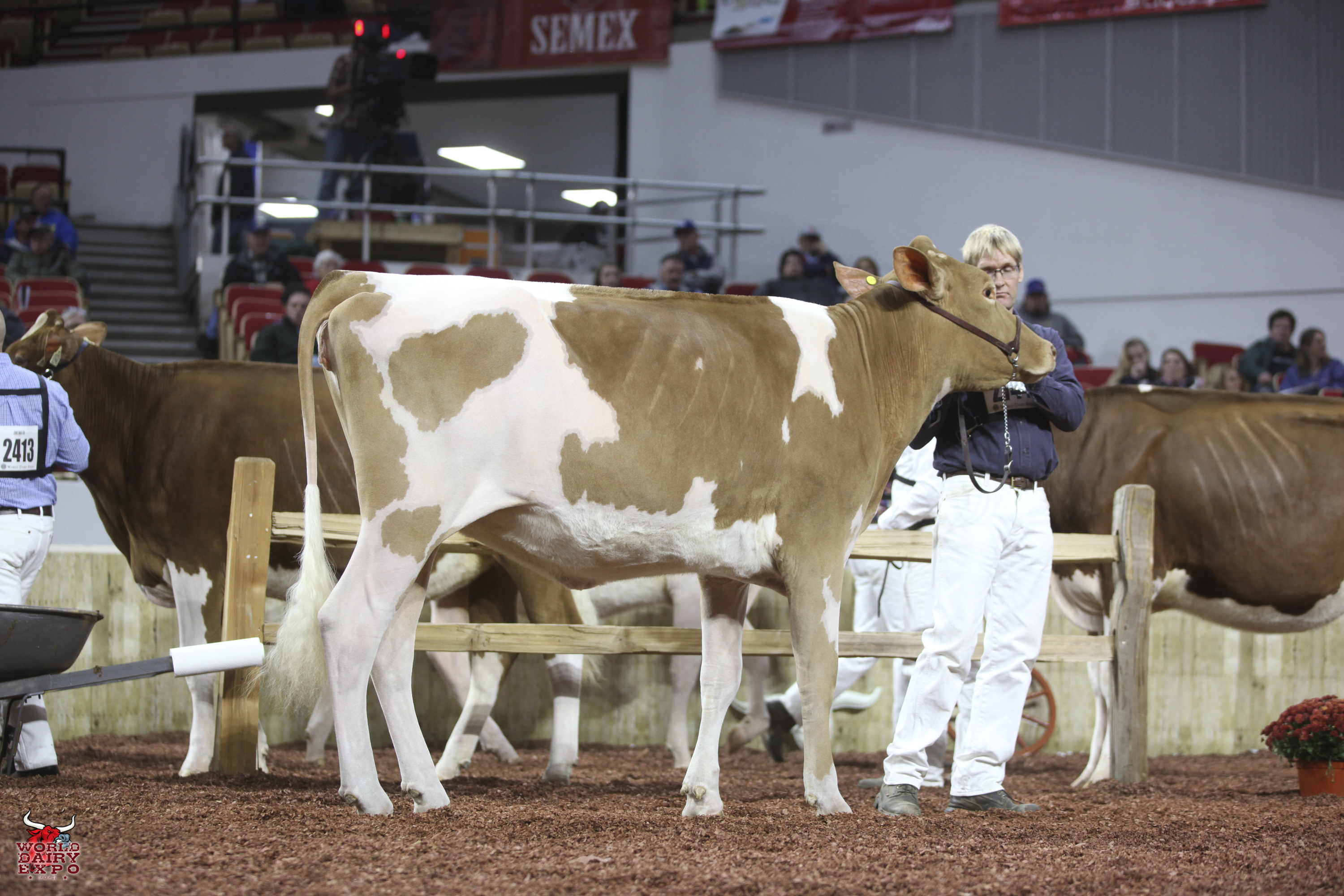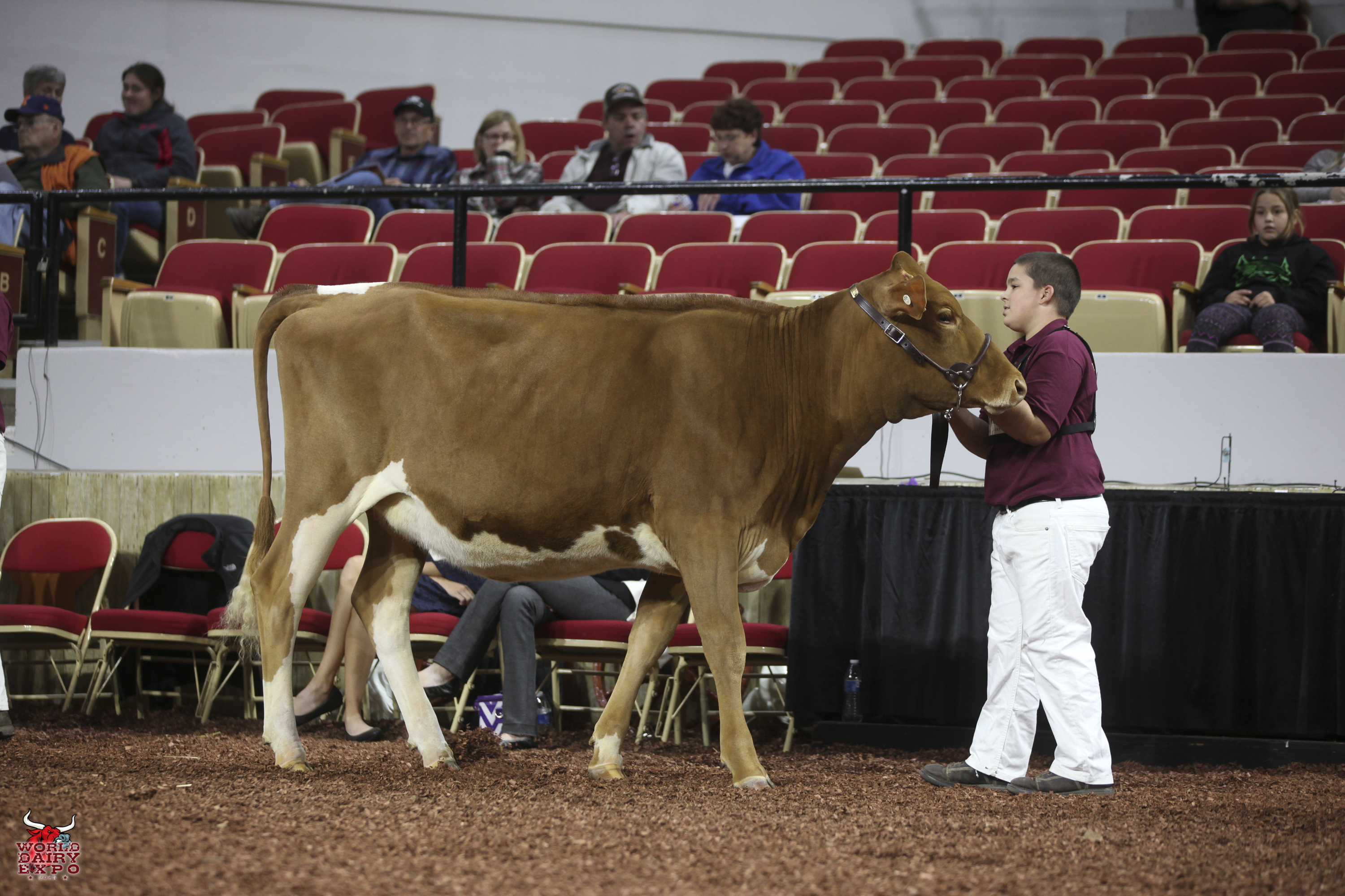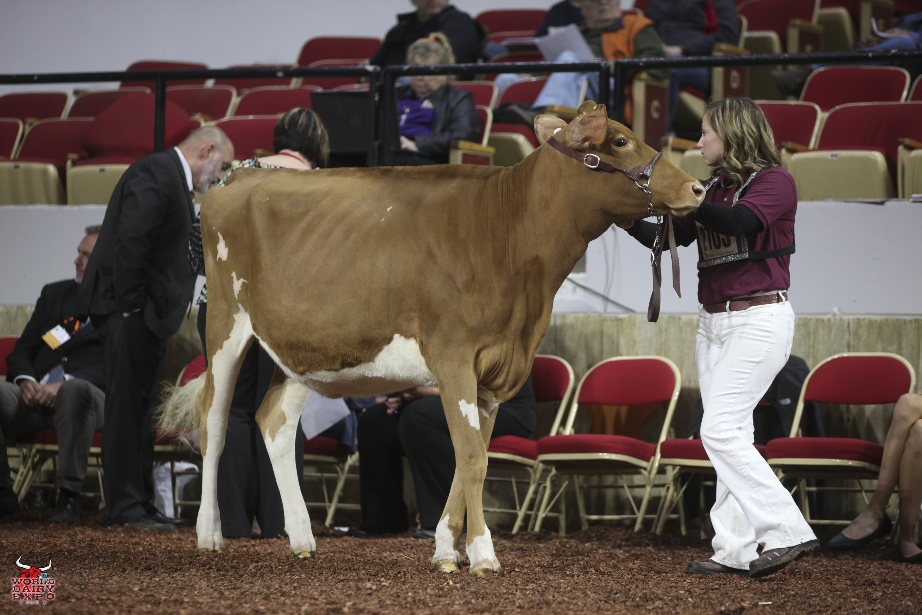Springhill Jokes Finale-ETV was the winning Fall Heifer Calf and Junior Champion of the International Guernsey Show and is owned by Springhill of Big Prairie, Ohio. Knapps Pie Time To Dance-ETV, exhibited by Austin and Landen Knapp of Epworth, Iowa, was the winning Winter Heifer Calf and Reserve Junior Champion.