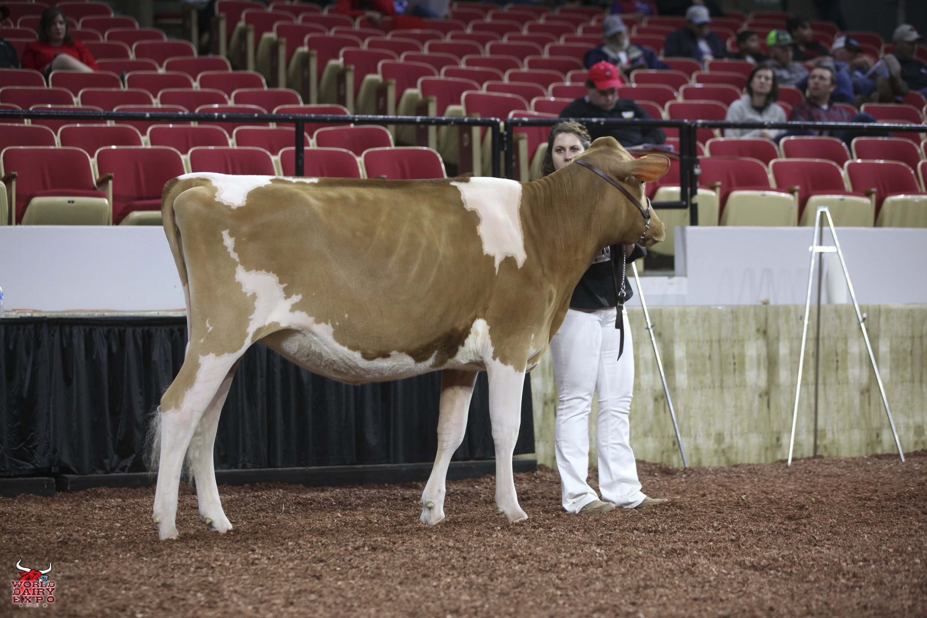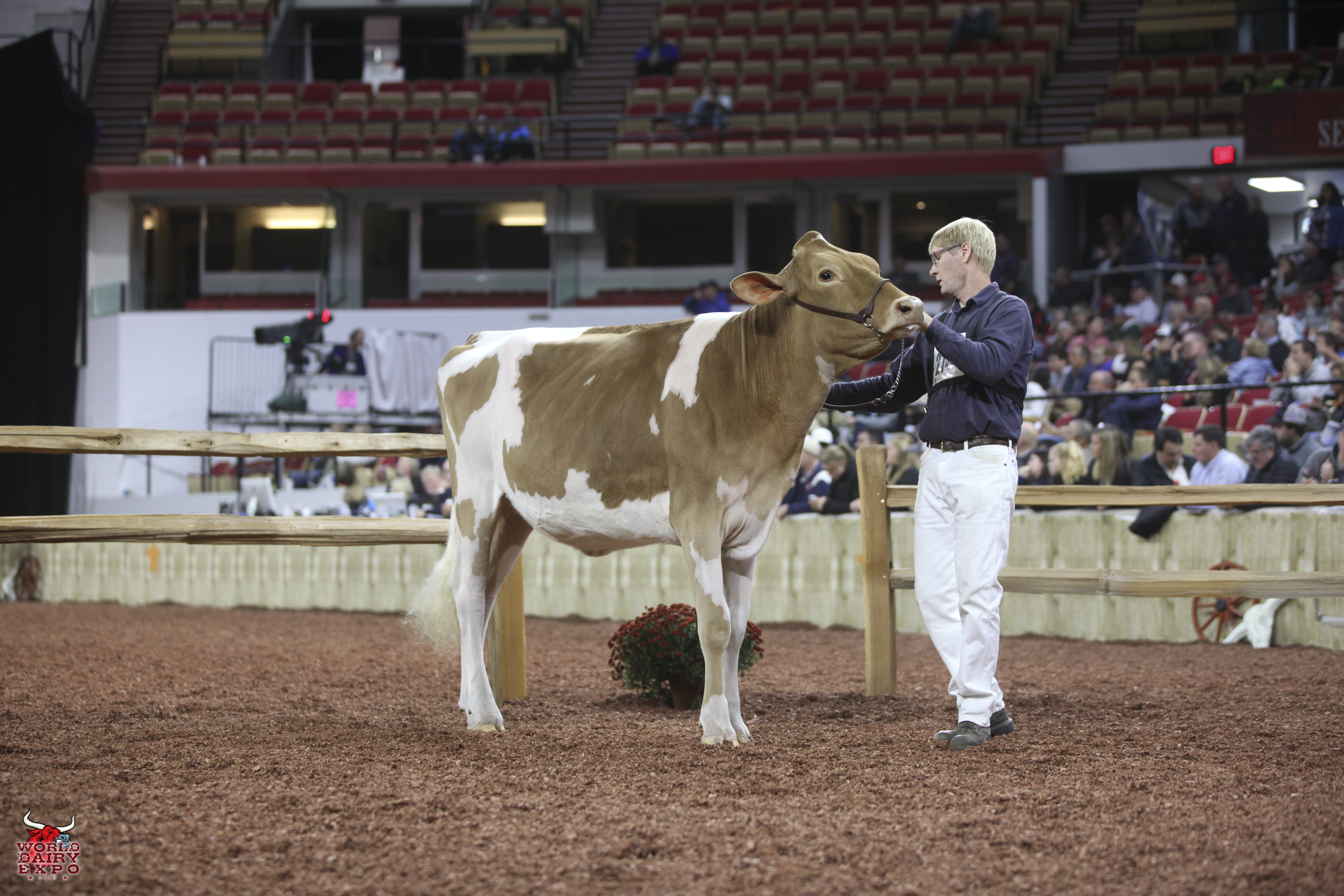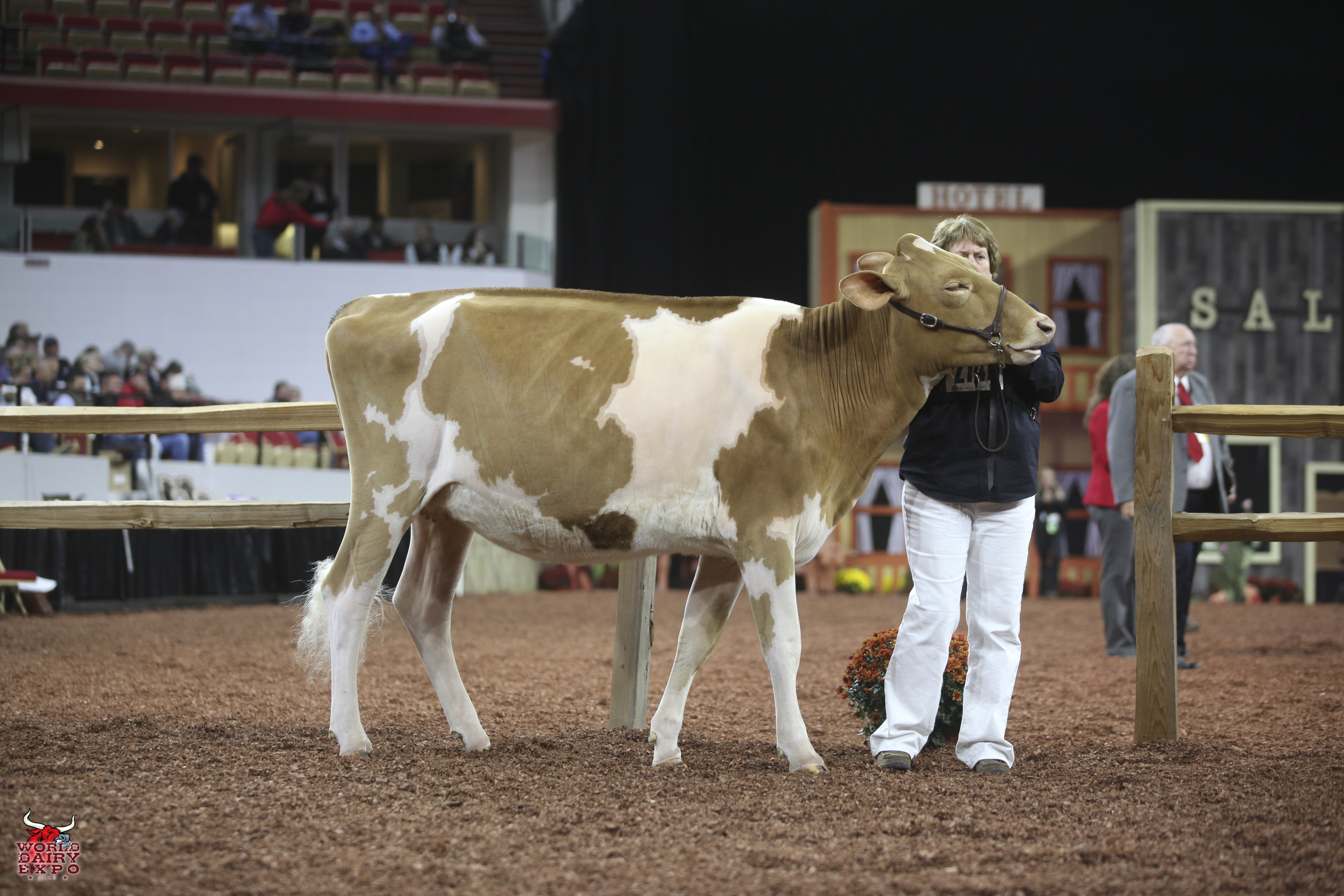 Willow Brook Labron Toni took home two Champion titles at the International Guernsey Show. Owned by Jake Booher, West Middlesex, Pa., Toni’s first trip across the colored shavings on October 5 was when she rose to the top of the Five-Year-Old Cow Class on her way to being named Senior and Grand Champion Female. Toni was presented with the $1,000 Udder Comfort Grand Champion Cash Award and the Allen Hetts Grand Champion Trophy. First in the Six-Year-Old Cow Class, Reserve Senior and Reserve Grand Champion of the International Guernsey Show was Hi Guern View Dancing Diva-ET, exhibited by Brian and Kristi Dinderman, Orangeville, Ill..