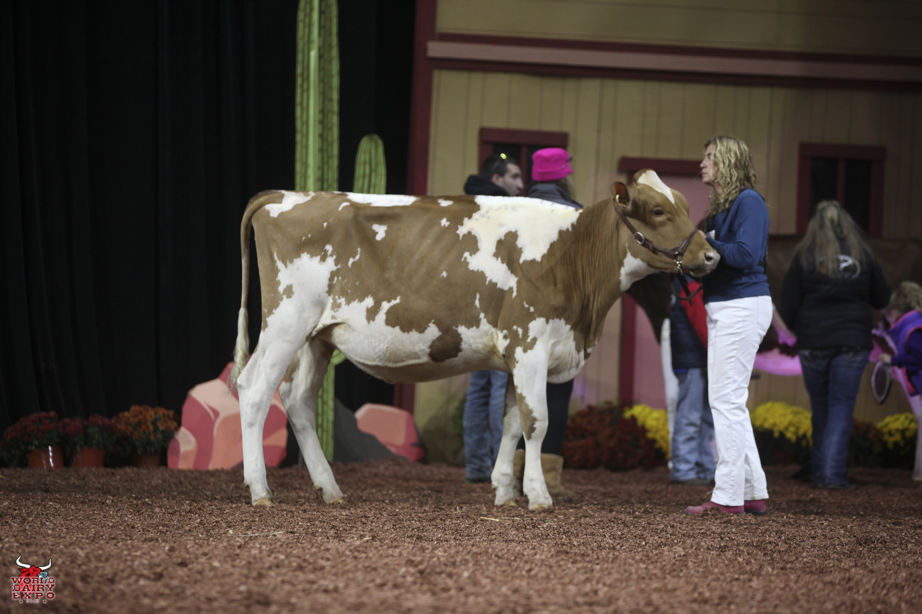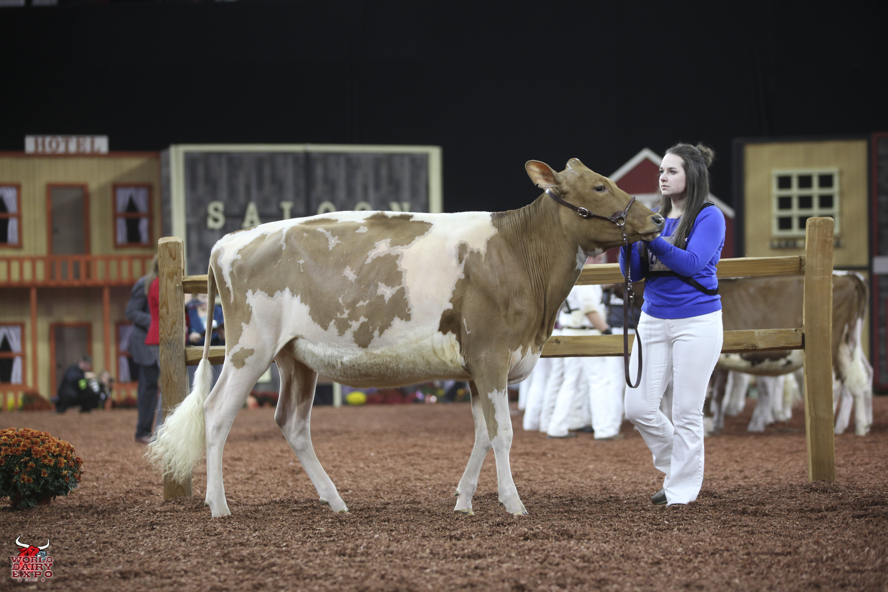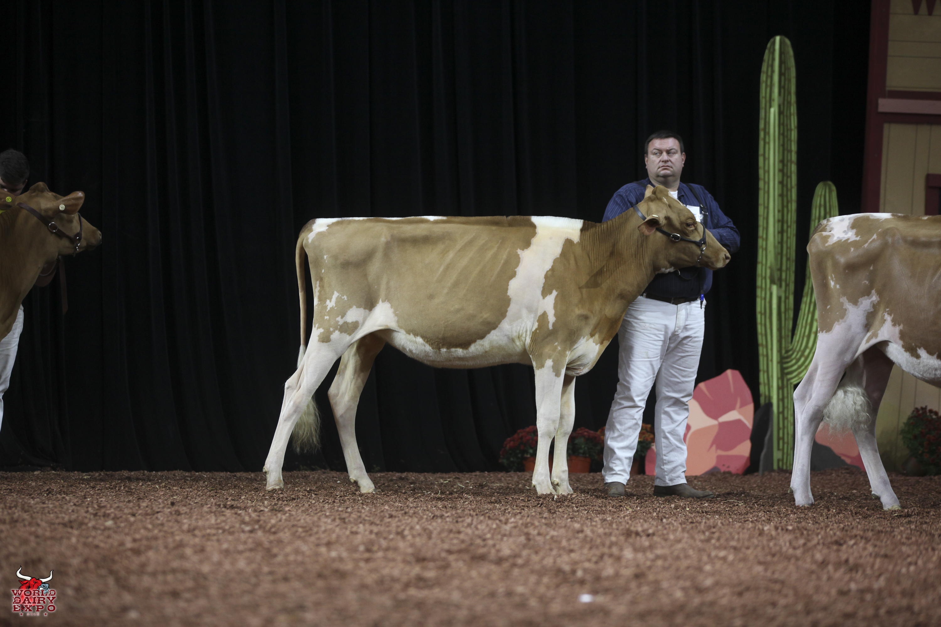 Willow Brook Labron Toni took home two Champion titles at the International Guernsey Show. Owned by Jake Booher, West Middlesex, Pa., Toni’s first trip across the colored shavings on October 5 was when she rose to the top of the Five-Year-Old Cow Class on her way to being named Senior and Grand Champion Female. Toni was presented with the $1,000 Udder Comfort Grand Champion Cash Award and the Allen Hetts Grand Champion Trophy. First in the Six-Year-Old Cow Class, Reserve Senior and Reserve Grand Champion of the International Guernsey Show was Hi Guern View Dancing Diva-ET, exhibited by Brian and Kristi Dinderman, Orangeville, Ill..