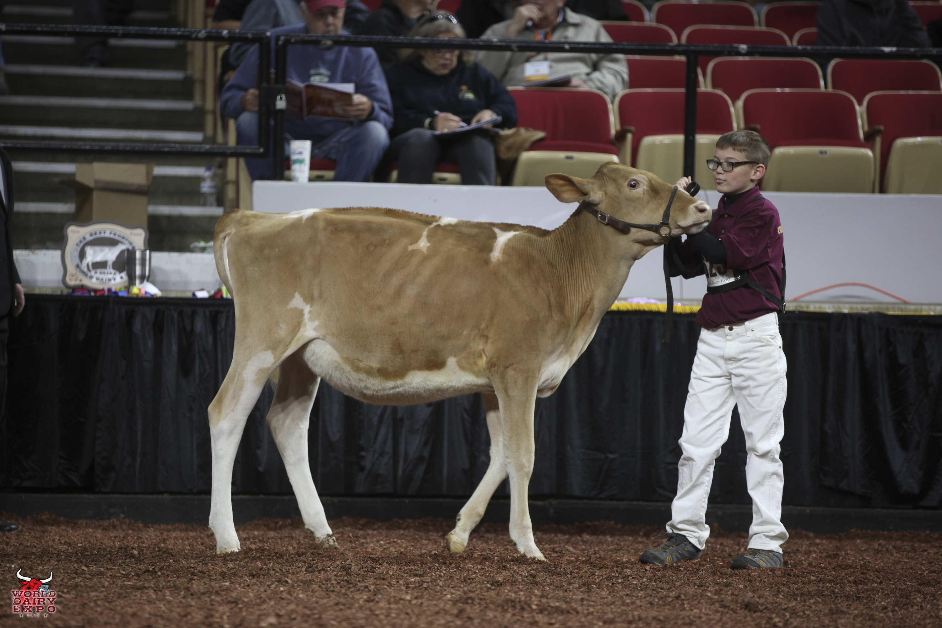 Springhill Jokes Finale-ETV was the winning Fall Heifer Calf and Junior Champion of the International Guernsey Show and is owned by Springhill of Big Prairie, Ohio. Knapps Pie Time To Dance-ETV, exhibited by Austin and Landen Knapp of Epworth, Iowa, was the winning Winter Heifer Calf and Reserve Junior Champion.