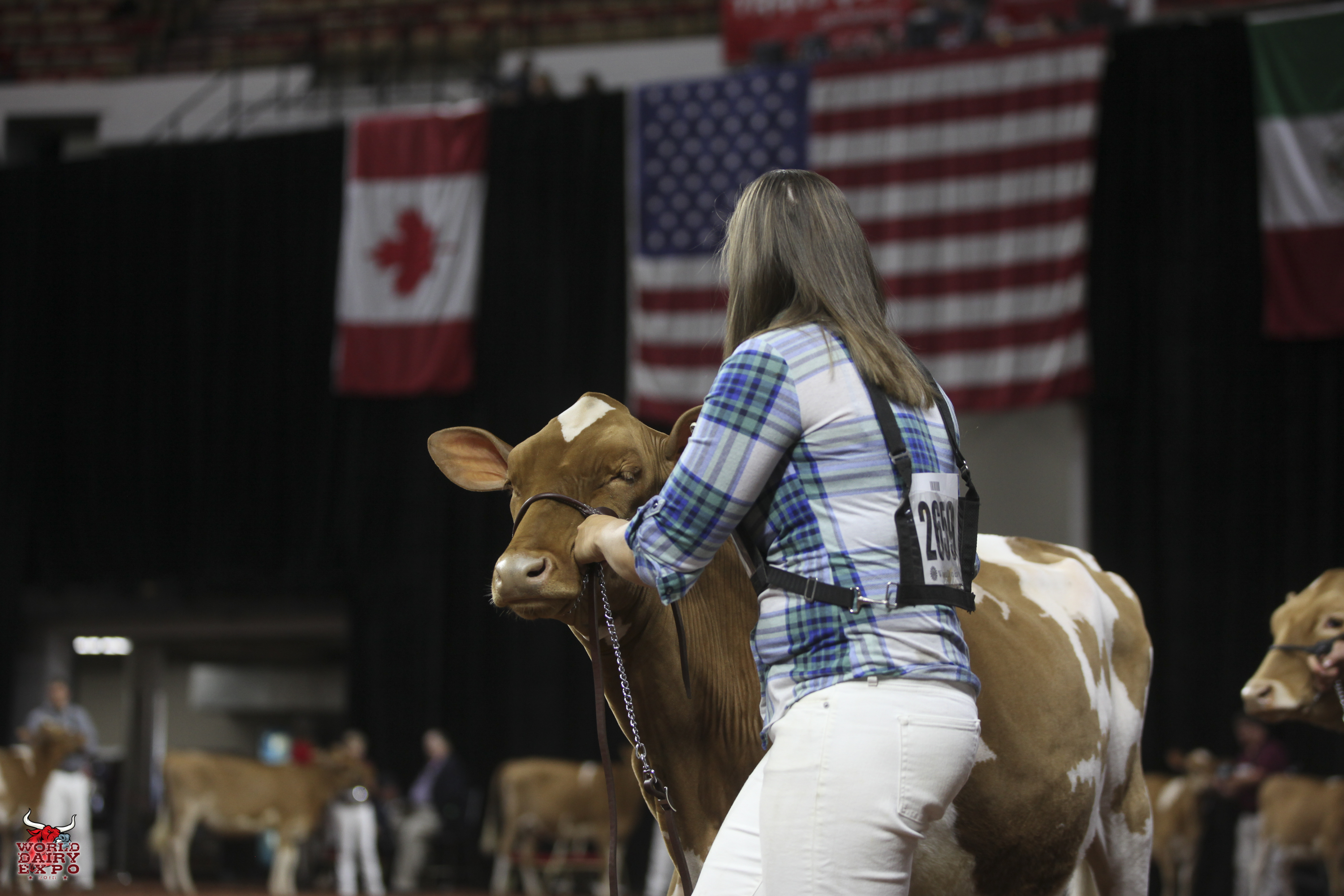 Rounding out the list of champion cows in the International Guernsey Show are Intermediate Champion Female, Hi Guern View Diva Designer, exhibited by Riley Zettle of Rock City, Ill., and Reserve Intermediate Champion, Warwick Manor Ty Carter, exhibited by Kaila, Karli and Kolby Stoltzfus, East Earl, Pa. As Intermediate Champion, Designer wins a free ovum pick-up, compliments of Vytelle LLC