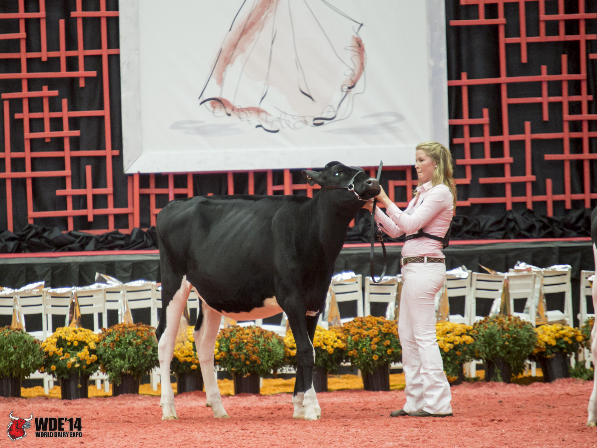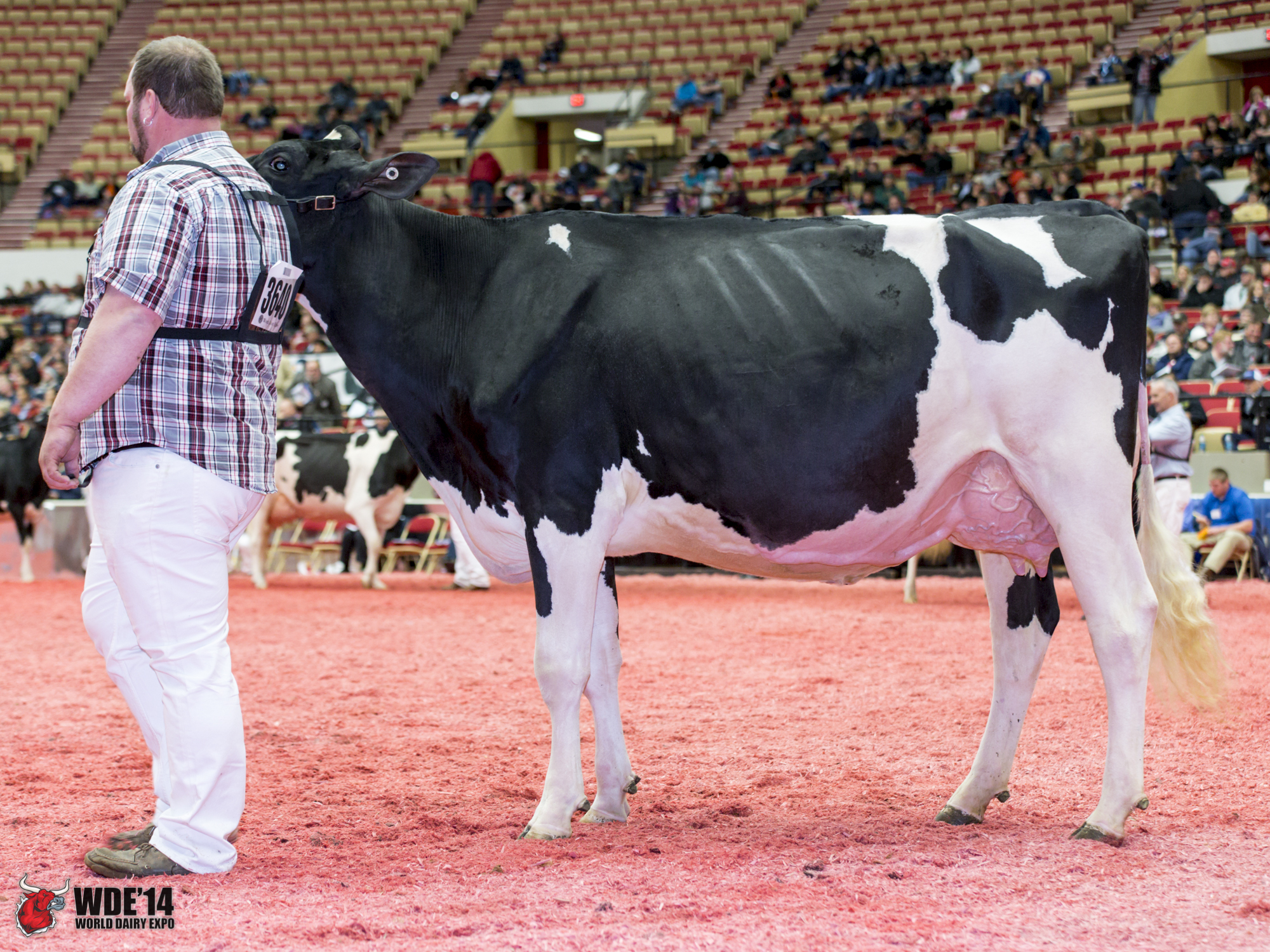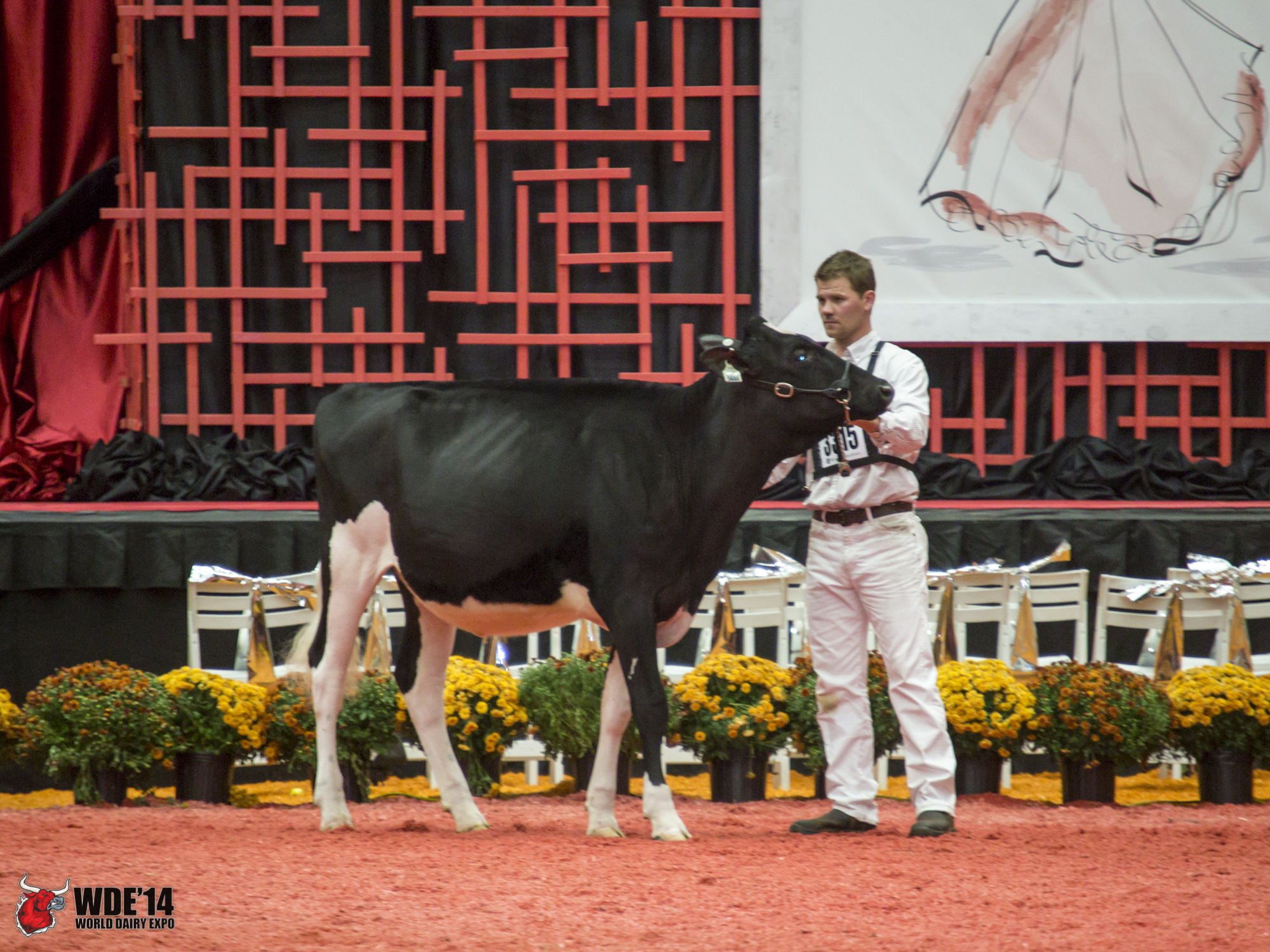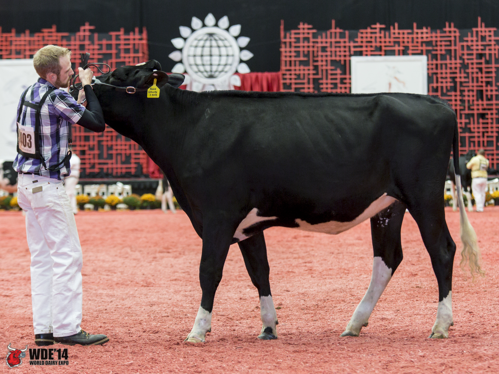 Junior Champion – Comestar Larion Goldwyn (Goldwyn), Jeffery Jet Butler & Lightening Ridge Holsteins, IL Reserve Junior Champion – Ashview-TG Atwood Lilly-ET (Atwood), Ted, Molly, & Tom Norling & Tony Galgowski, WI HM Junior Champion – Savage-Leigh Alex Lacey ET (Alexander), Miranda E Iager, MD