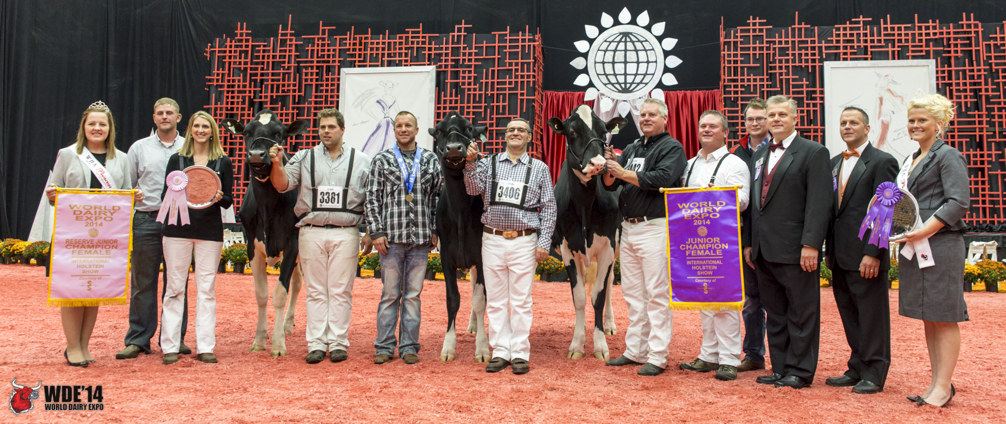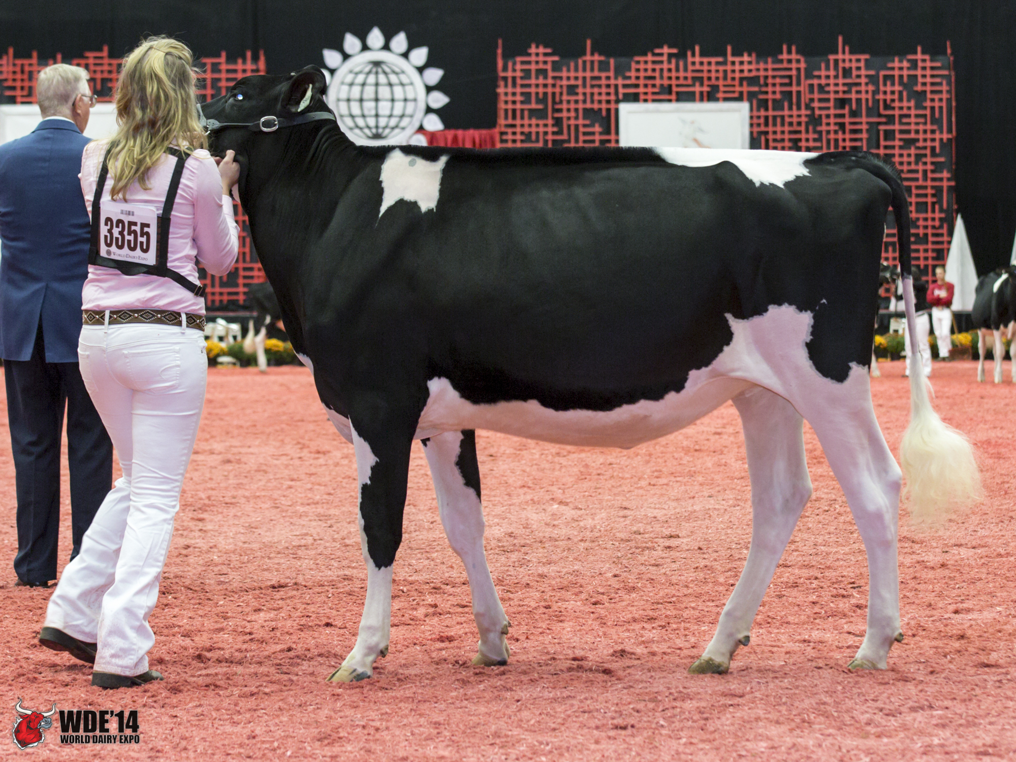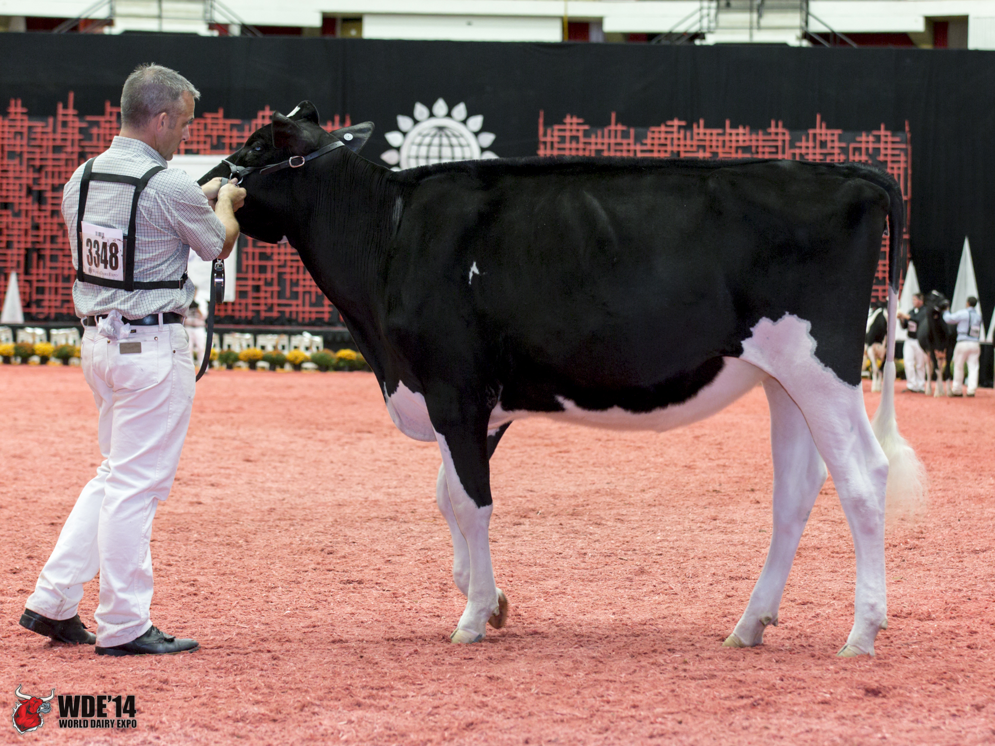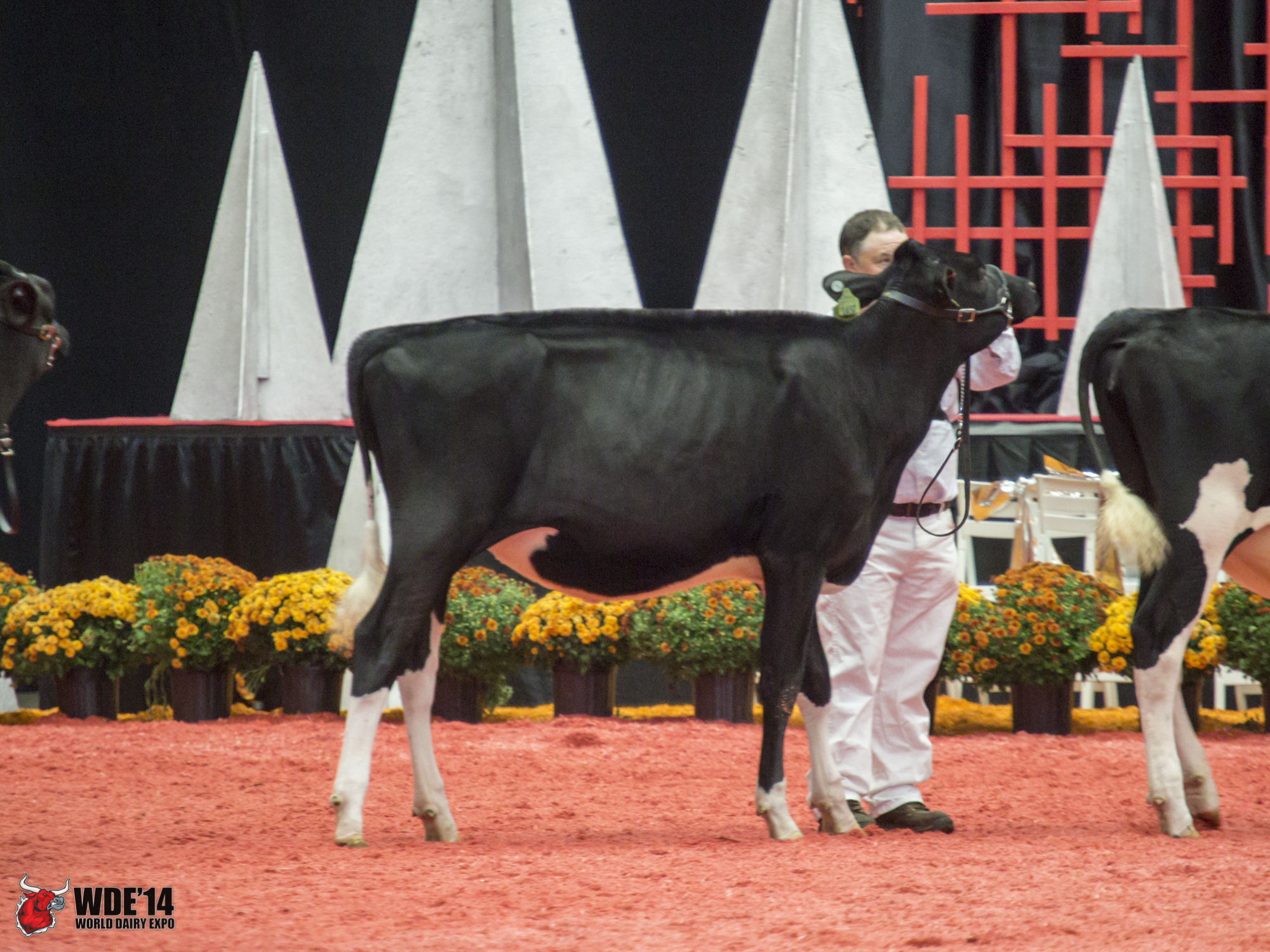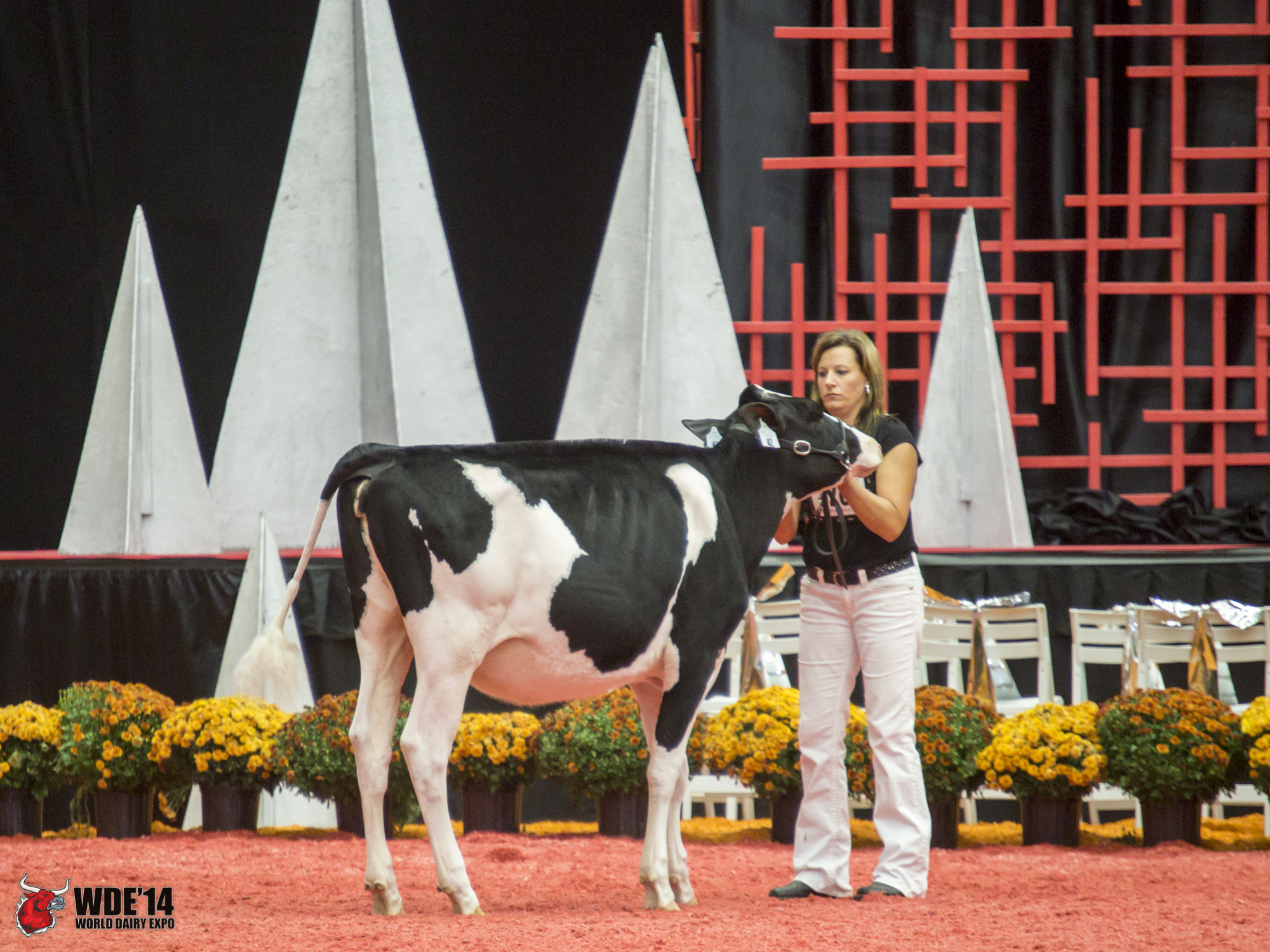 Junior Champion – Comestar Larion Goldwyn (Goldwyn), Jeffery Jet Butler & Lightening Ridge Holsteins, IL Reserve Junior Champion – Ashview-TG Atwood Lilly-ET (Atwood), Ted, Molly, & Tom Norling & Tony Galgowski, WI HM Junior Champion – Savage-Leigh Alex Lacey ET (Alexander), Miranda E Iager, MD