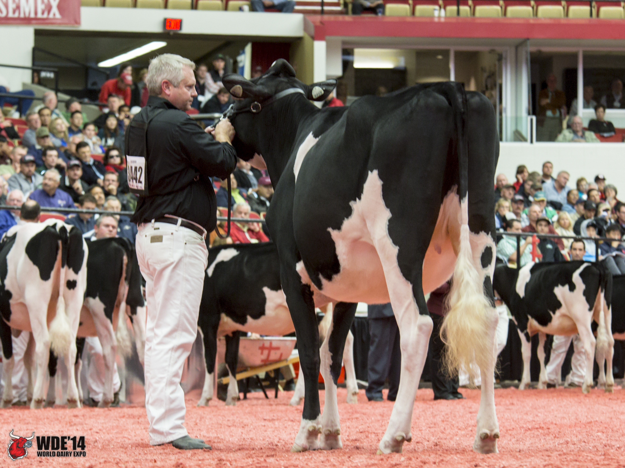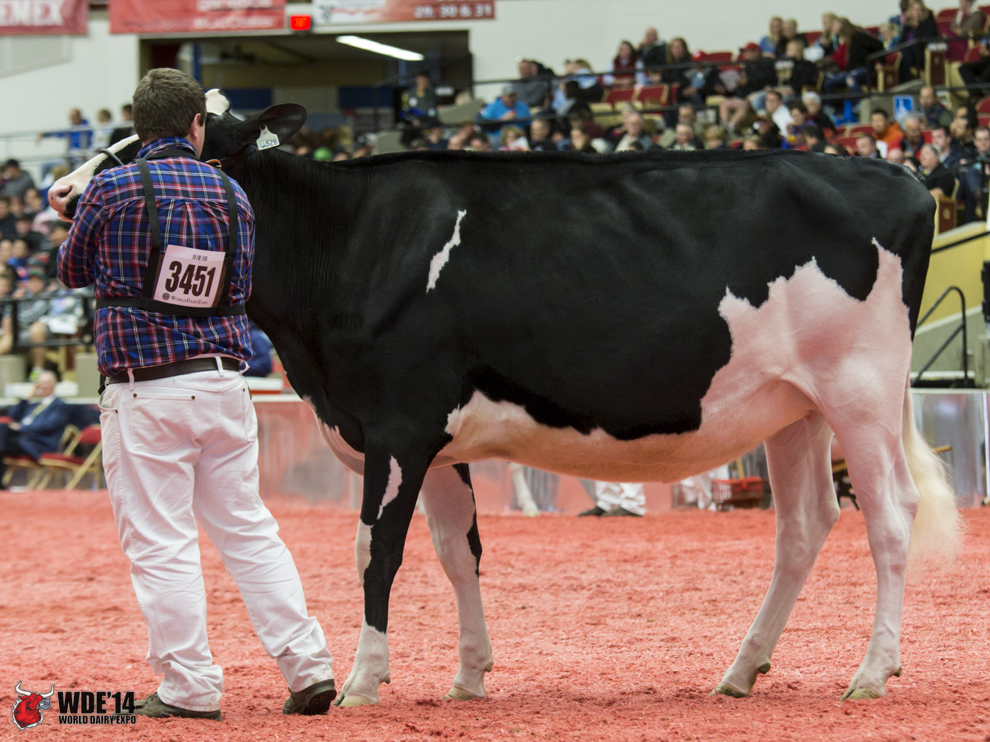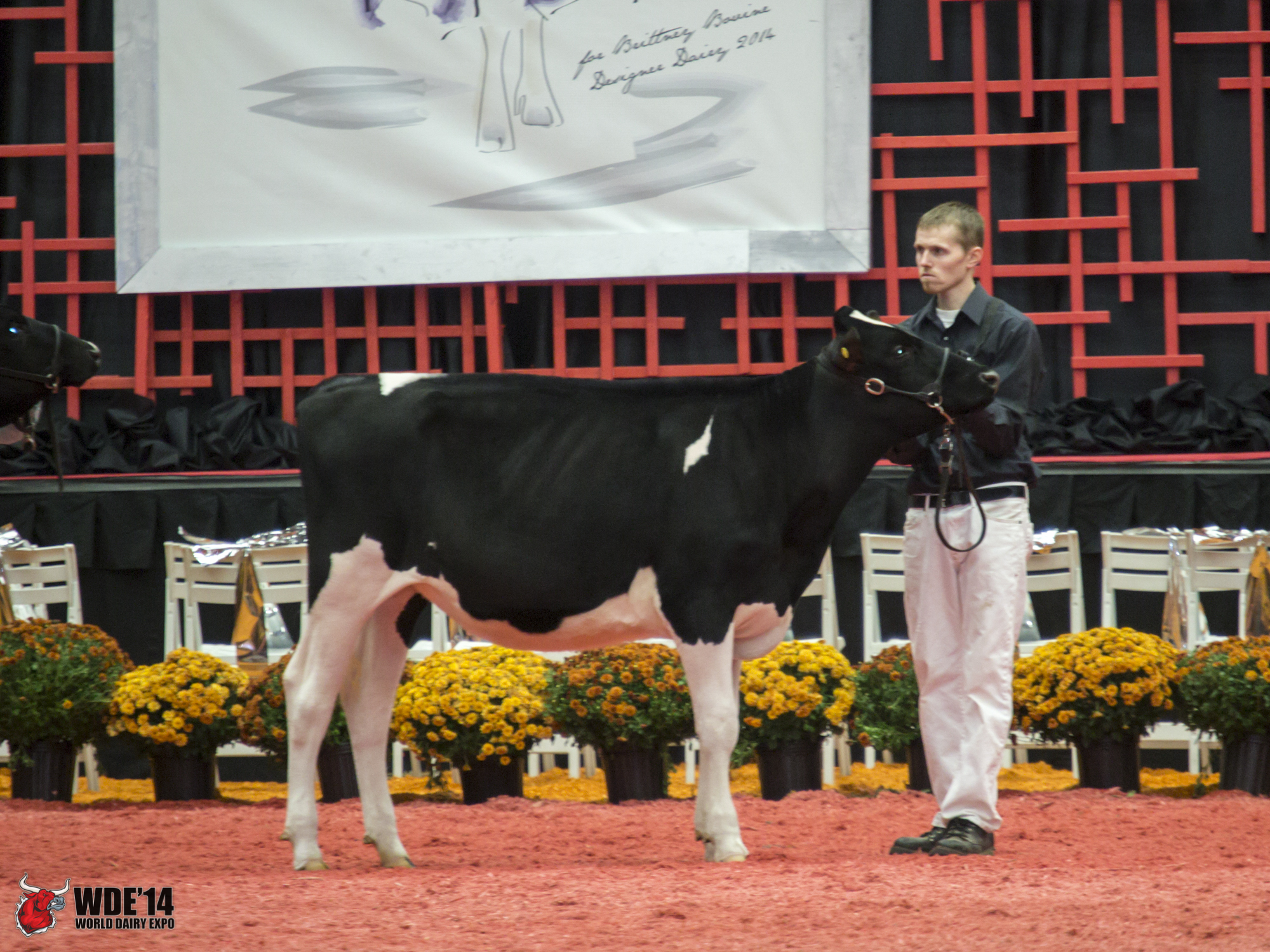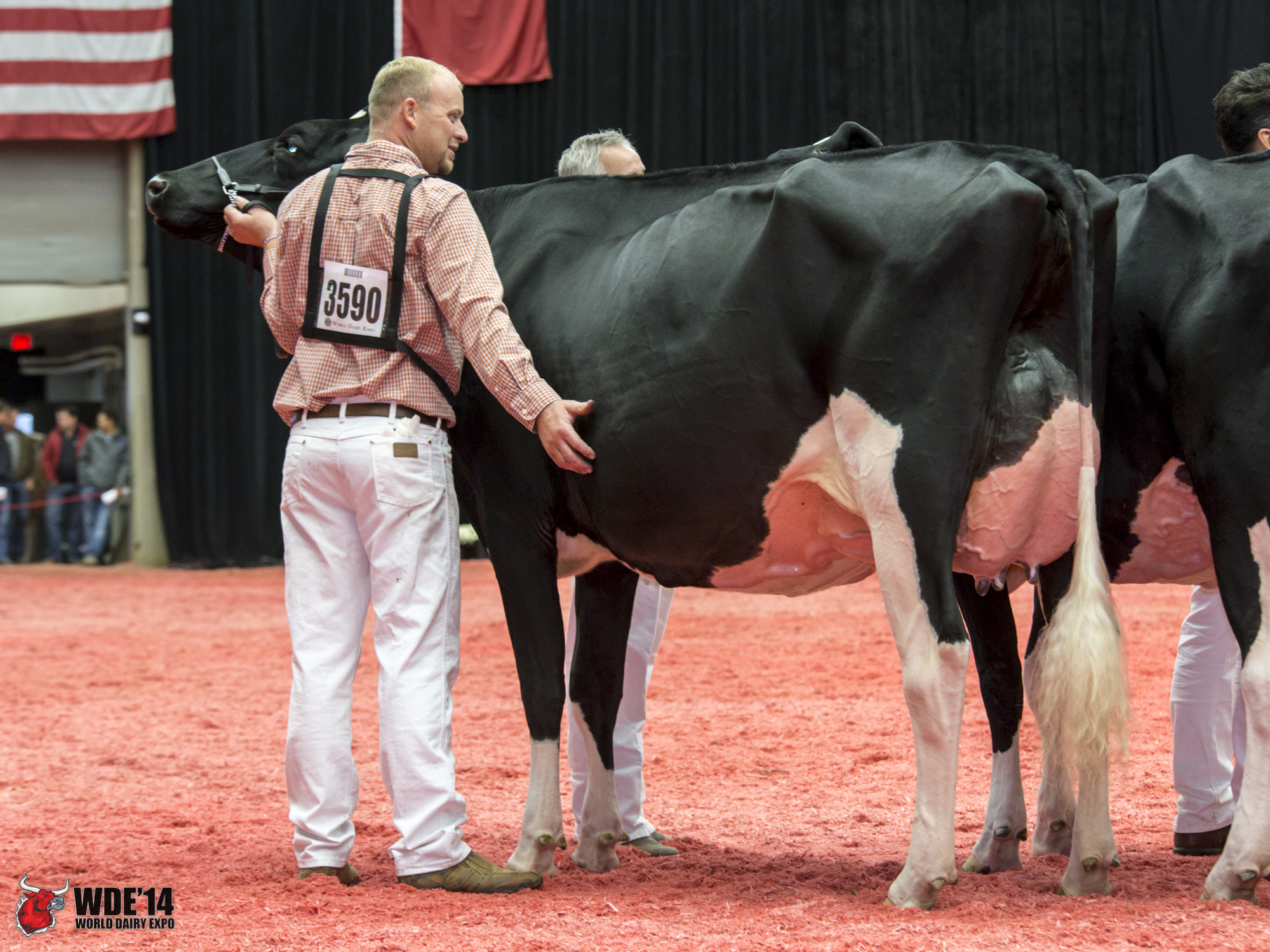 Junior Champion – Comestar Larion Goldwyn (Goldwyn), Jeffery Jet Butler & Lightening Ridge Holsteins, IL Reserve Junior Champion – Ashview-TG Atwood Lilly-ET (Atwood), Ted, Molly, & Tom Norling & Tony Galgowski, WI HM Junior Champion – Savage-Leigh Alex Lacey ET (Alexander), Miranda E Iager, MD