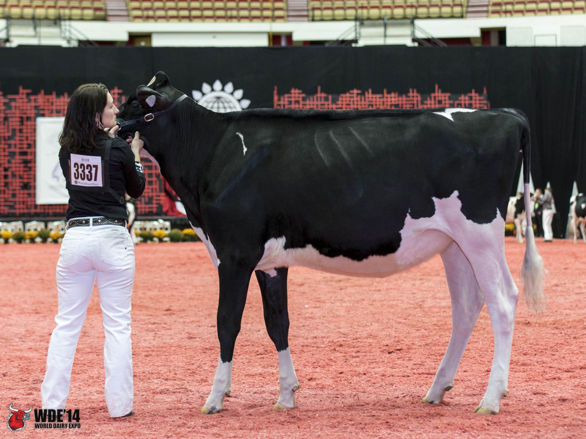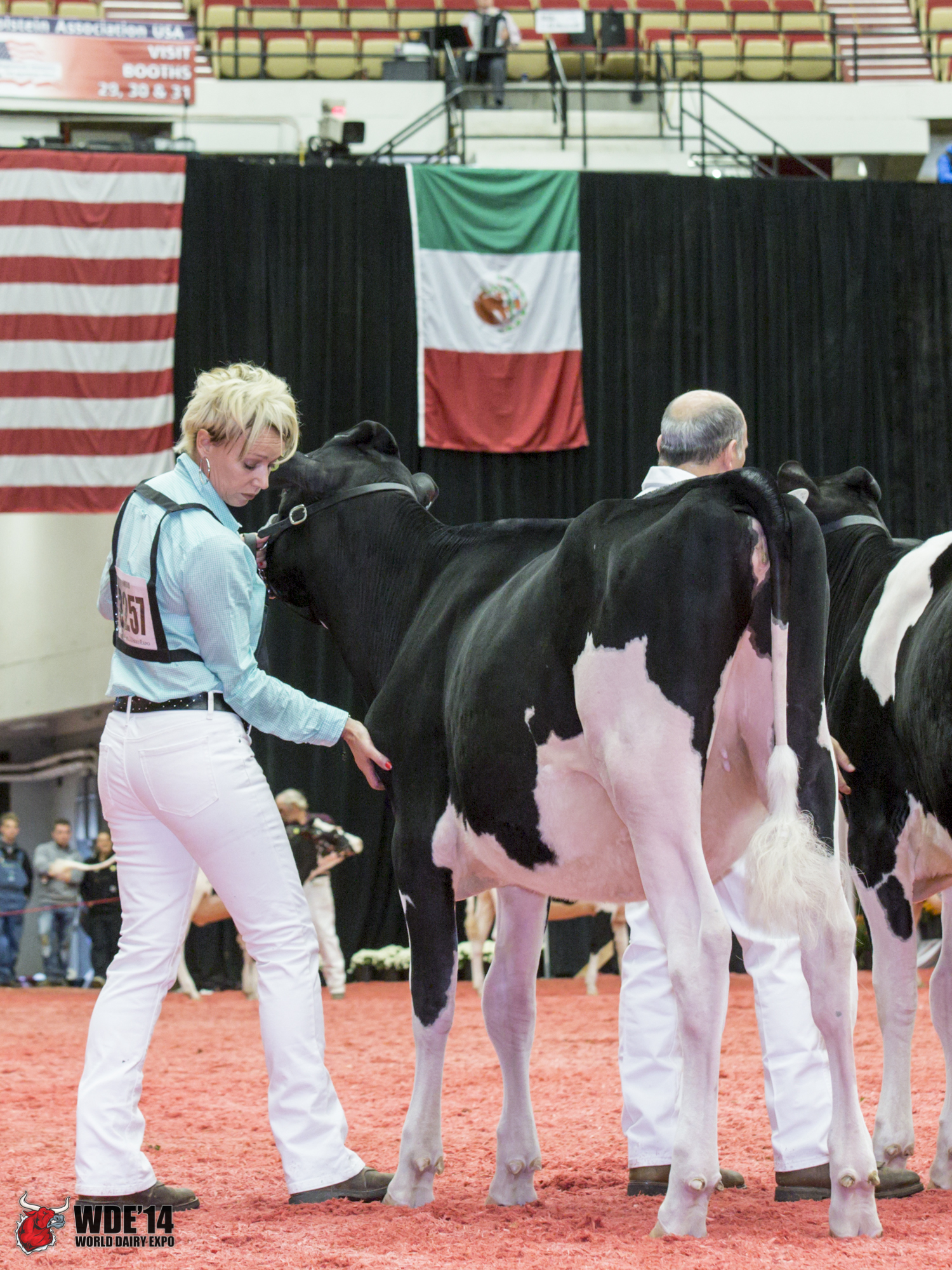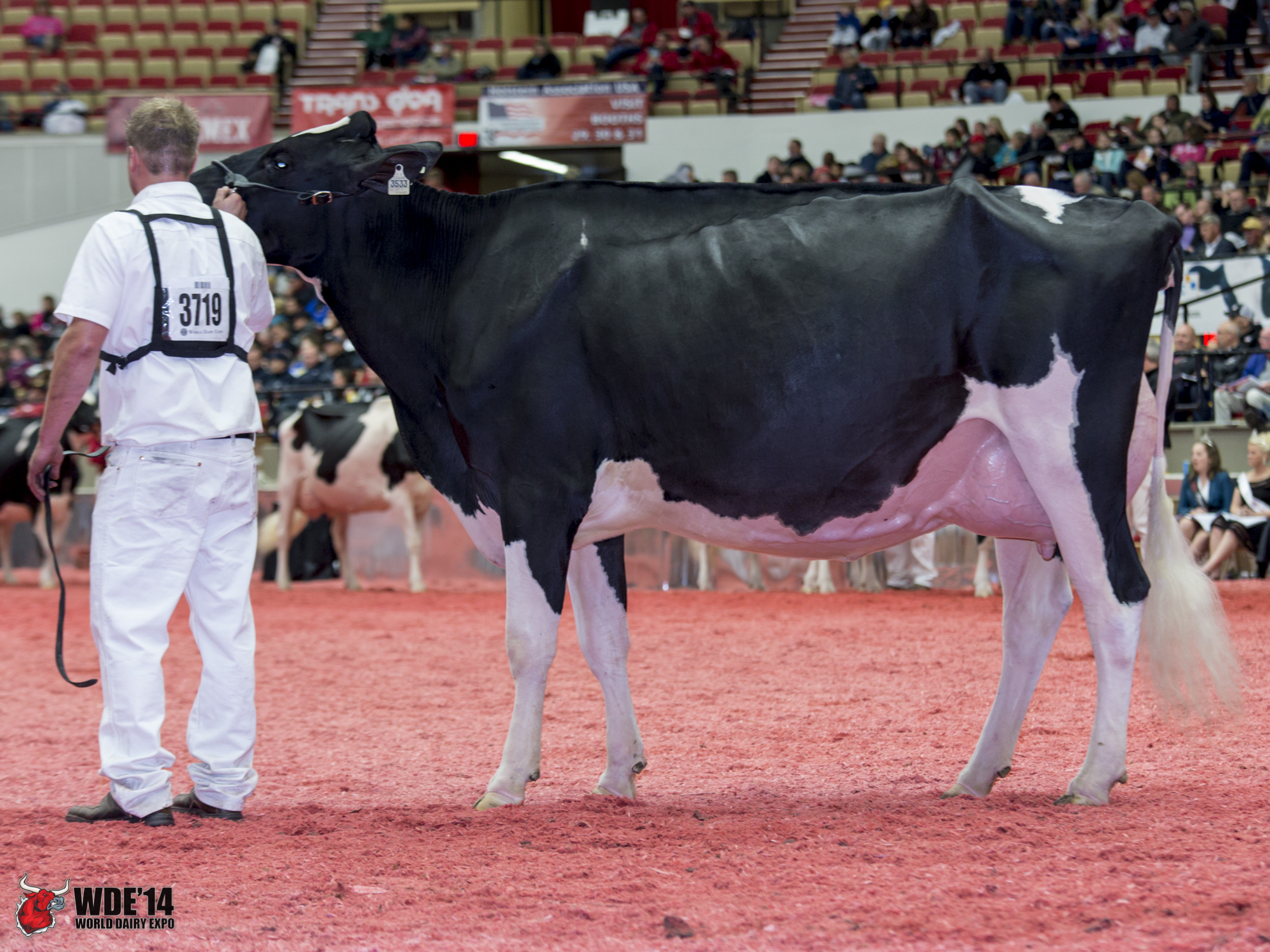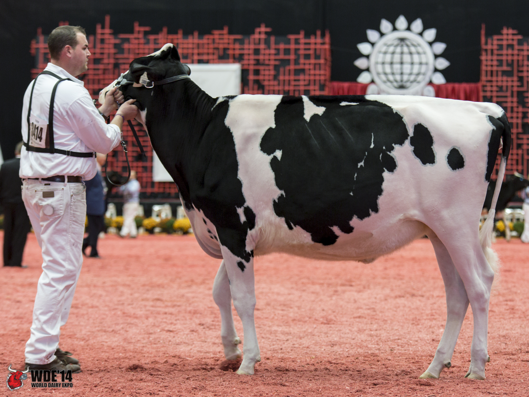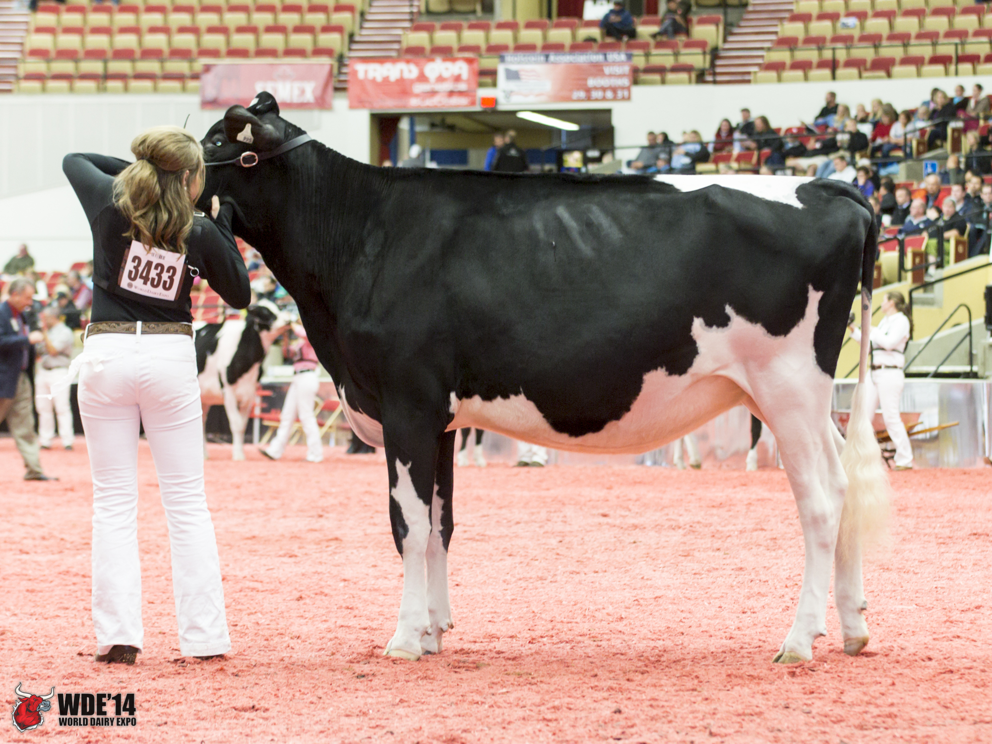 Junior Champion – Comestar Larion Goldwyn (Goldwyn), Jeffery Jet Butler & Lightening Ridge Holsteins, IL Reserve Junior Champion – Ashview-TG Atwood Lilly-ET (Atwood), Ted, Molly, & Tom Norling & Tony Galgowski, WI HM Junior Champion – Savage-Leigh Alex Lacey ET (Alexander), Miranda E Iager, MD